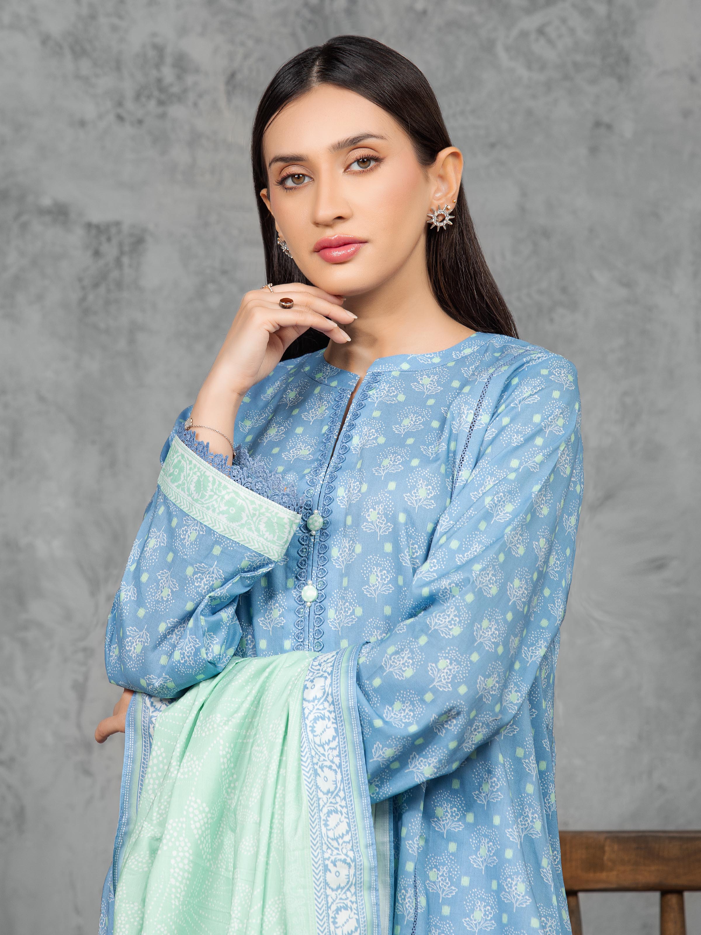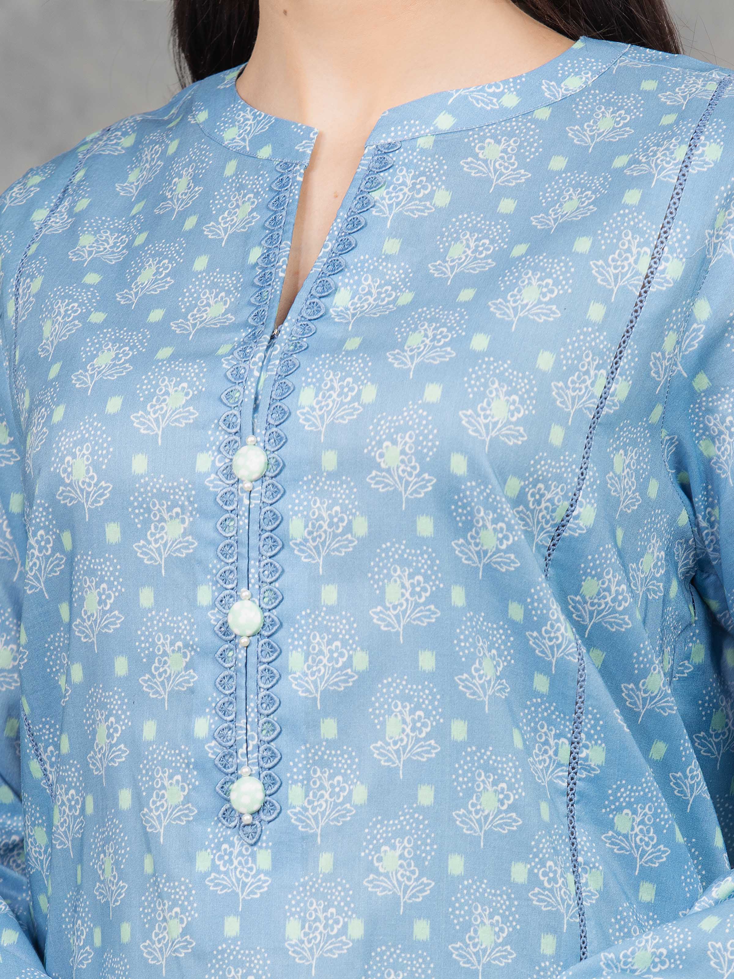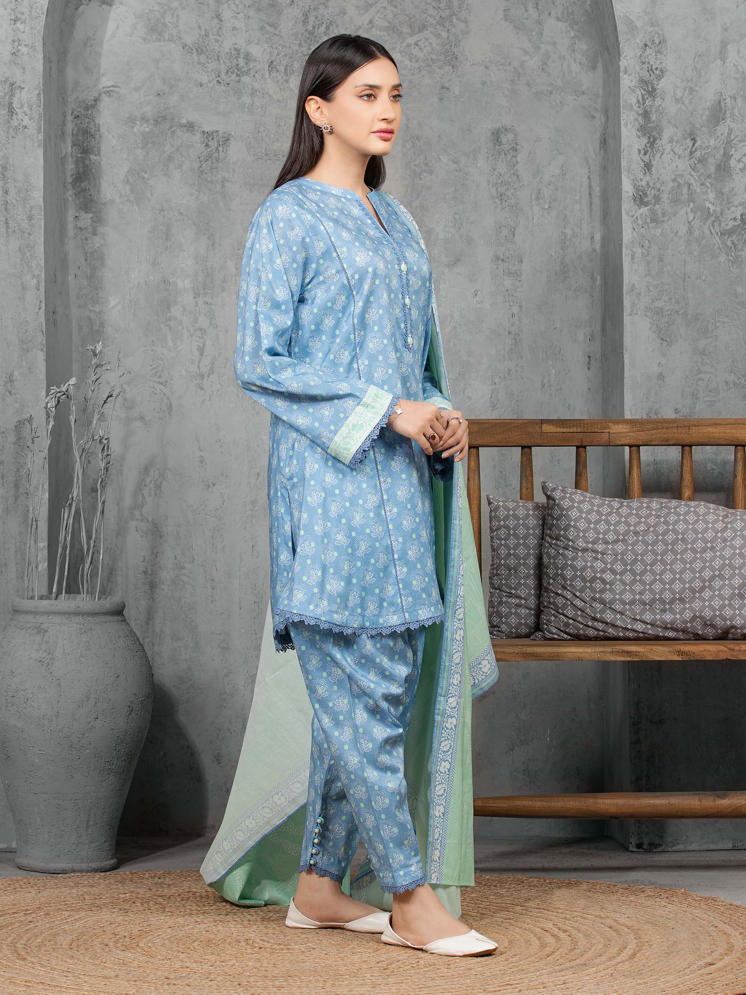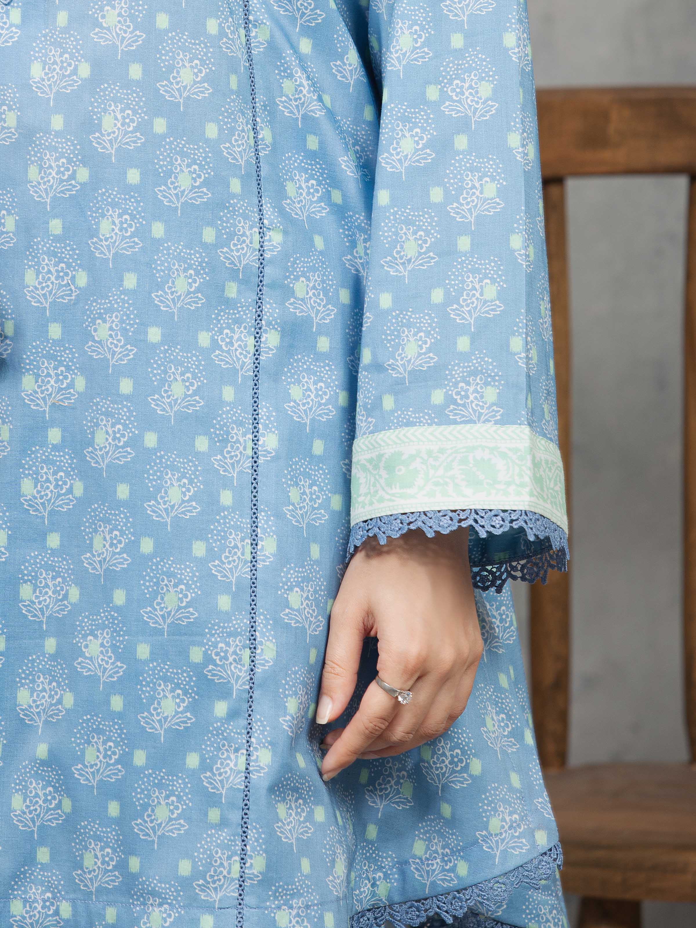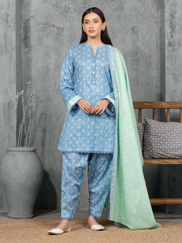 Unstitched Blue Printed Cambric 3 Piece