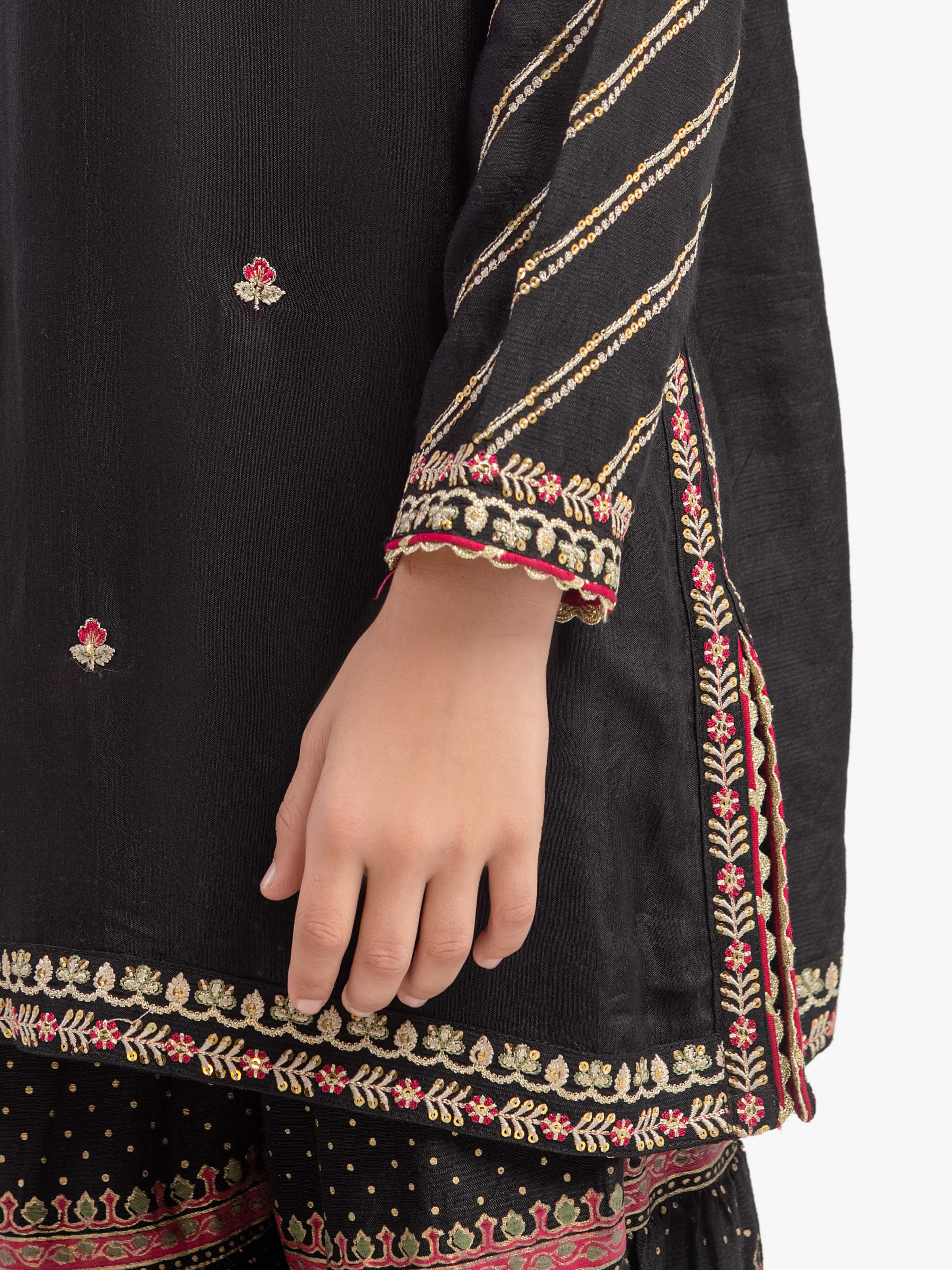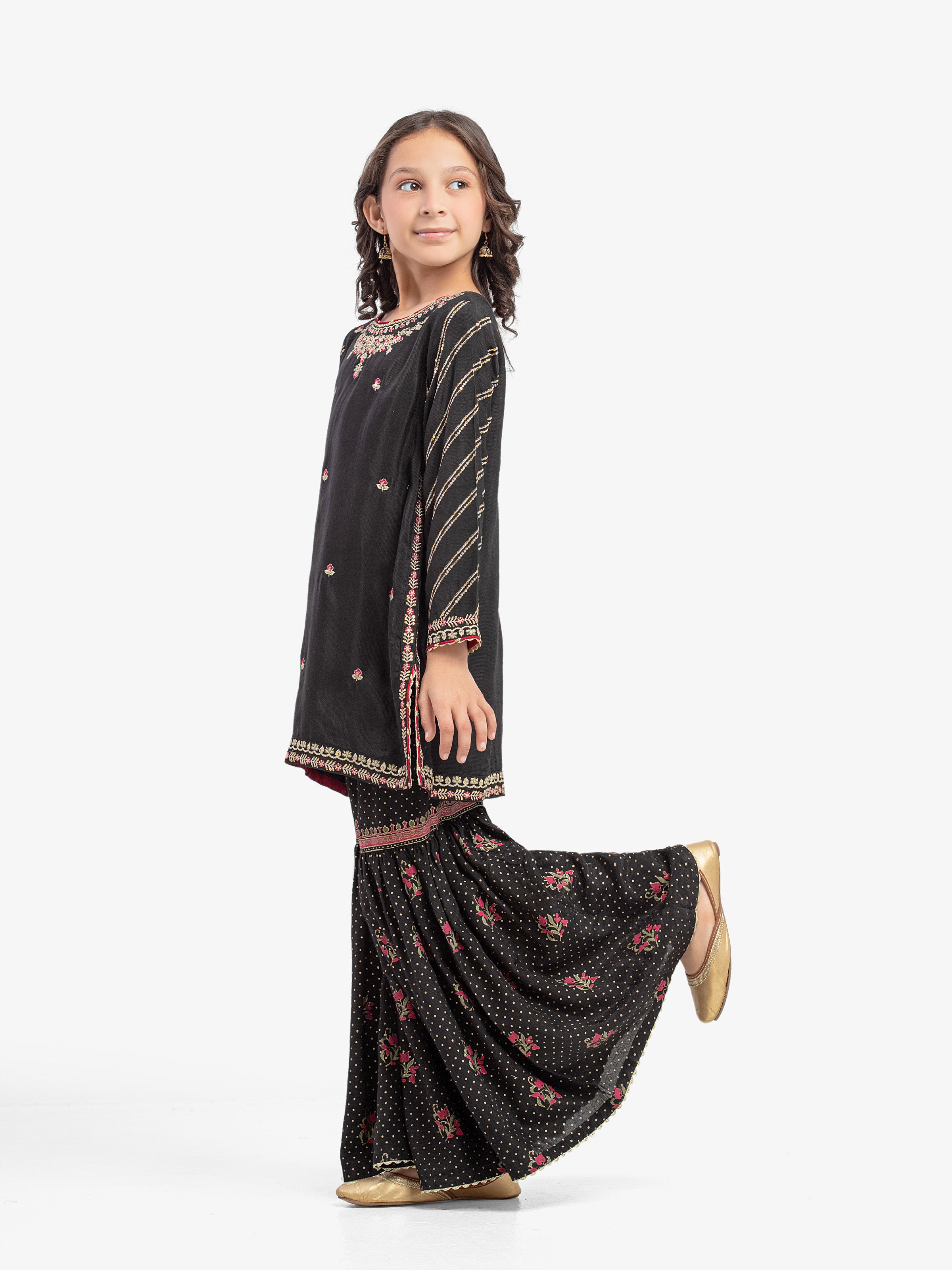 - Style: Block Printed Gharara with Lace on Bottom
