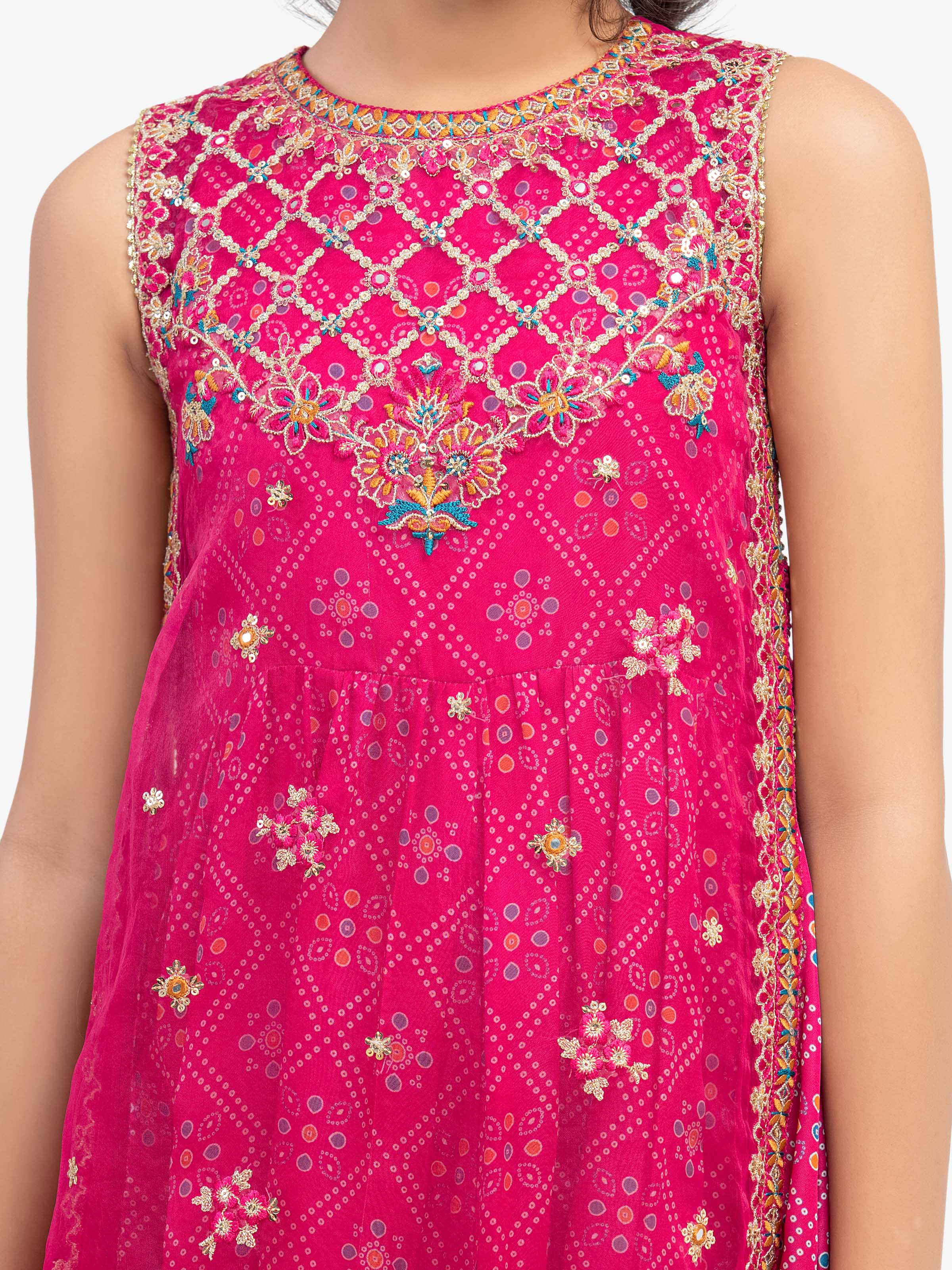 - Printed Silk Full Length Frock
