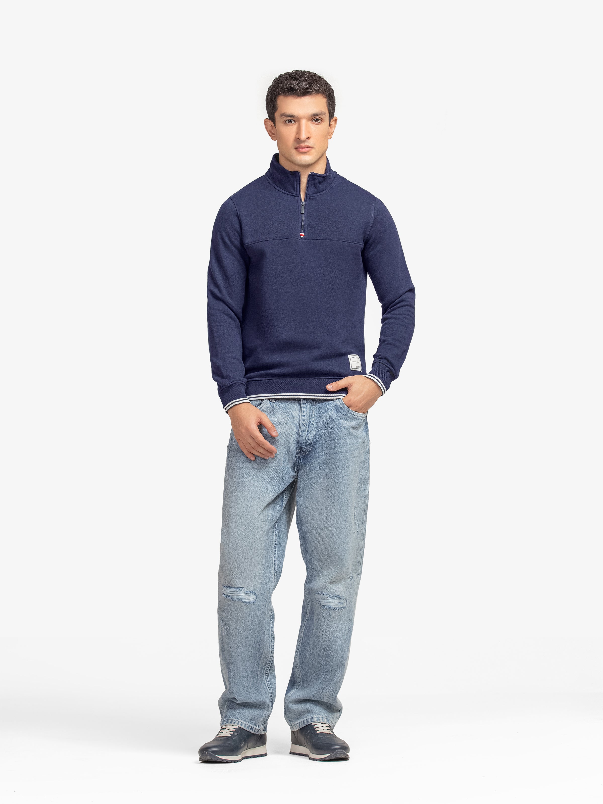 - Style: Plain Sweatshirt with Zip on Neck