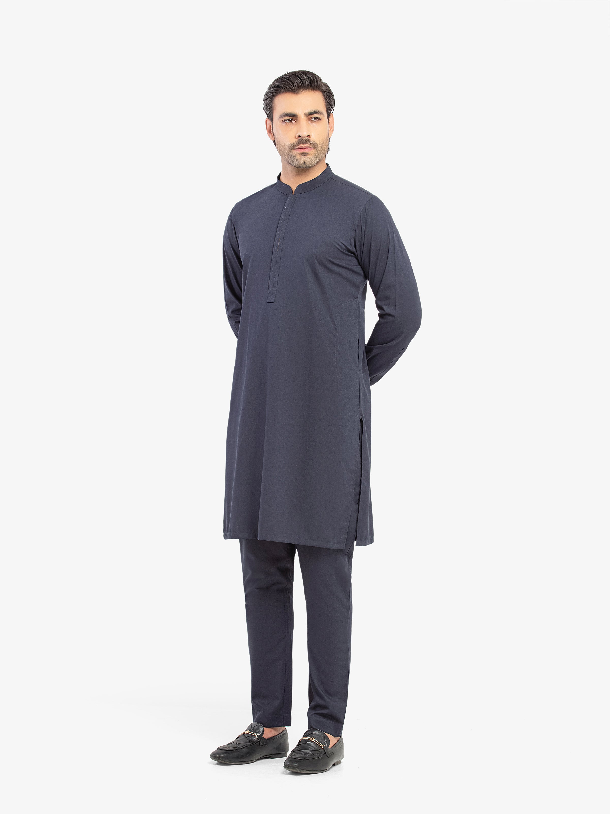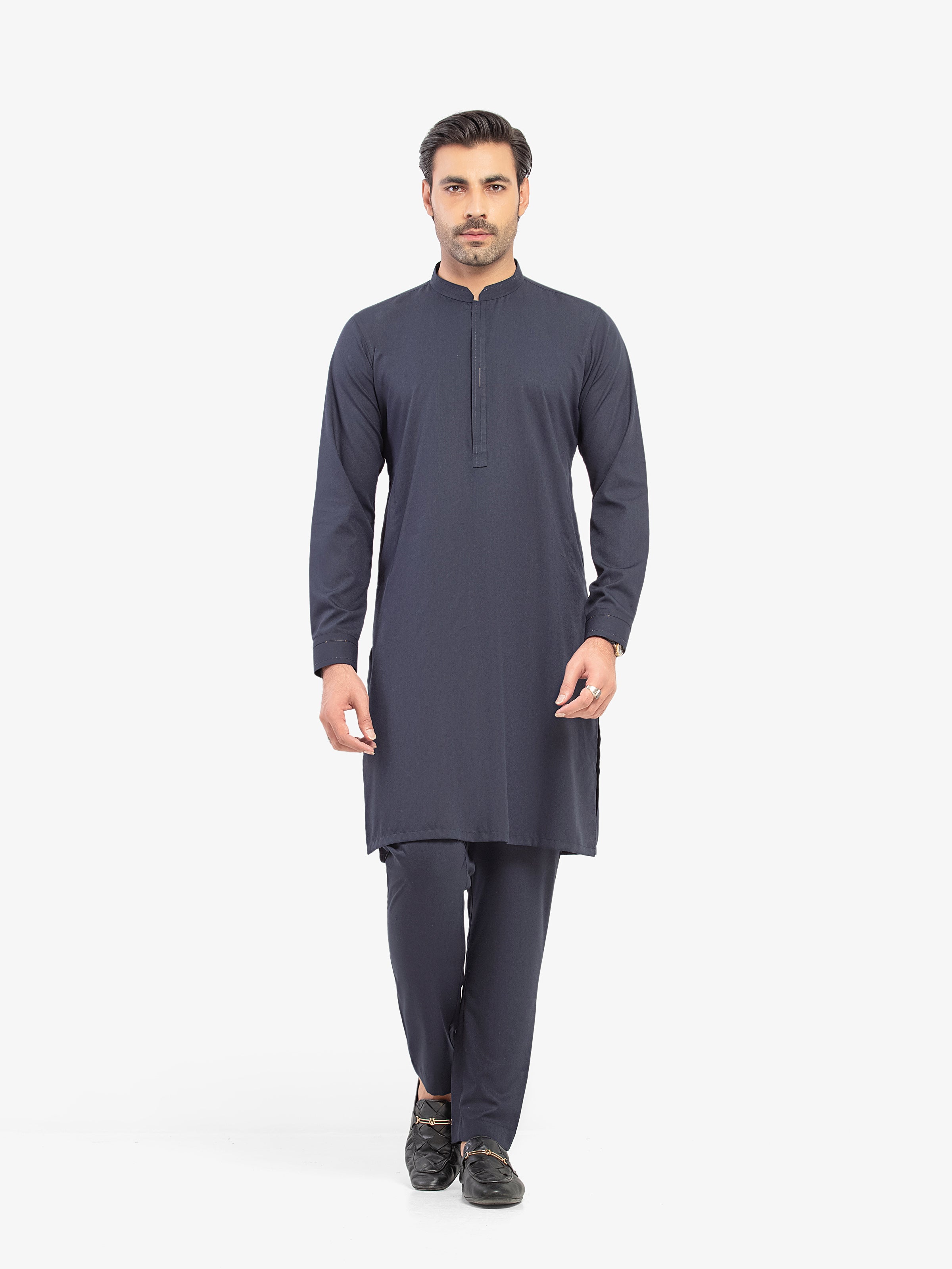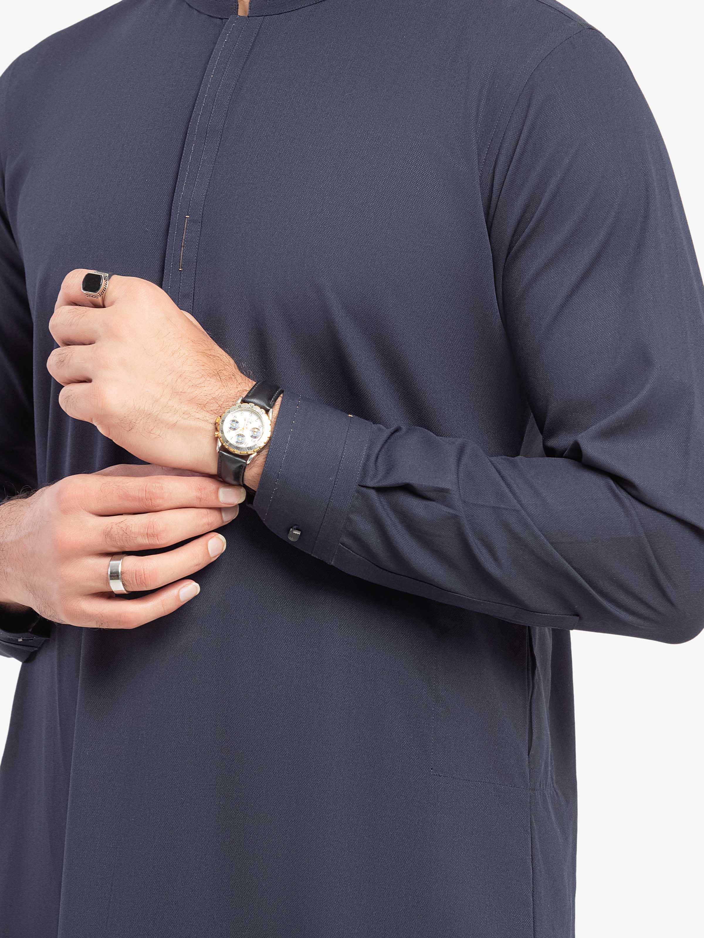 - Zari Thread Detail On Collar Placket & Cuffs