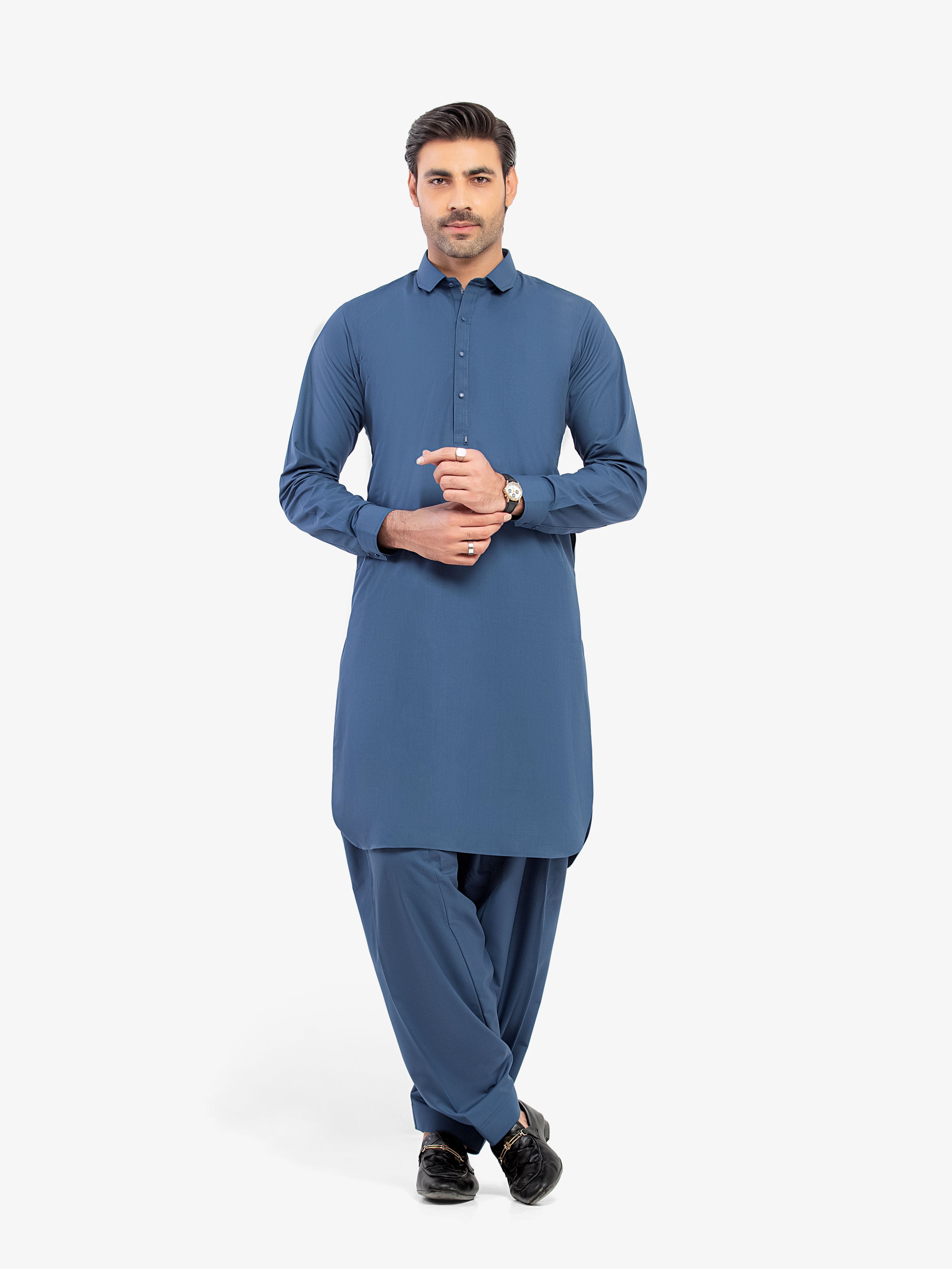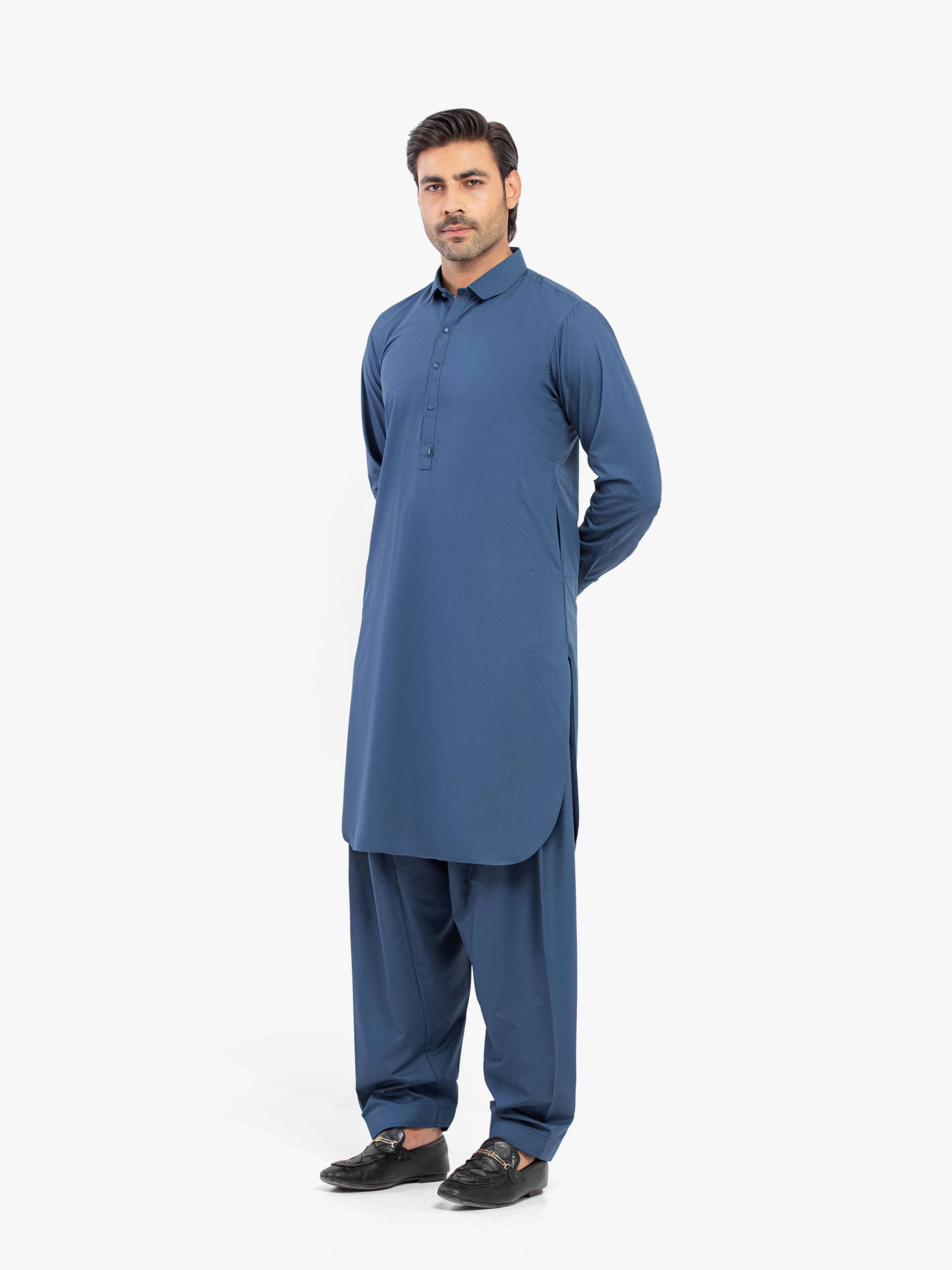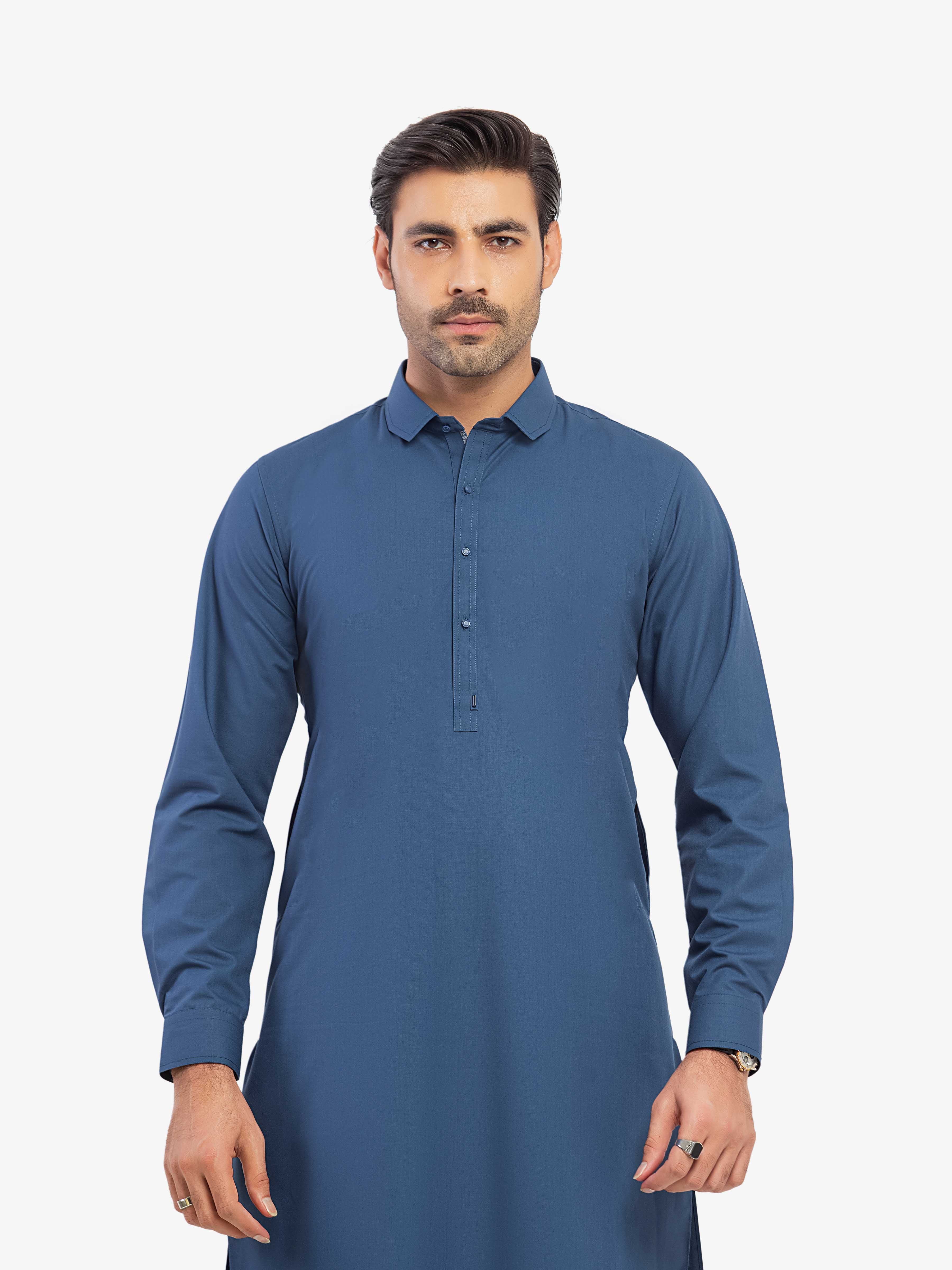 - Style: Cut & Sew Kurta with Tone on Tone Thread Detailing on Collar & Placket and Metal Buttons