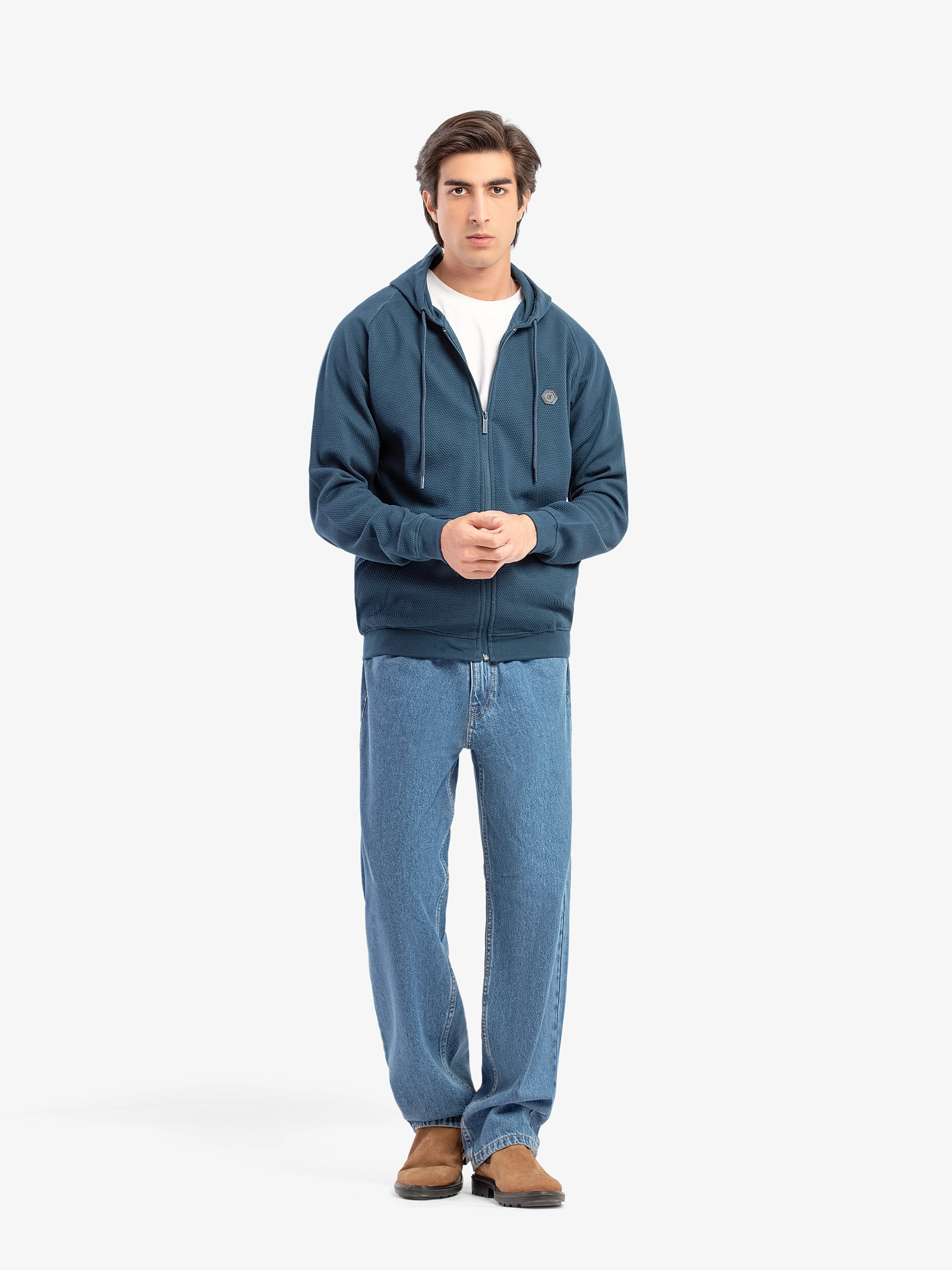- Style: Zipper Hoodie with Rubber Patch on Chest