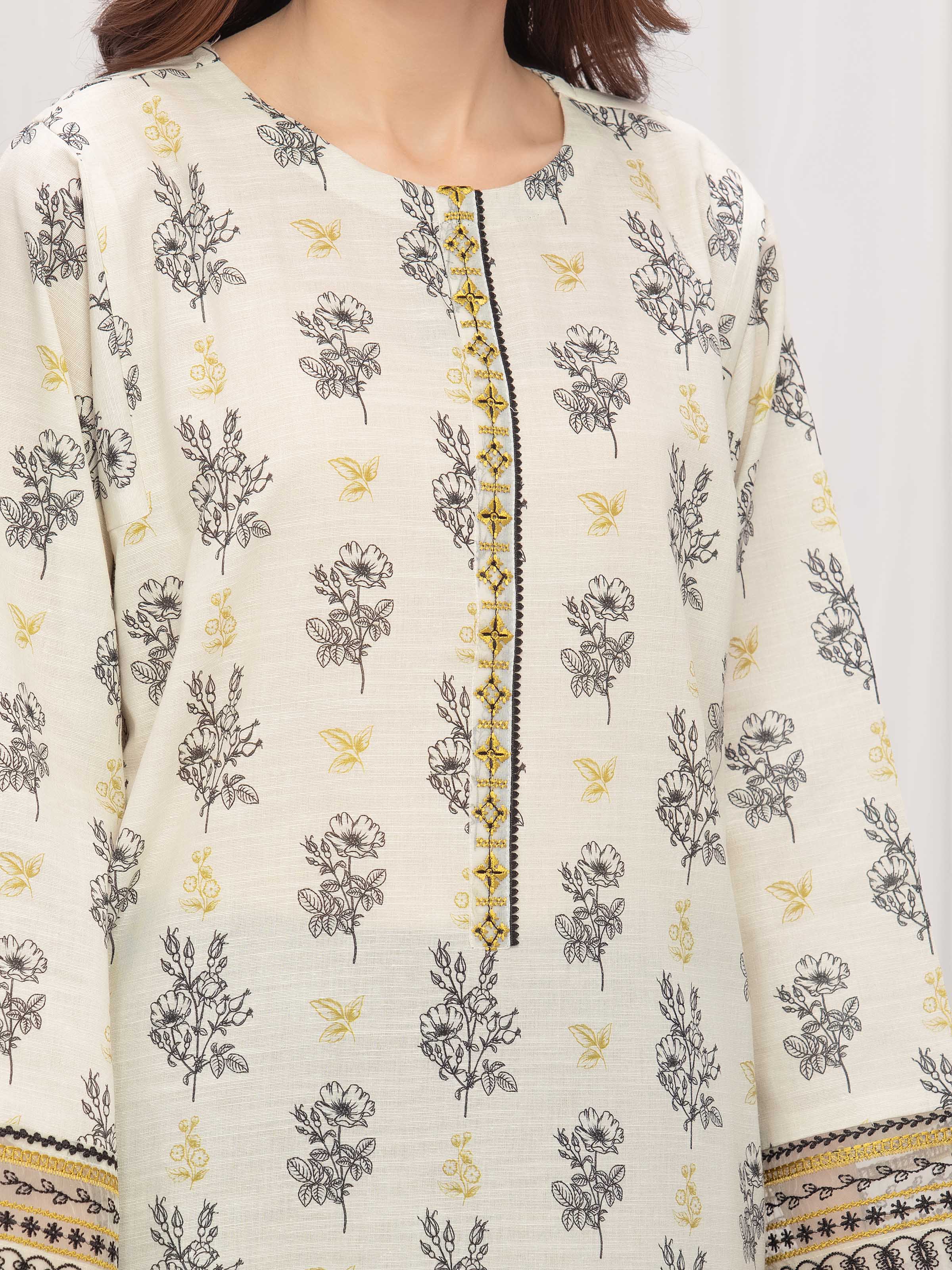 Style: Printed Shirt with Embroidered Placket & Fancy Organza Work on Sleeves