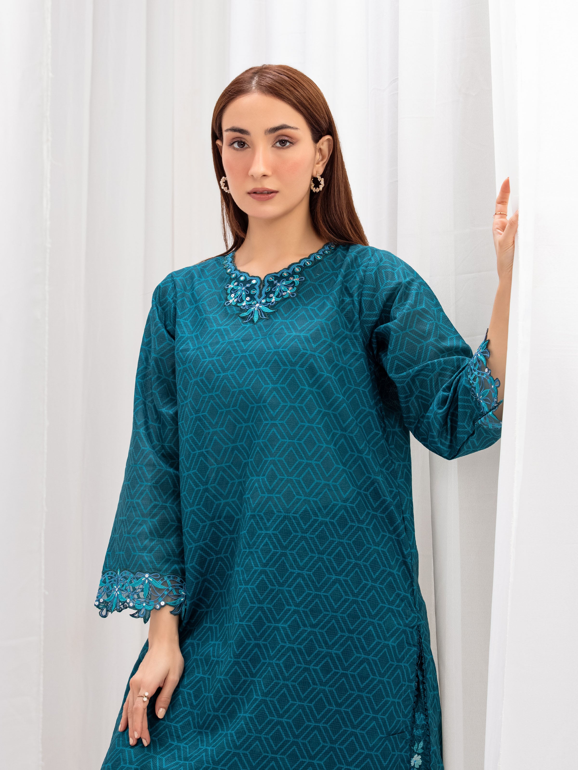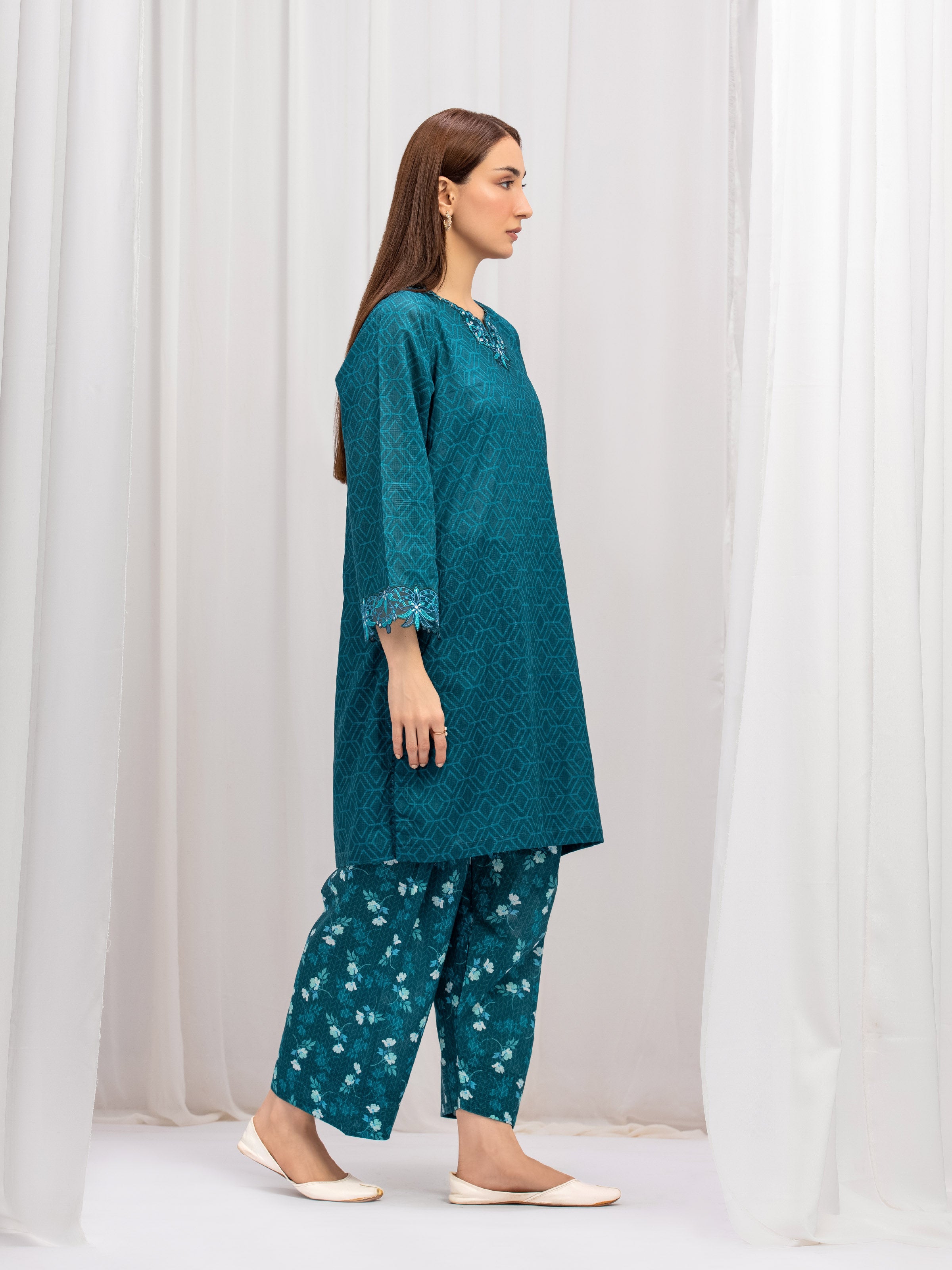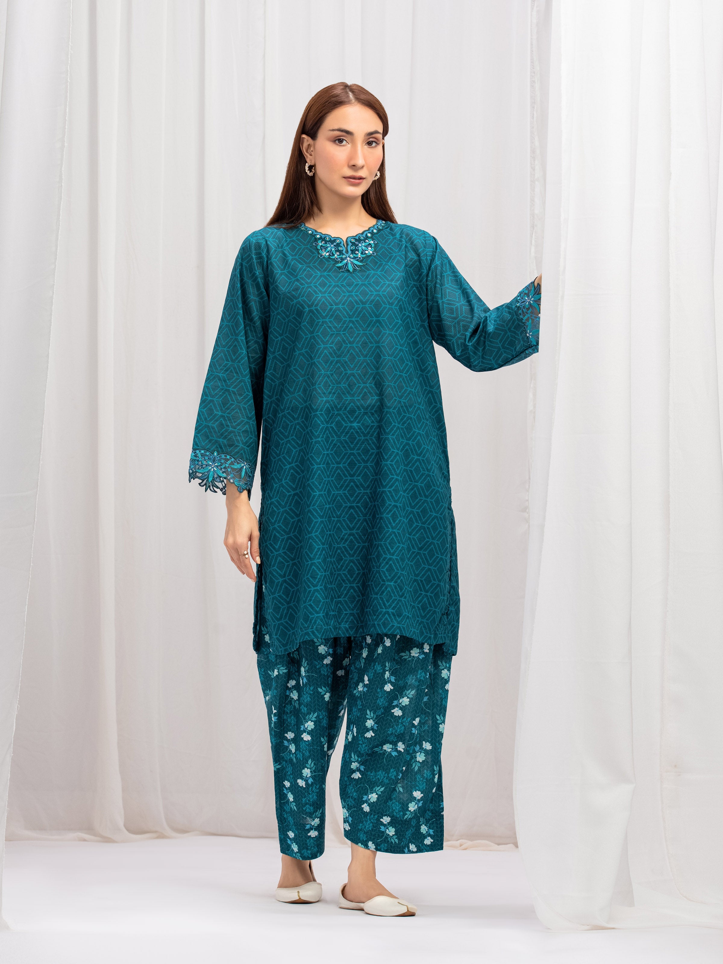 Pret 2Pc Embroidered Lawn Slub Shirt Trouser