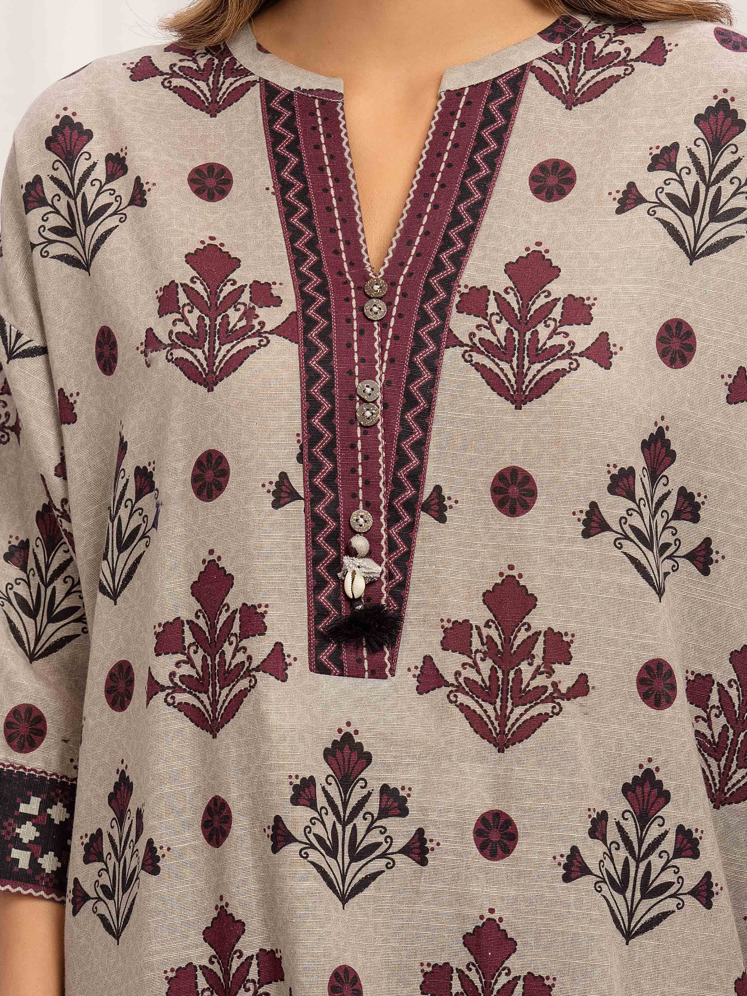 Style: Printed Shirt with Embellished Placket