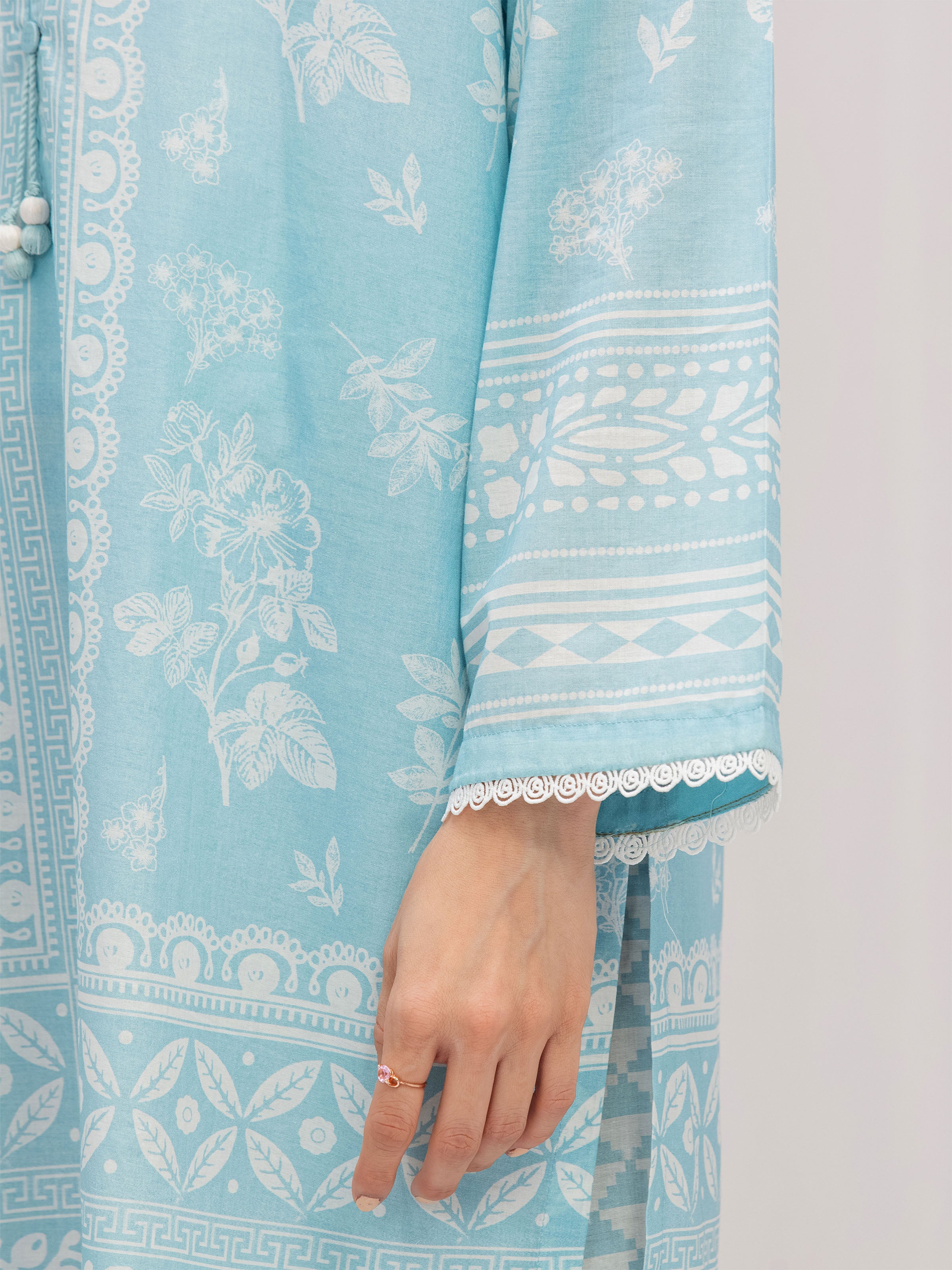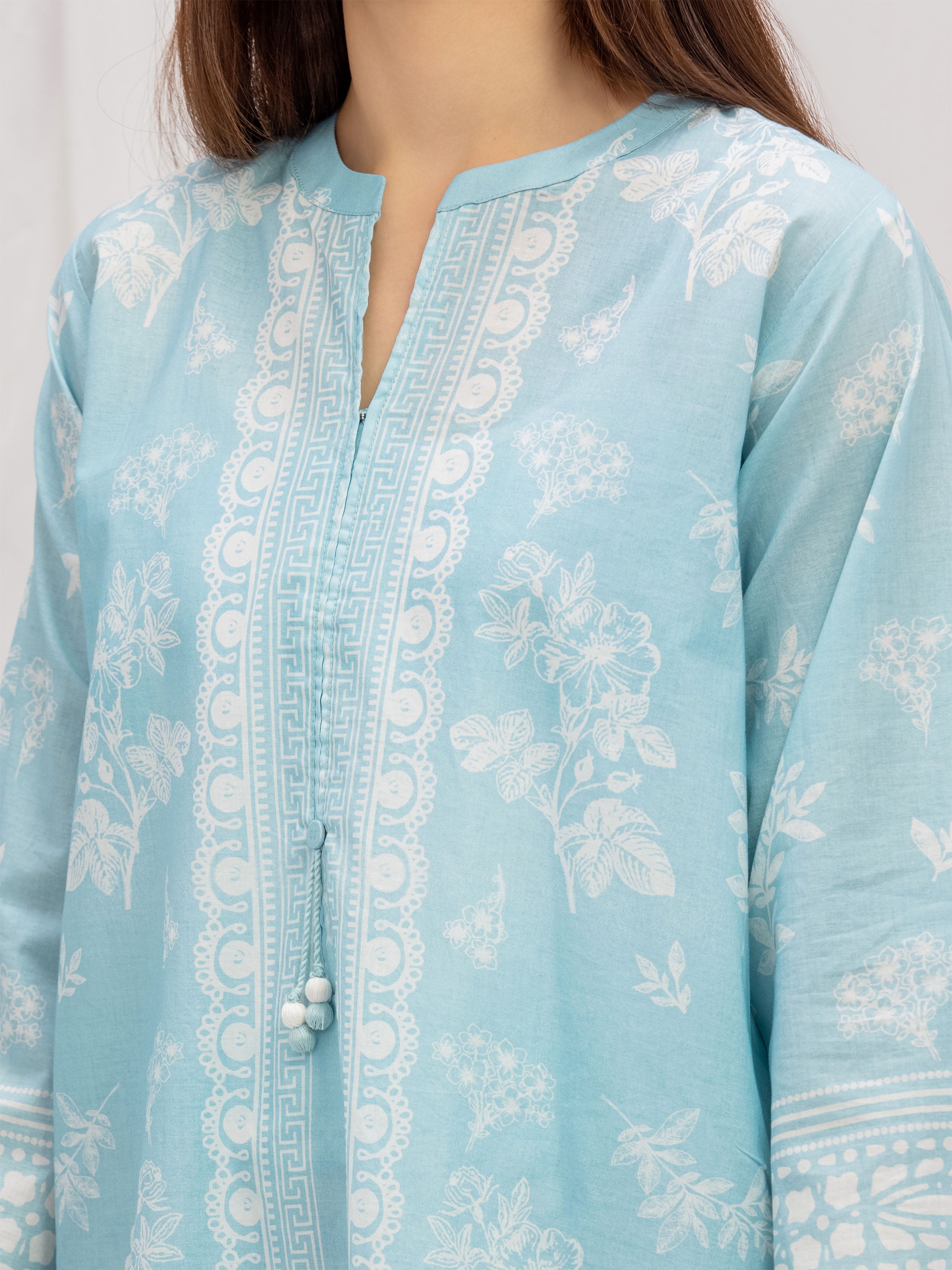 Style: Printed Lawn Straight Kurti, Tassel Hand Work On Placket, Lace Use On Sleeves Border