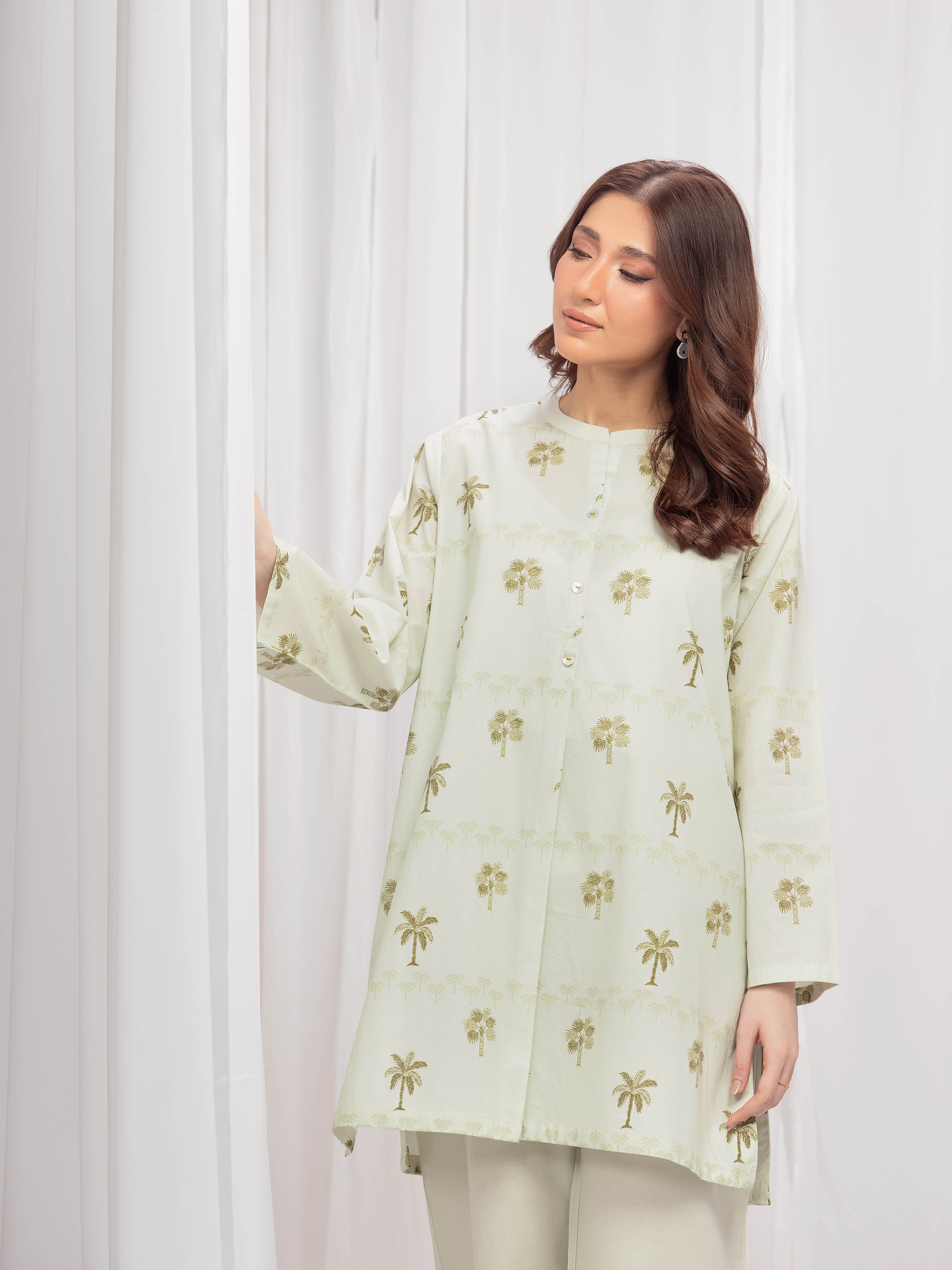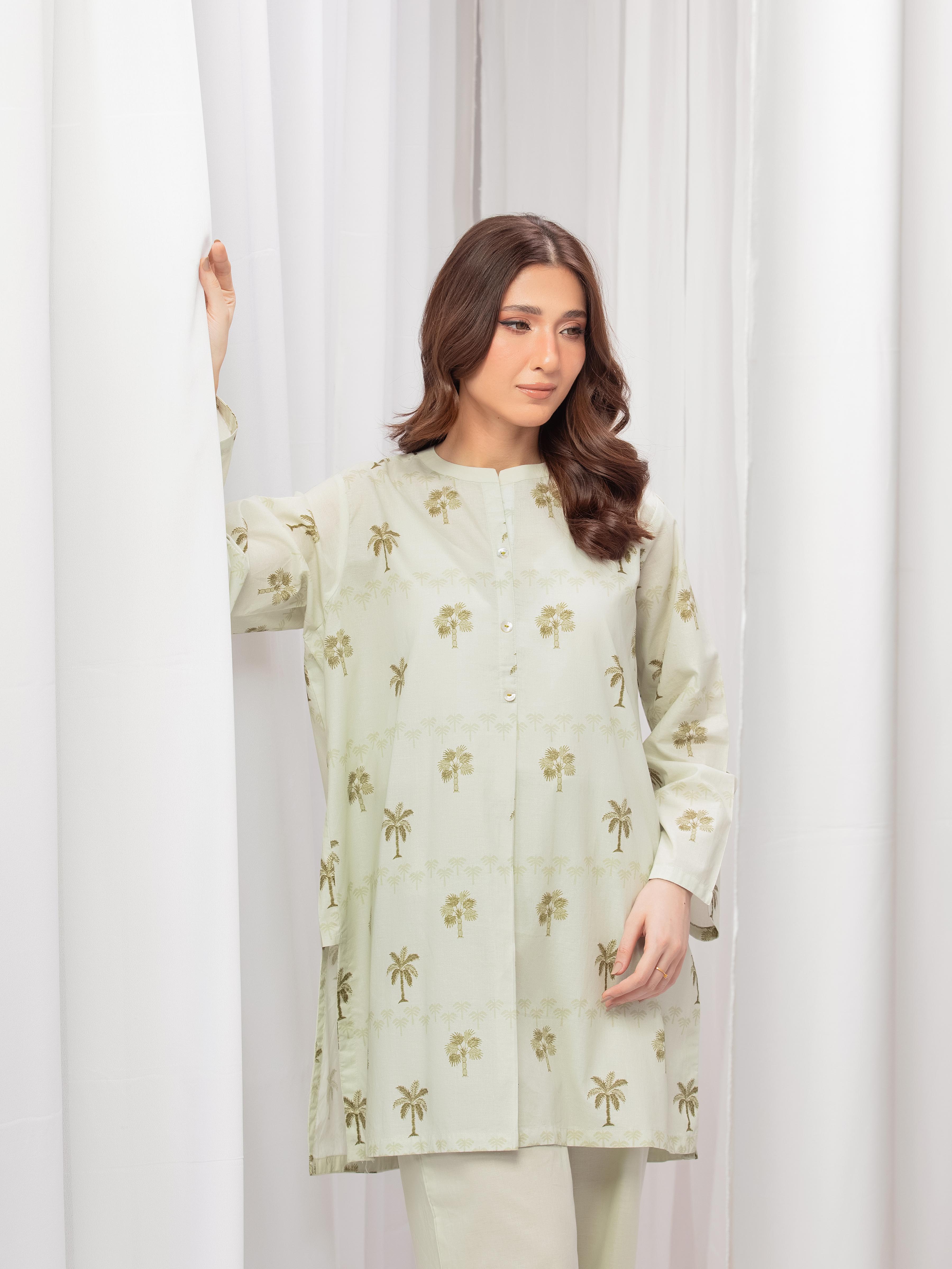 - Style: Printed Lawn Relaxed Fit Kurti, Hand Embellished on Neckline, Styled With Box Pleat