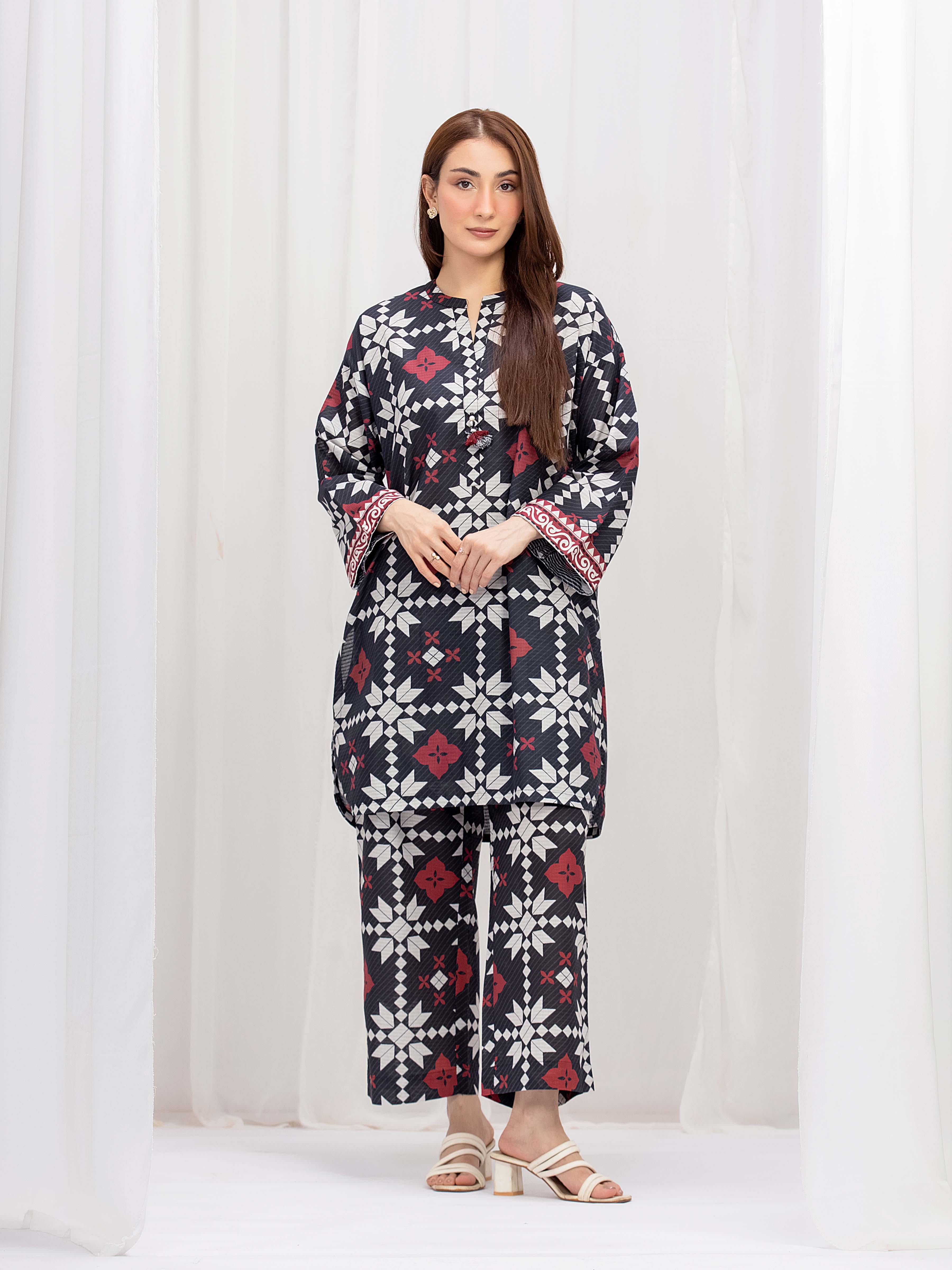 Pret 2Pc Printed Slub Lawn Shirt Trouser
