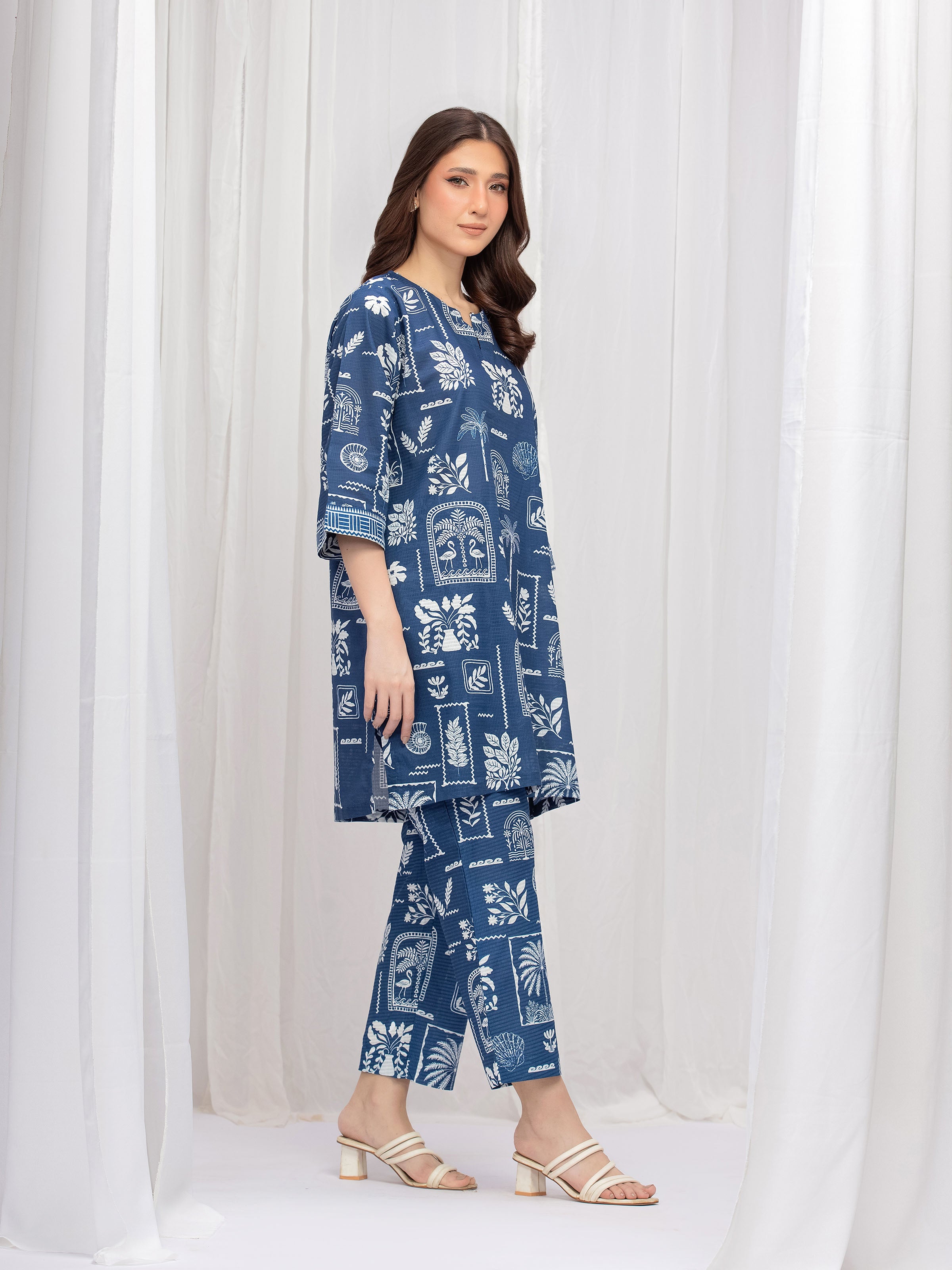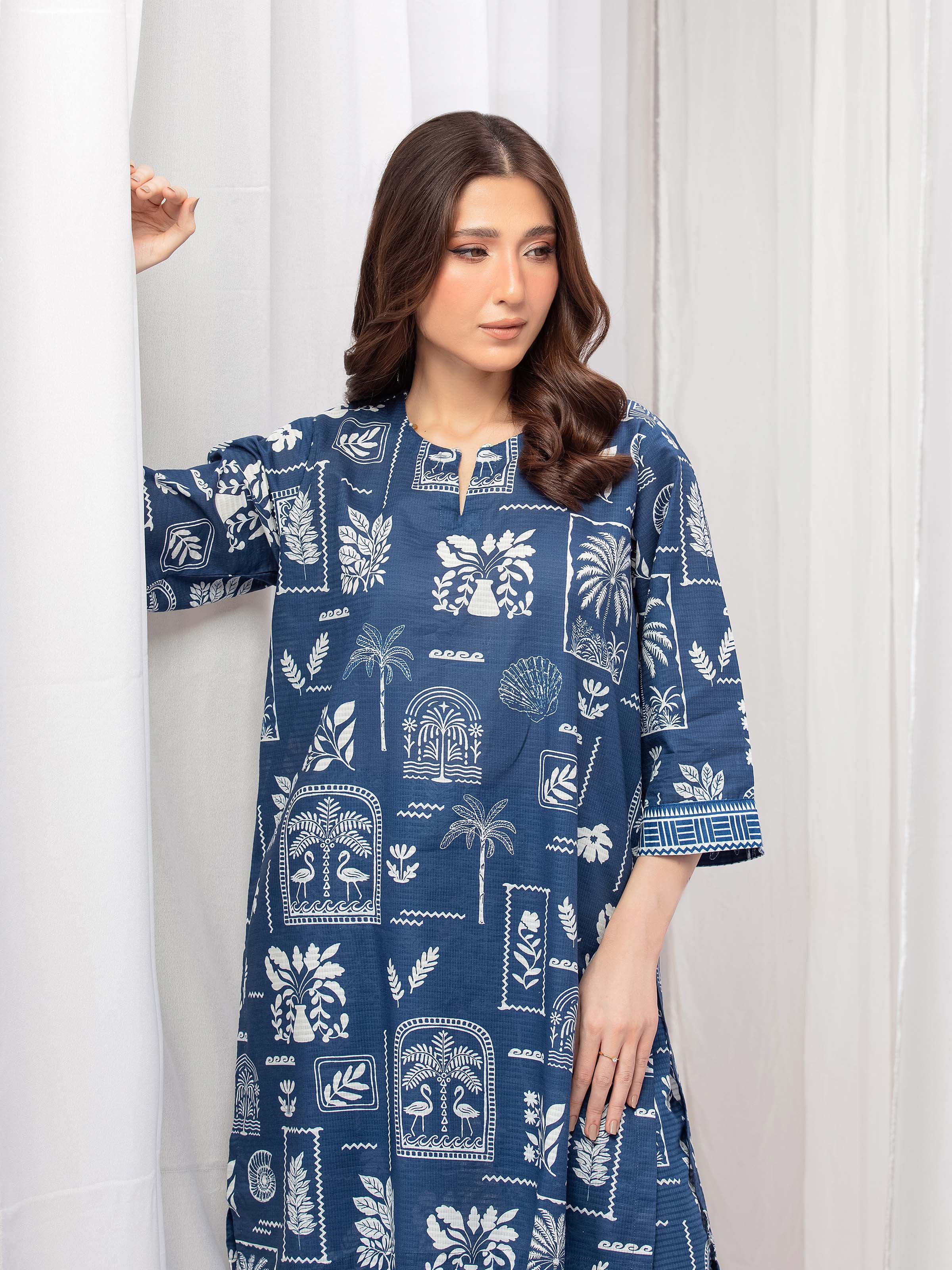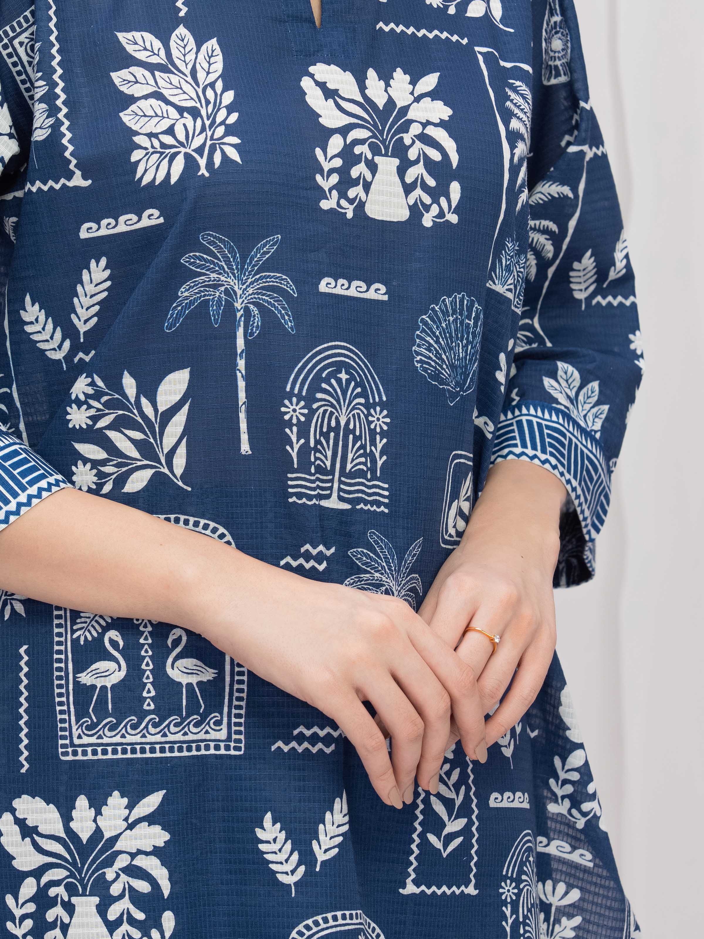 Style: Printed Slub Lawn Box Cut Kurti, Hand Embellished on Gala