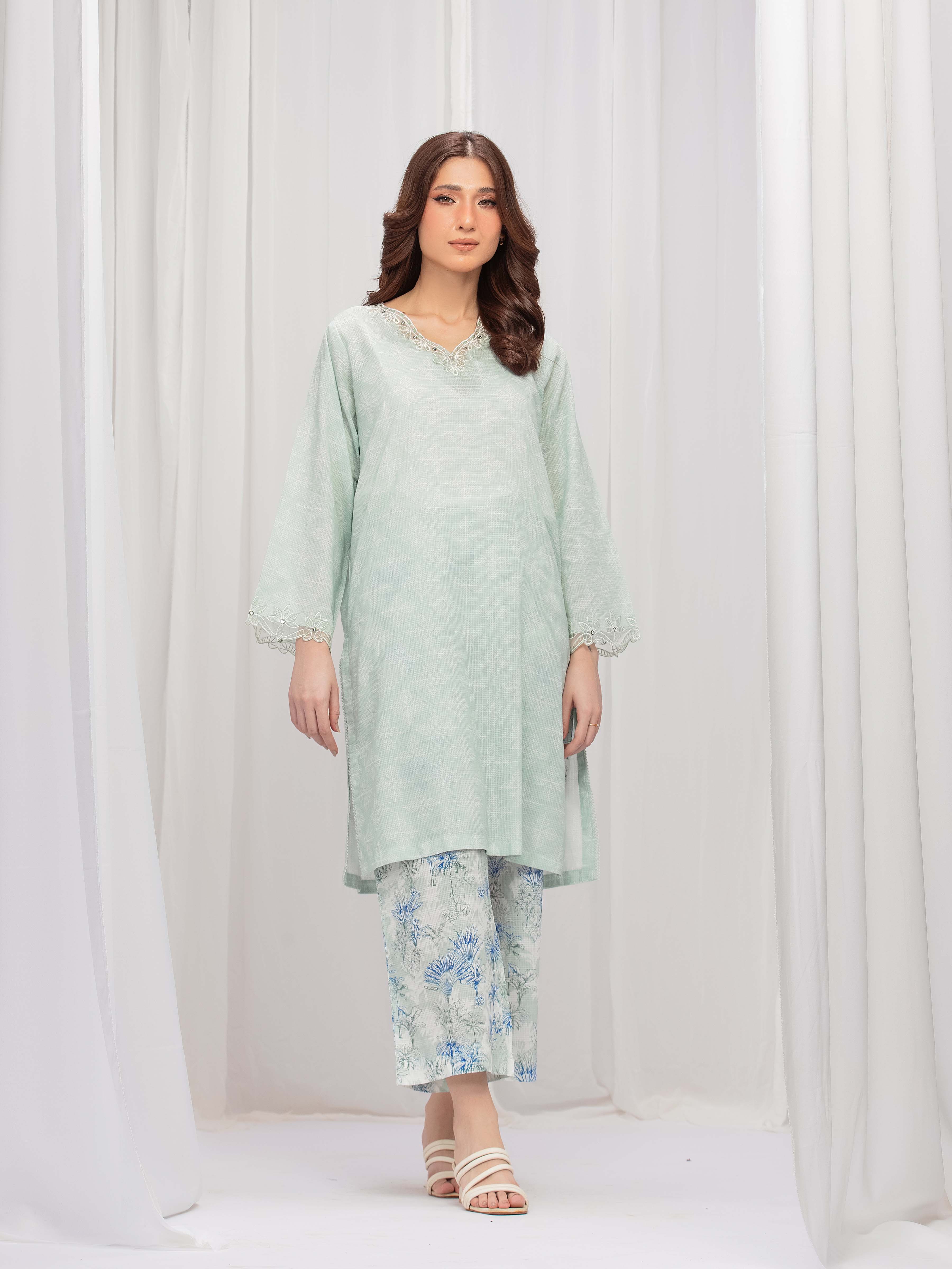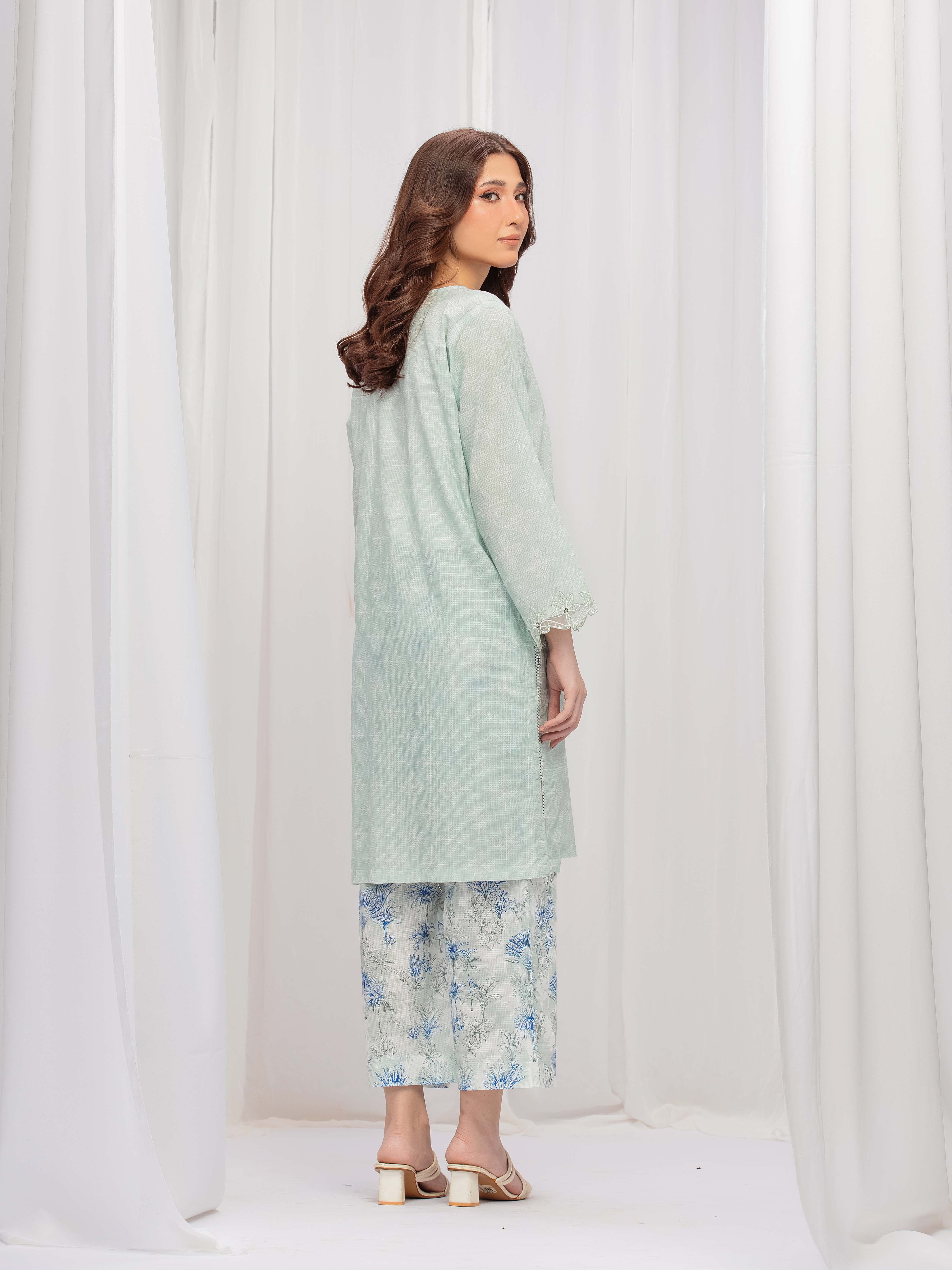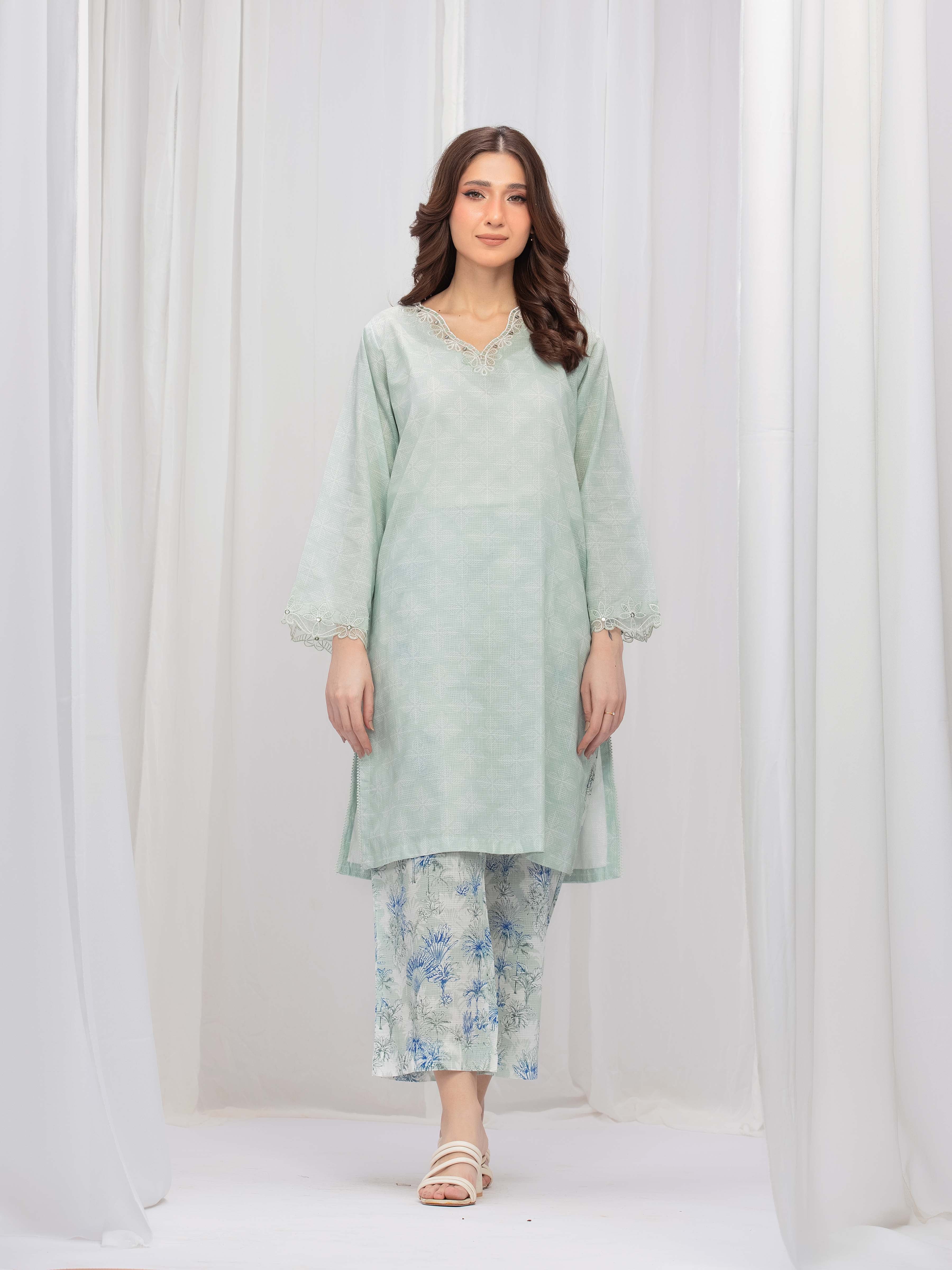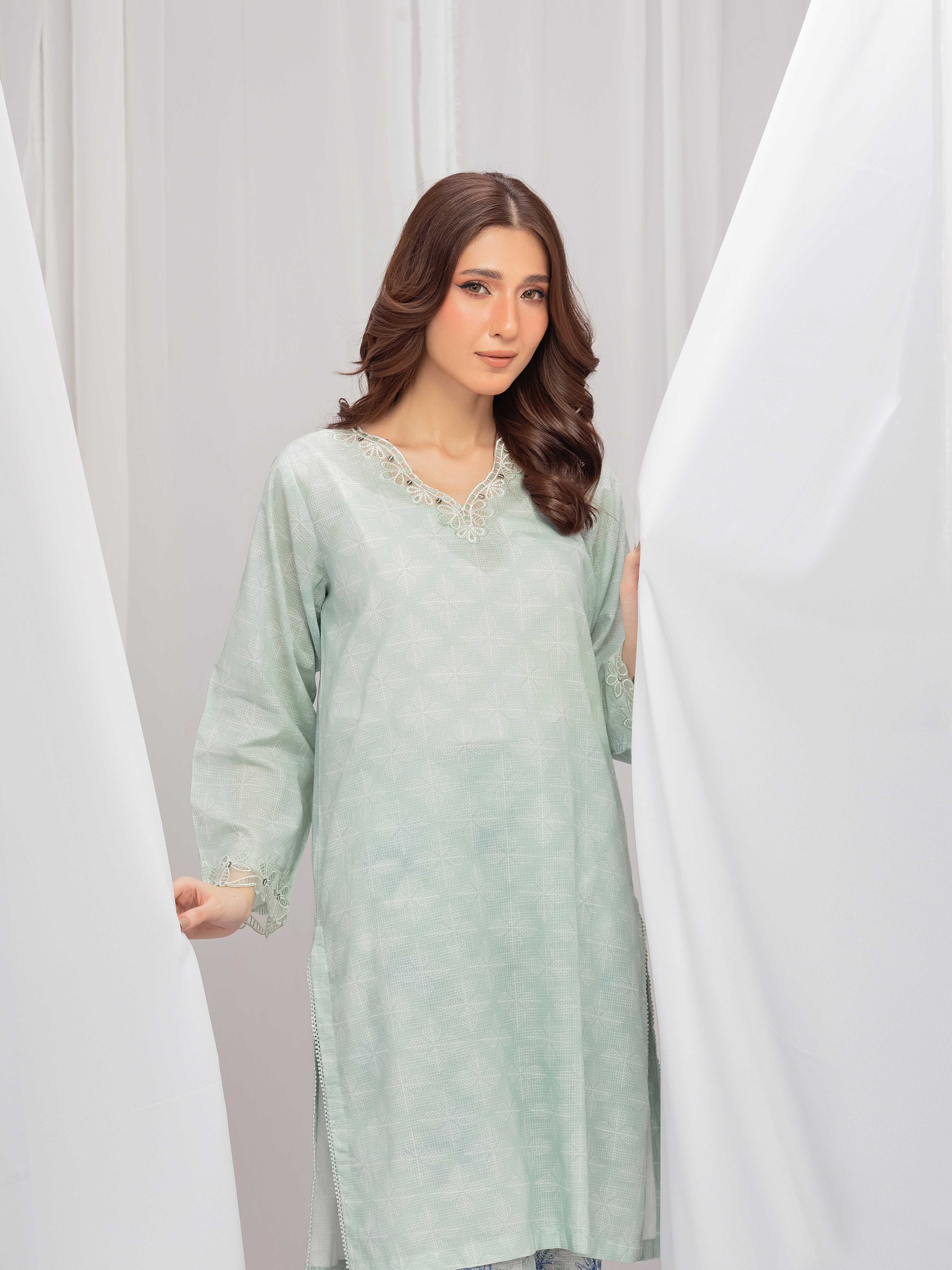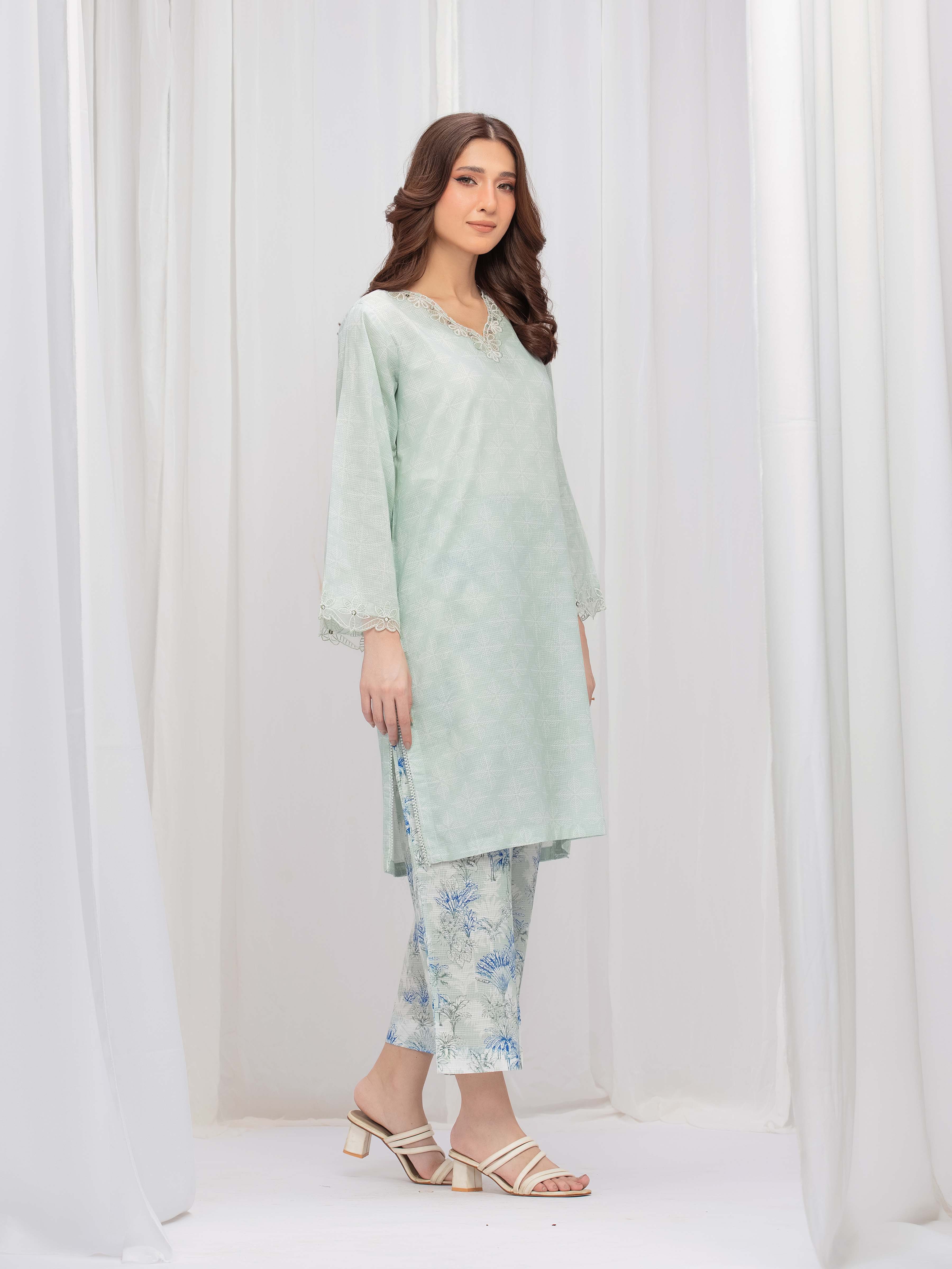Style: Printed Slub Lawn Shirt, Embroidered Organza Trims