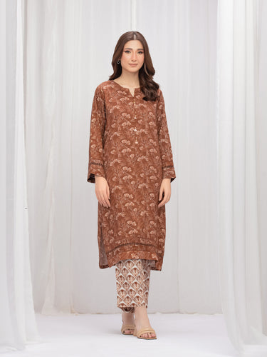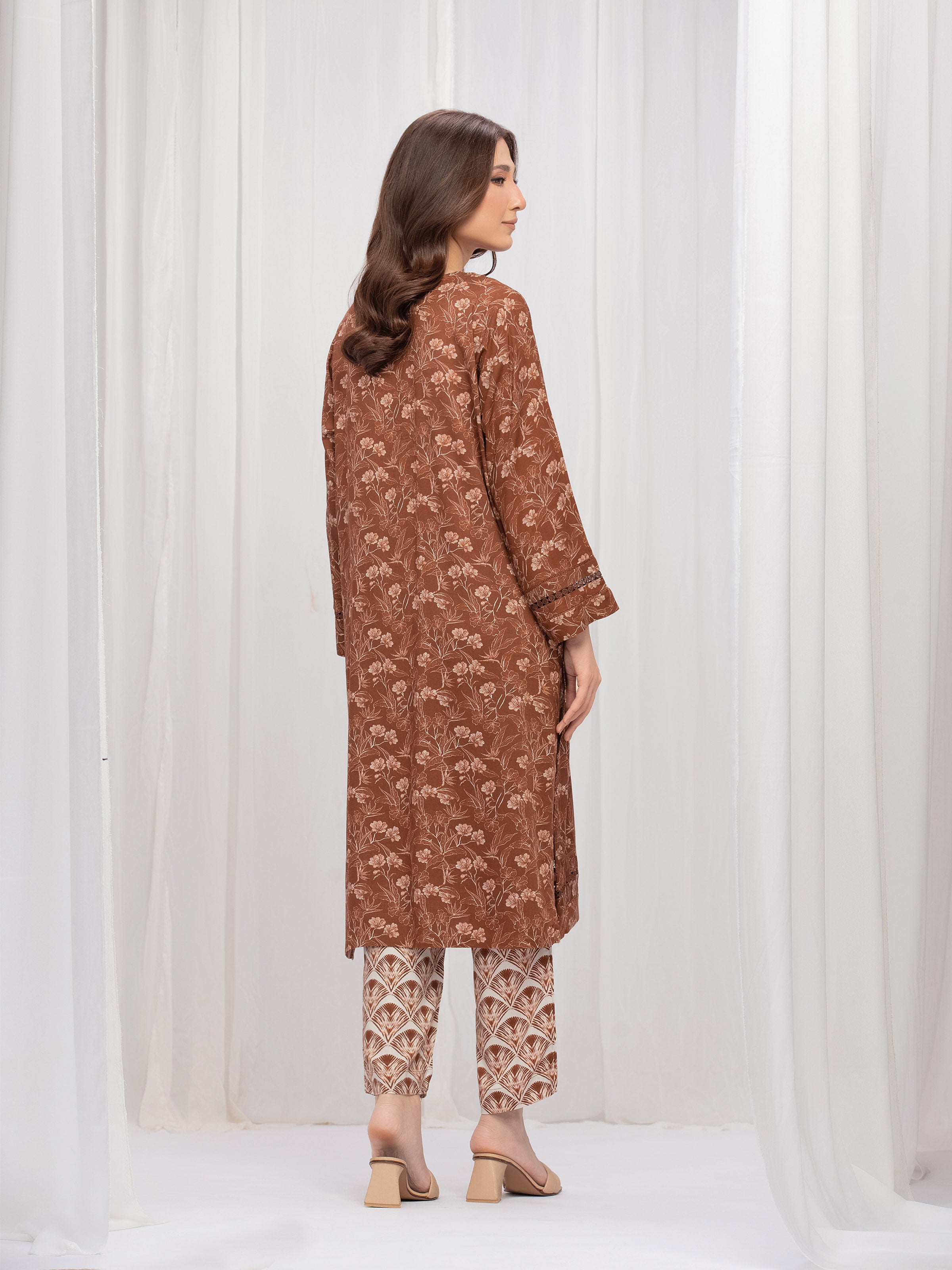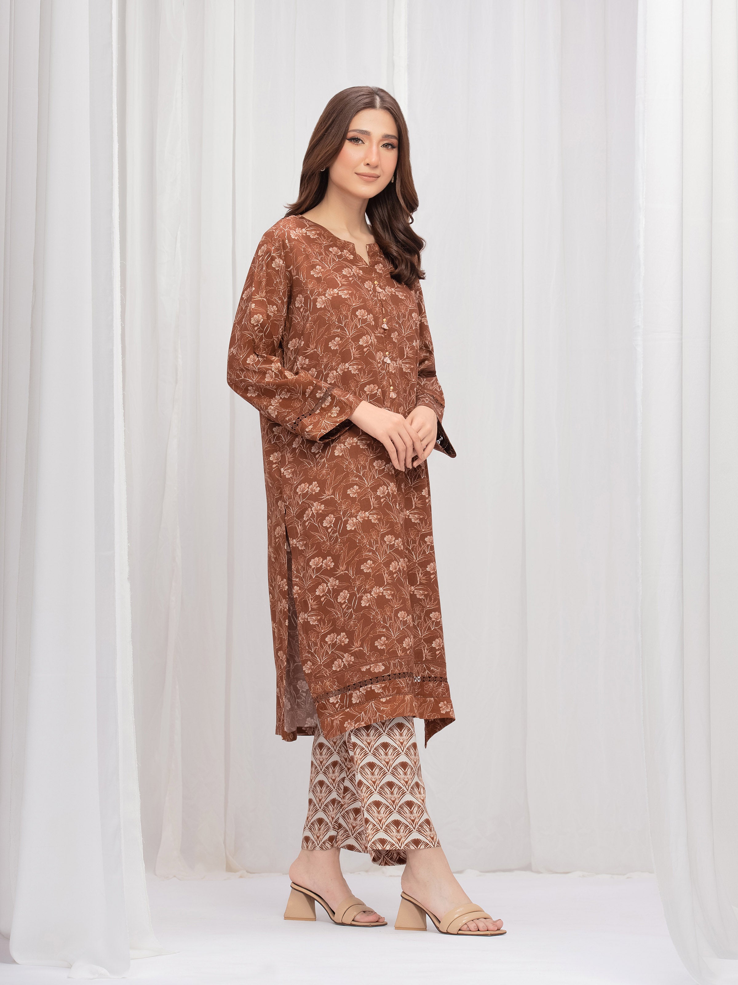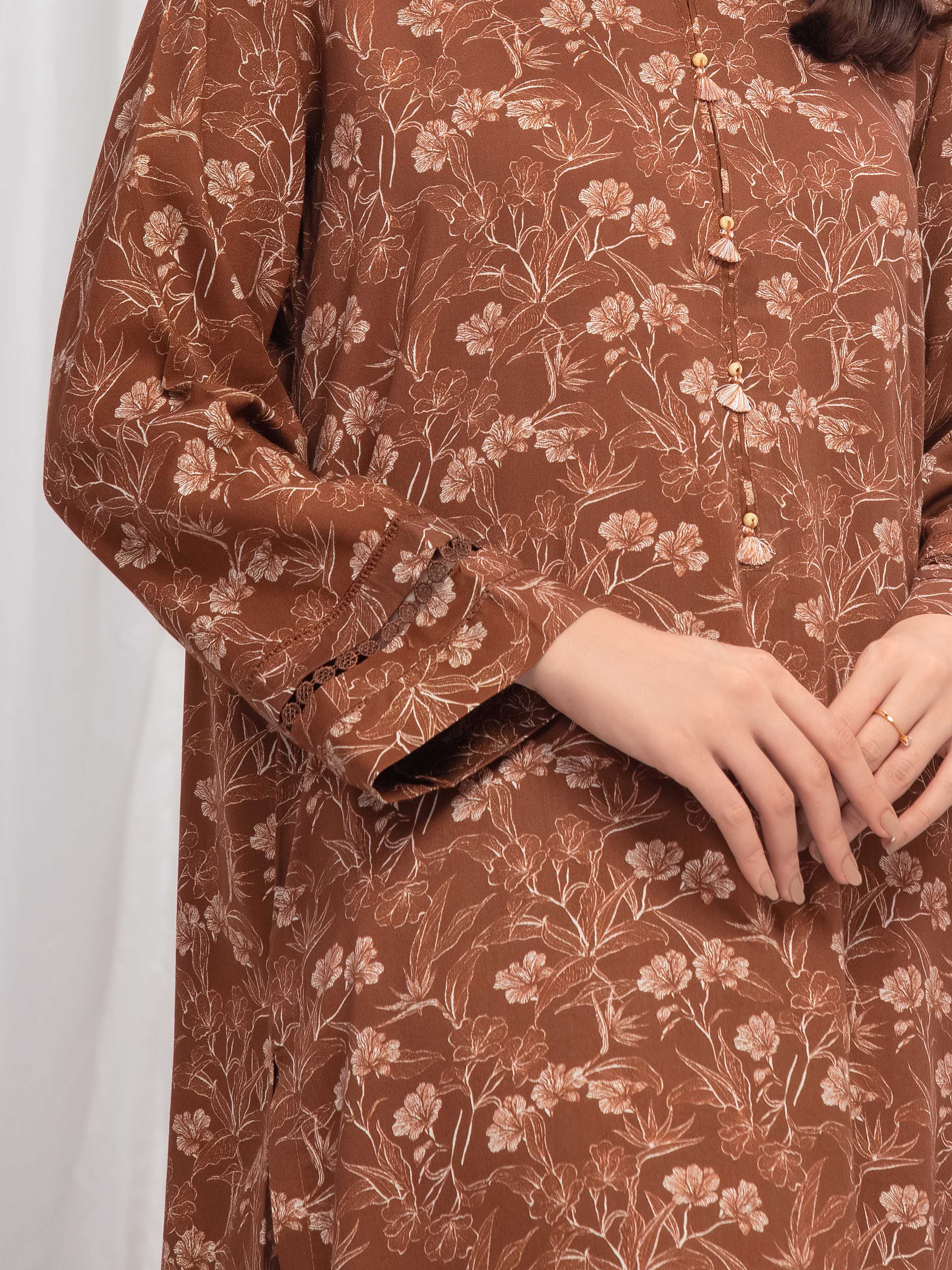 Style: Floral Printed Shirt with Embellished Placket and Lace on Sleeves & Daman