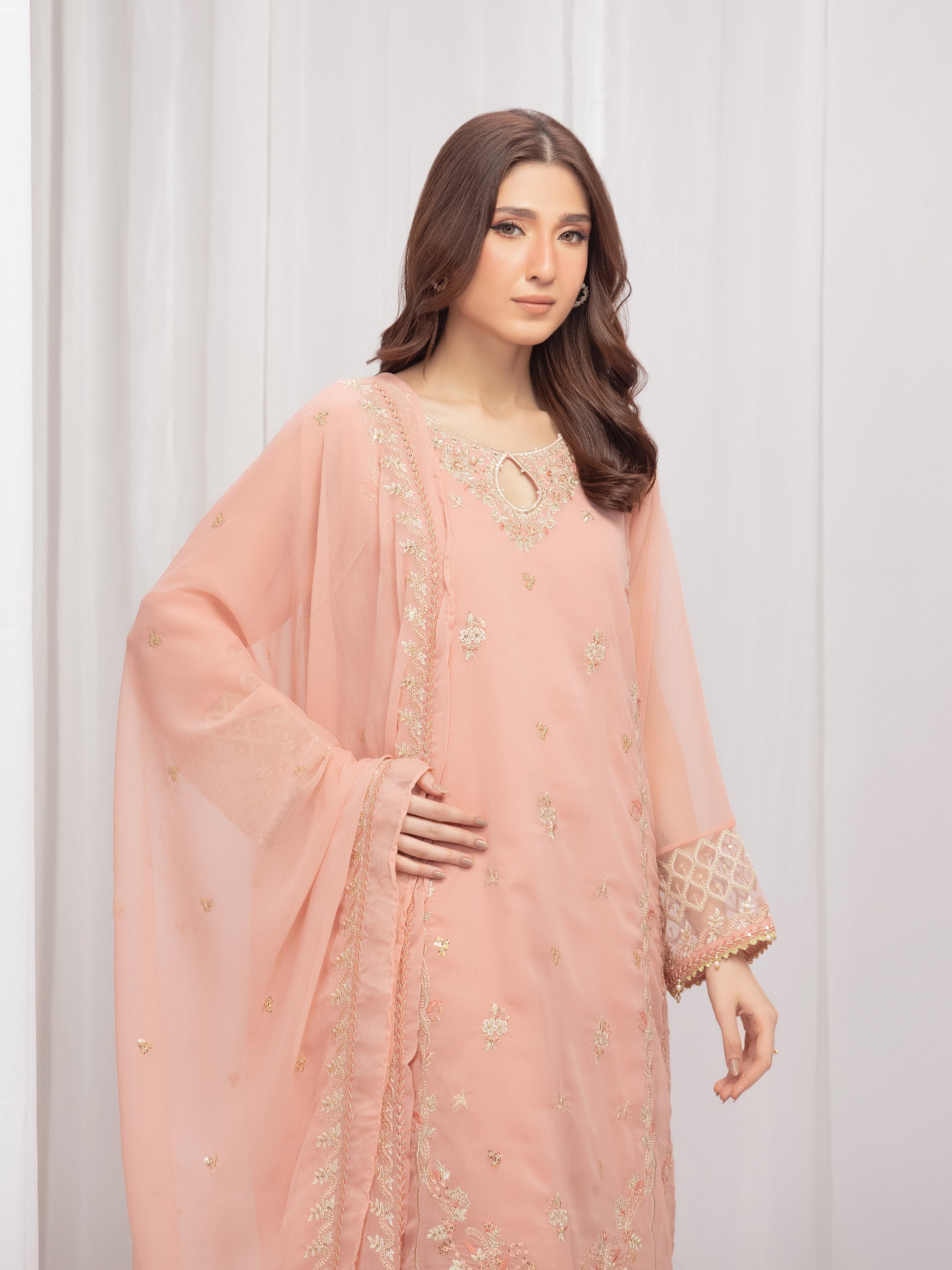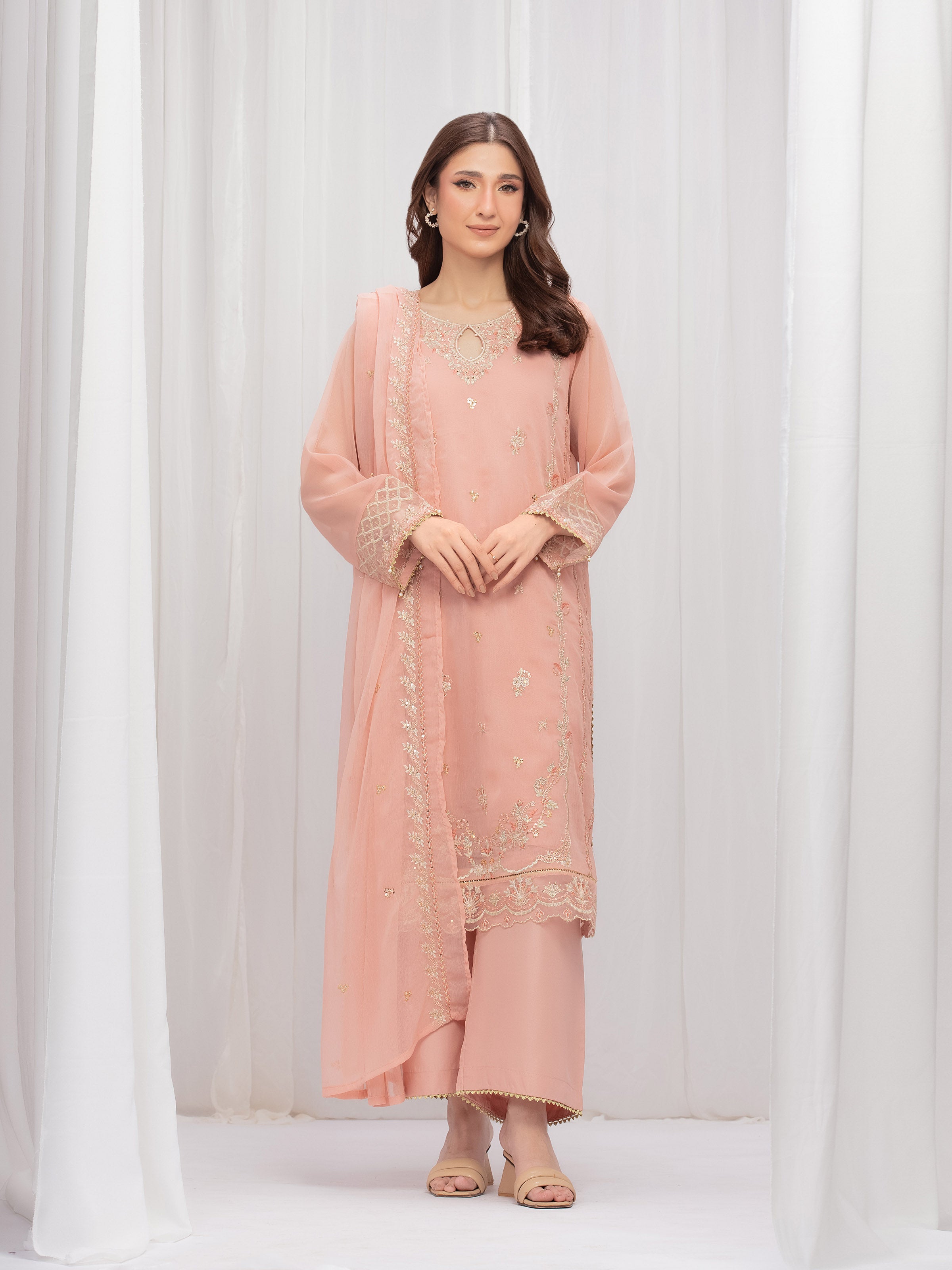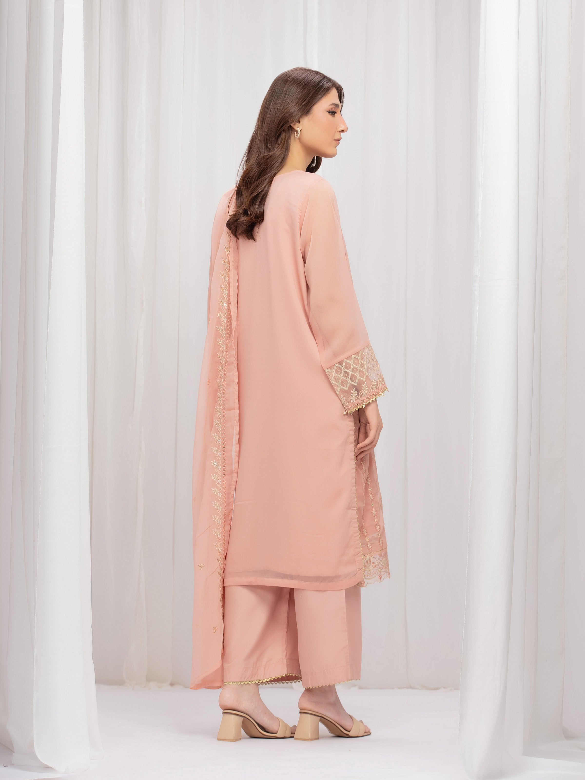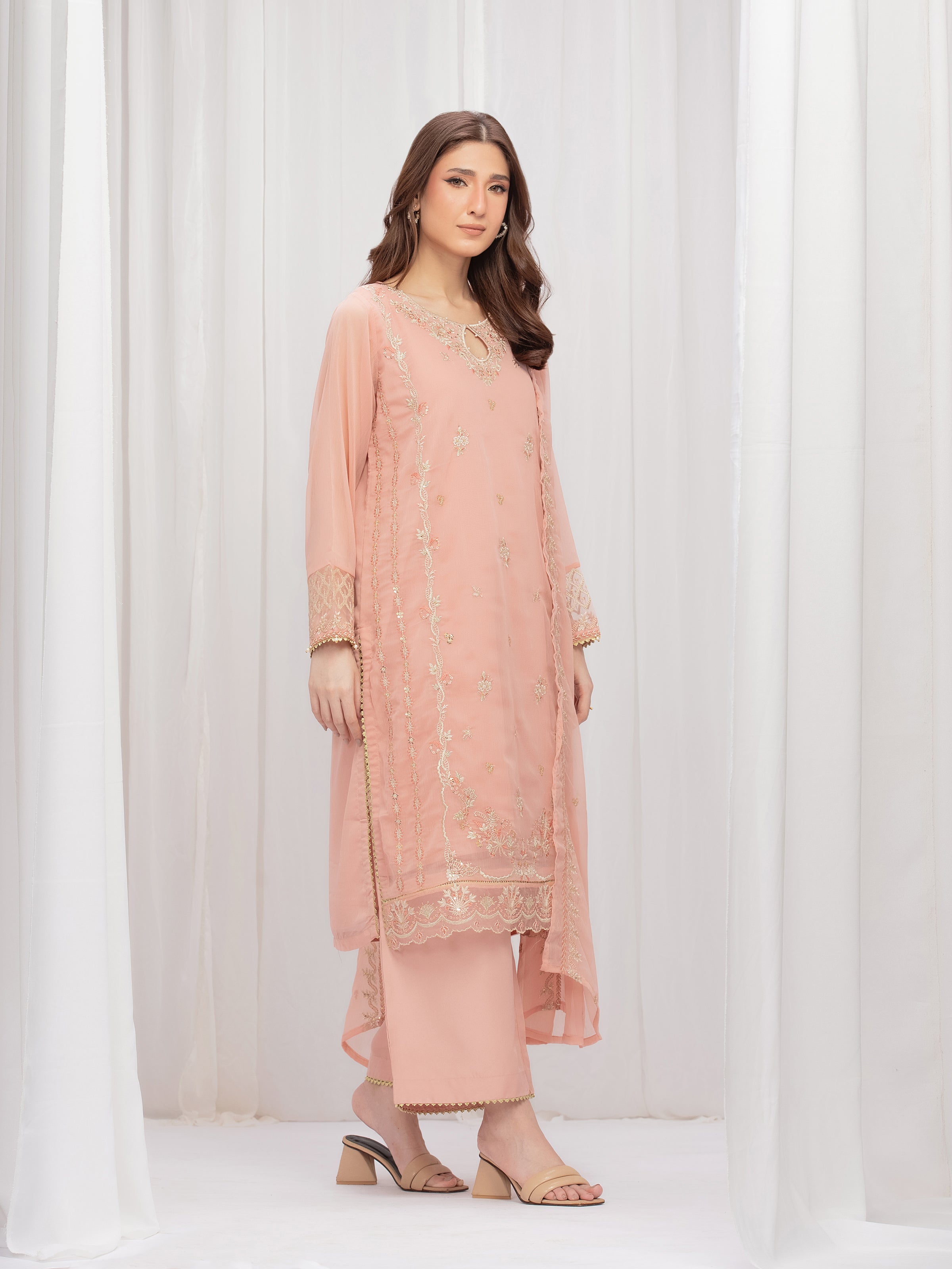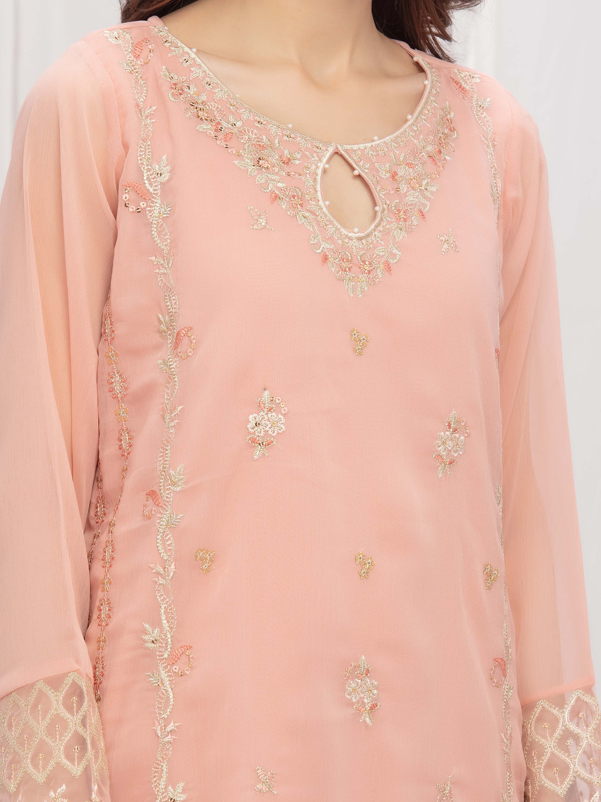 Style: Embroidered Shirt with Organza Border on Sleeves