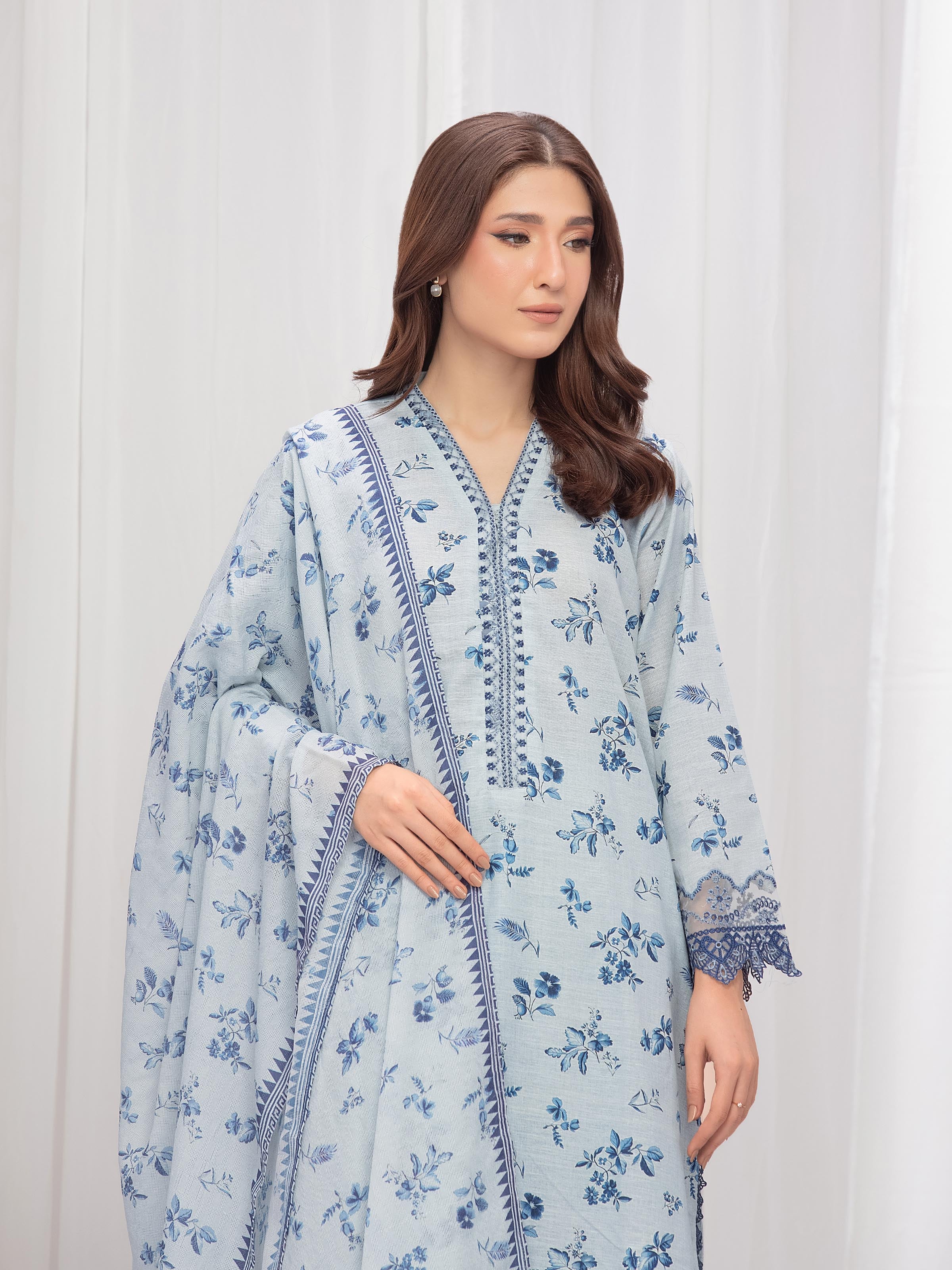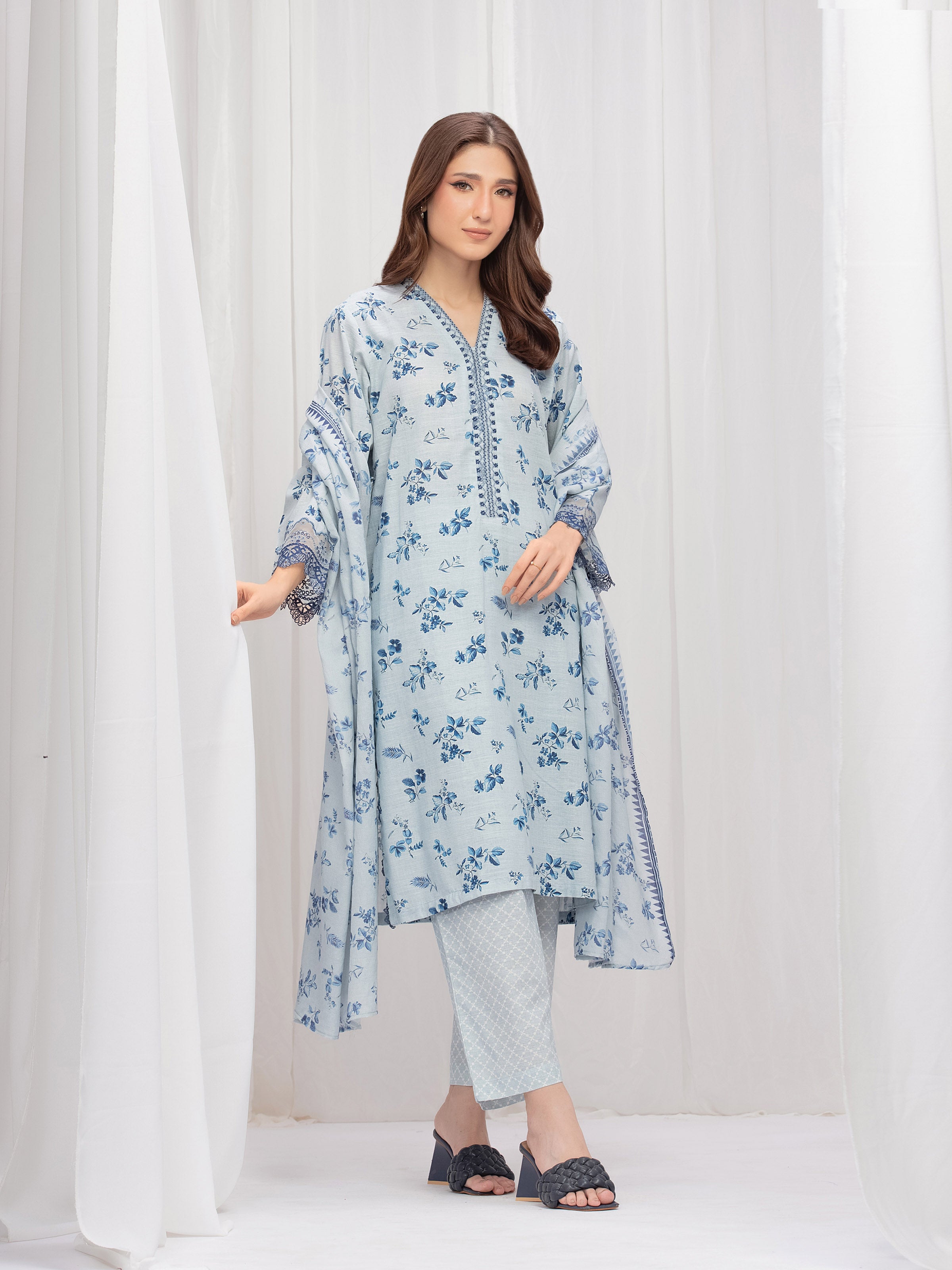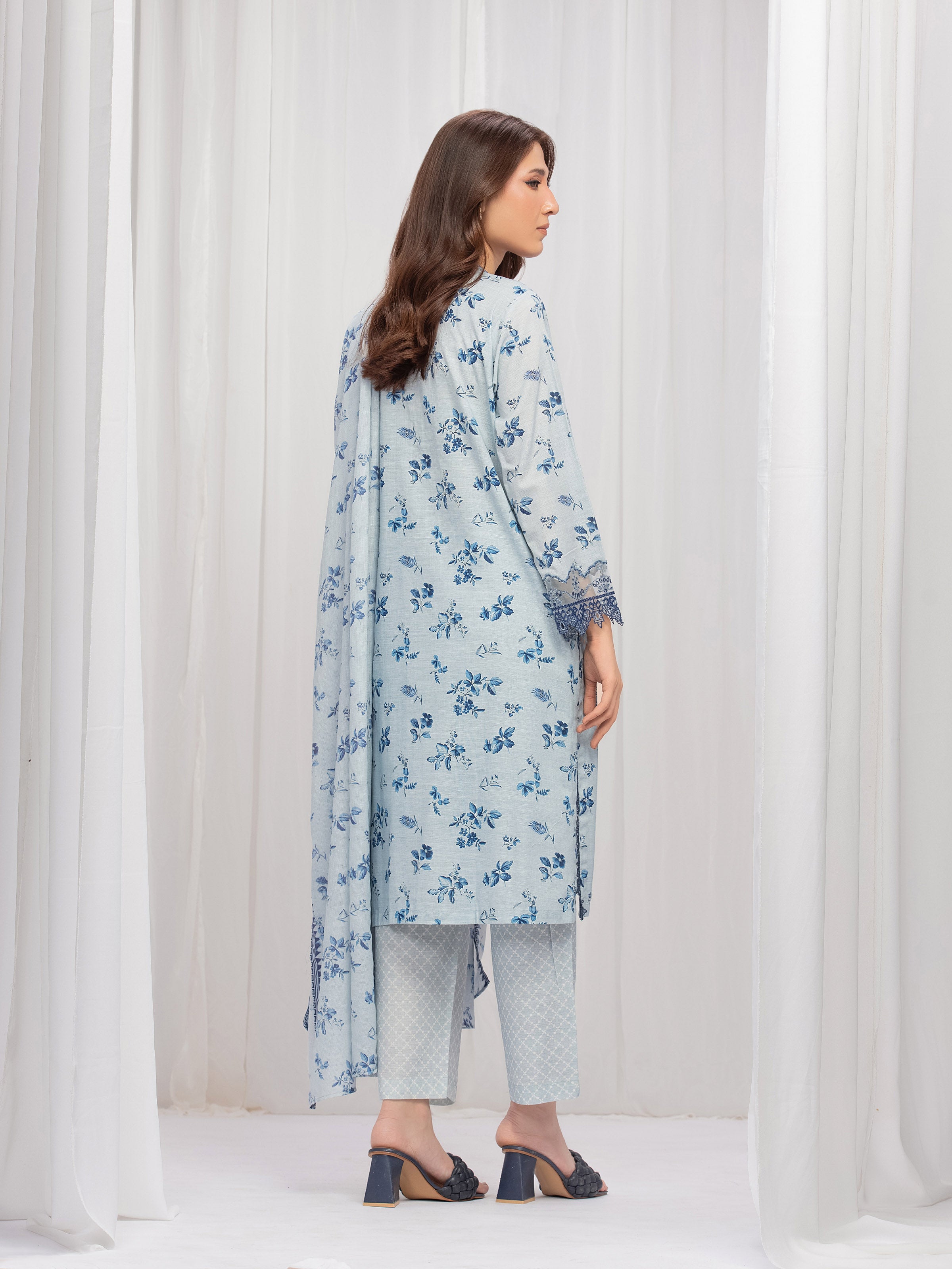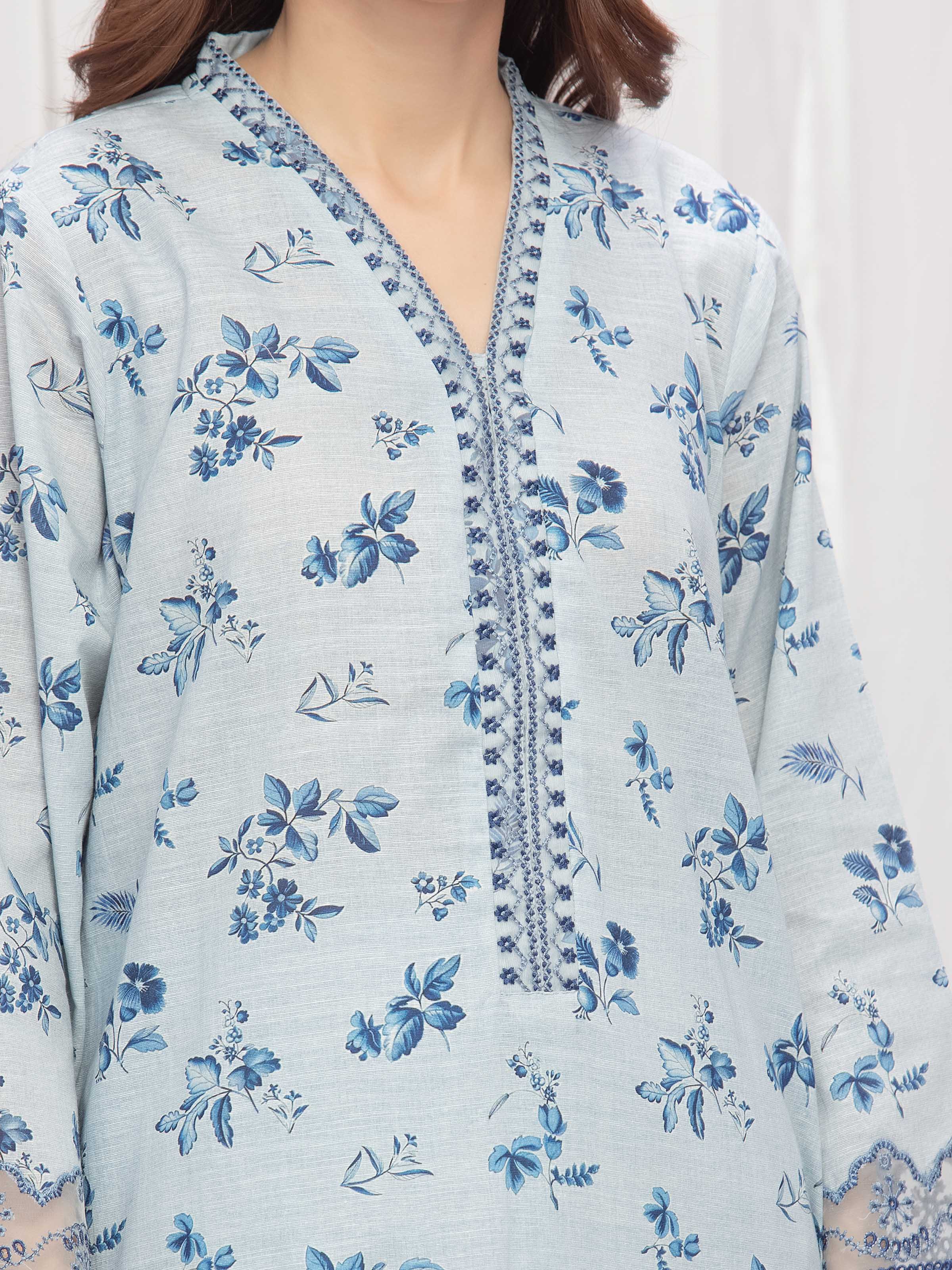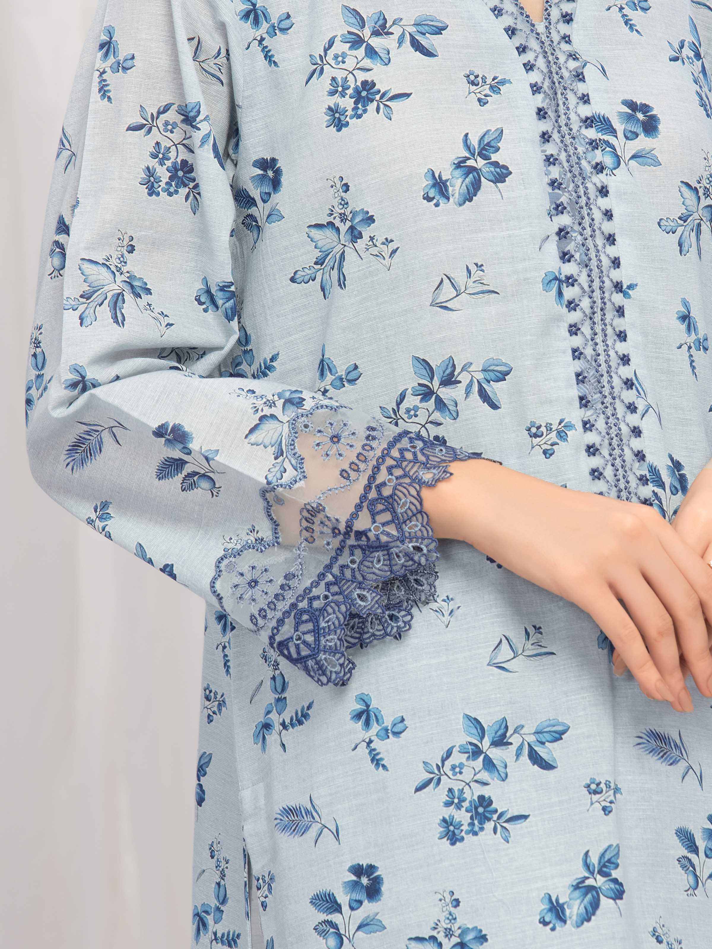 Style: Floral Printed Shirt with Embroidered Placket, Lace on Chalk, & Embroidered Organza Trims On Sleeves