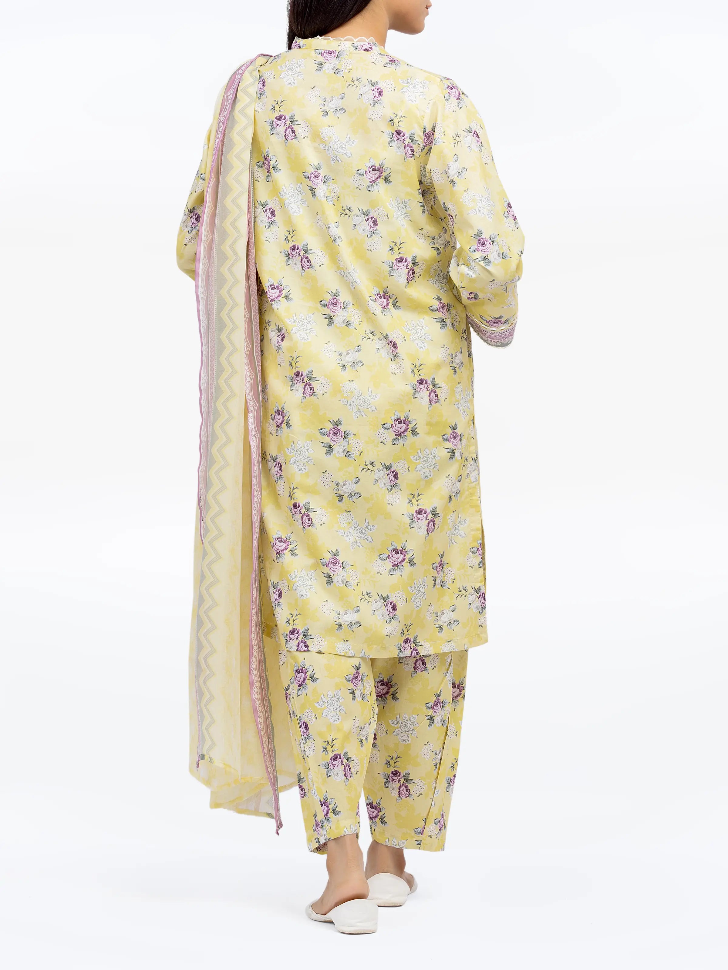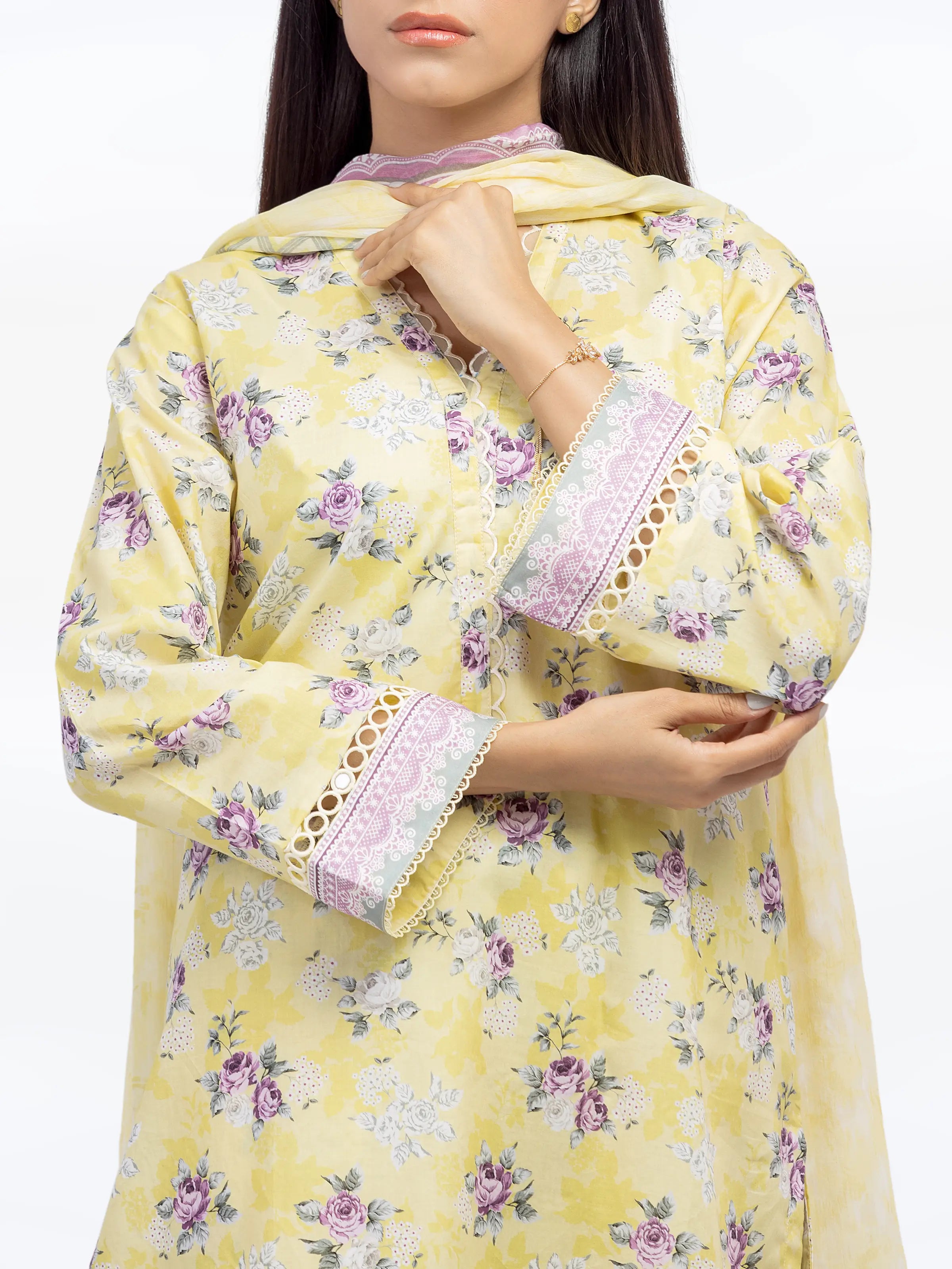 Style: Floral Printed Shirt with Fancy Organza Scallops Lace on Placket & Ladder Lace in Sleeves