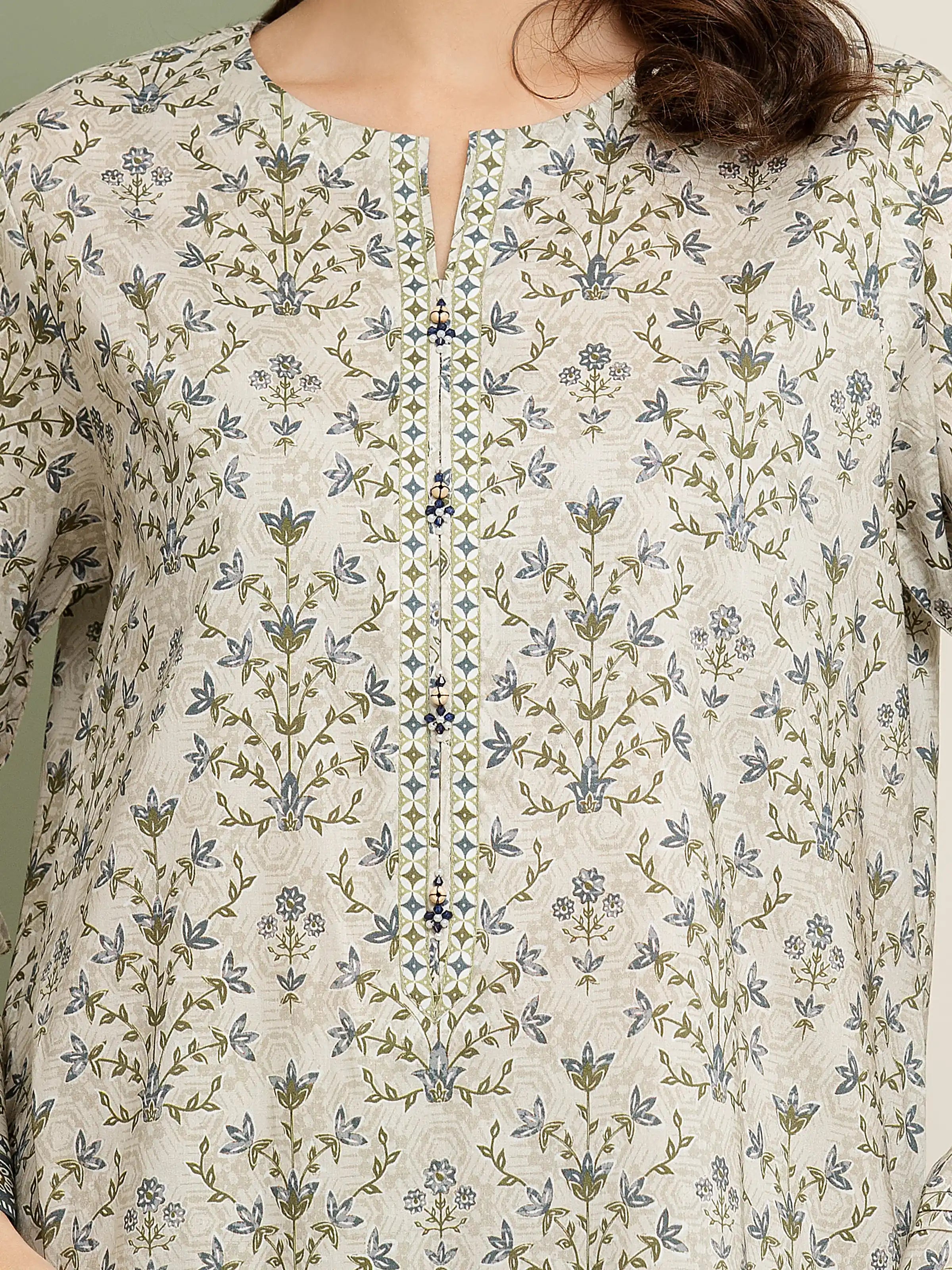 Unstitched Beige Printed Lawn 2 Piece