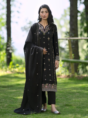 Unstitched Black Embroidered Marina Twill 3 Piece