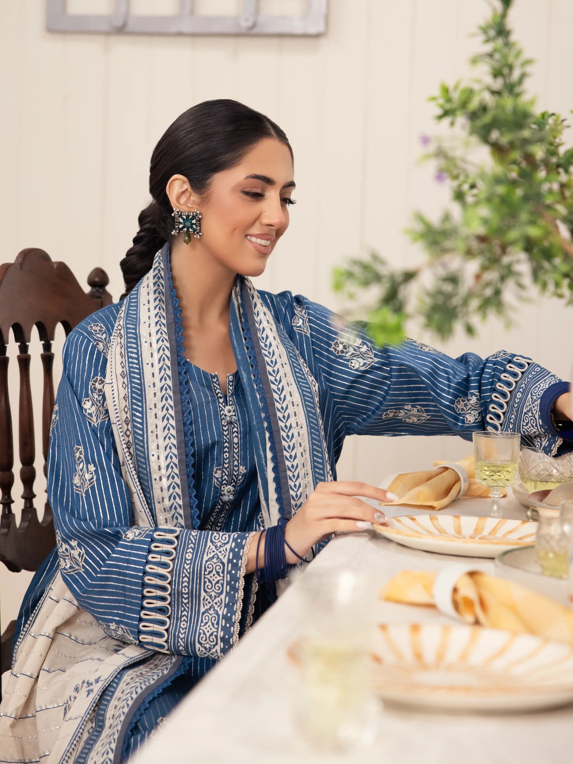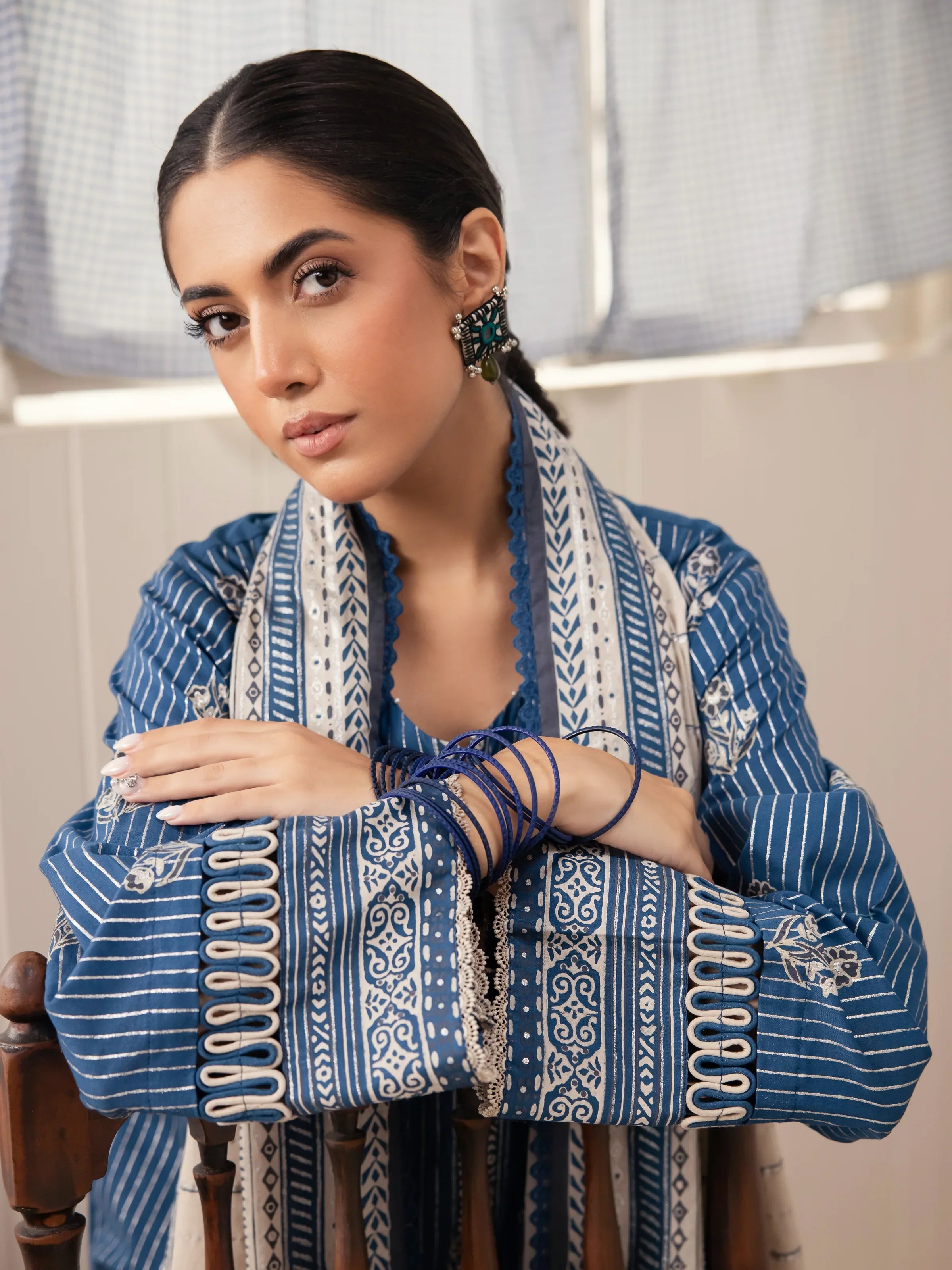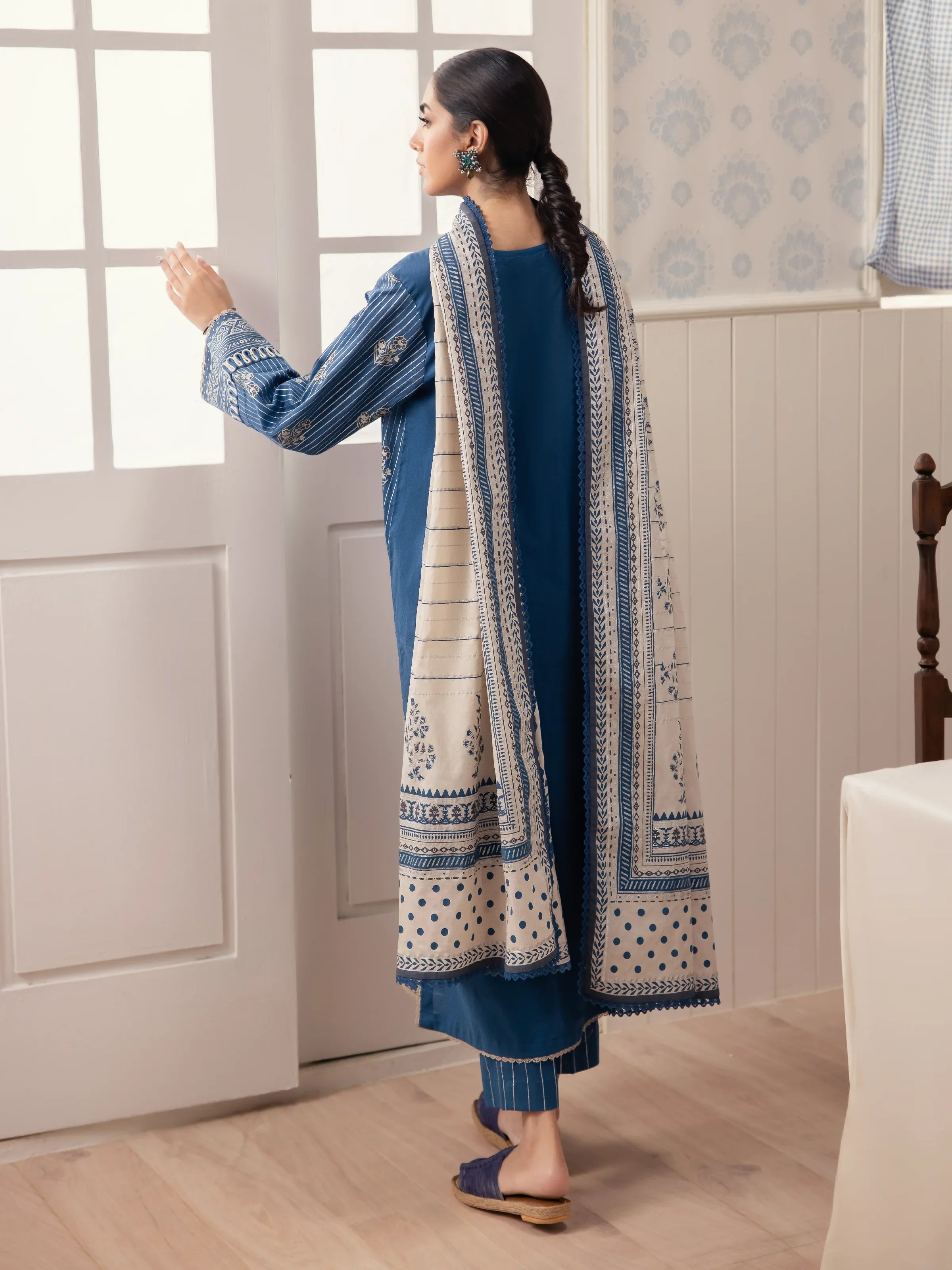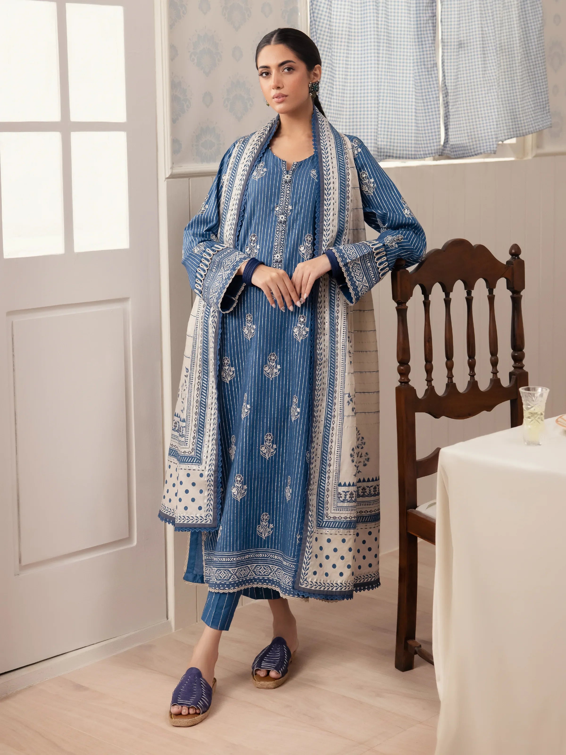 Unstitched Blue Block Print Cambric 2 Piece