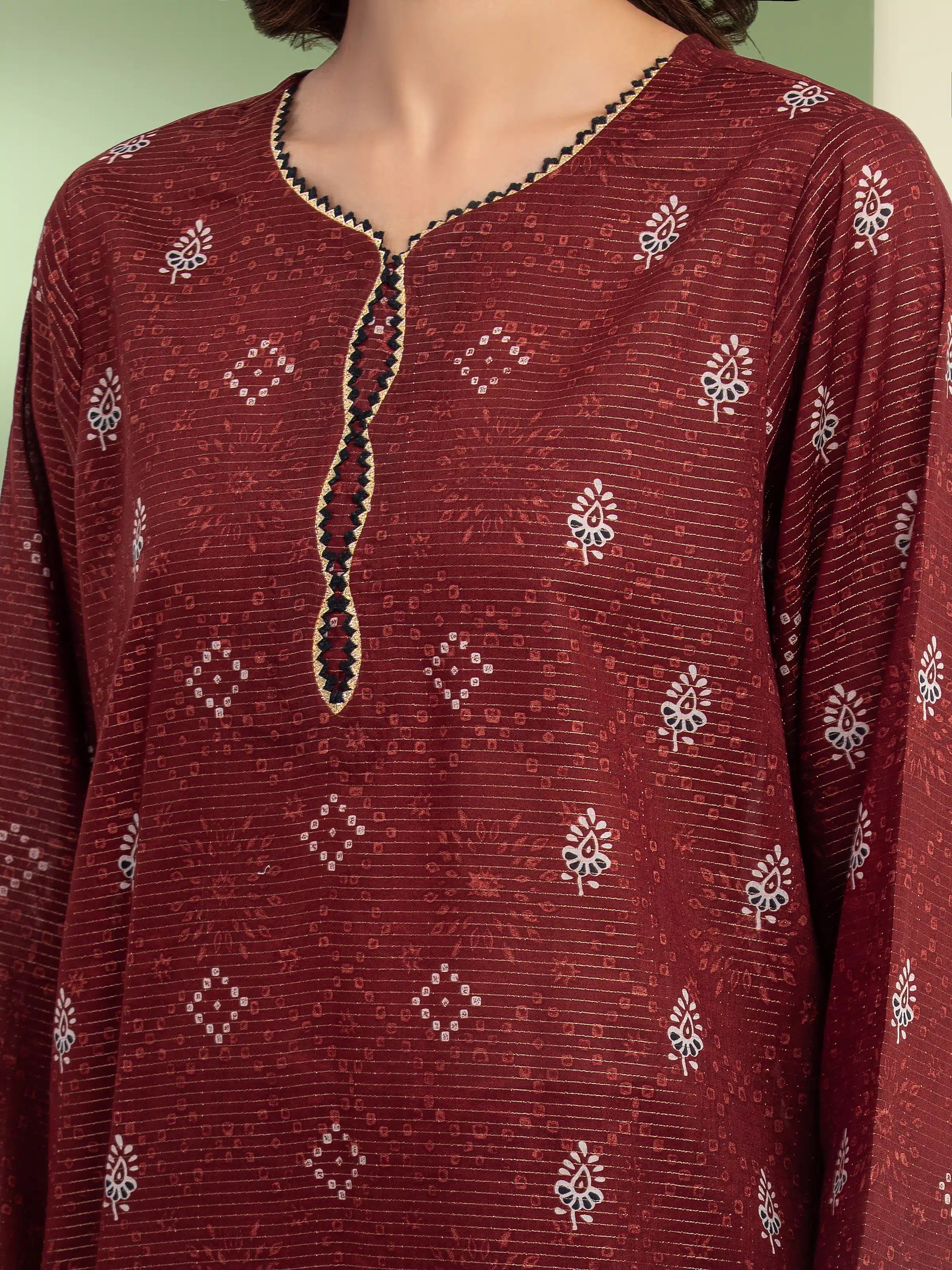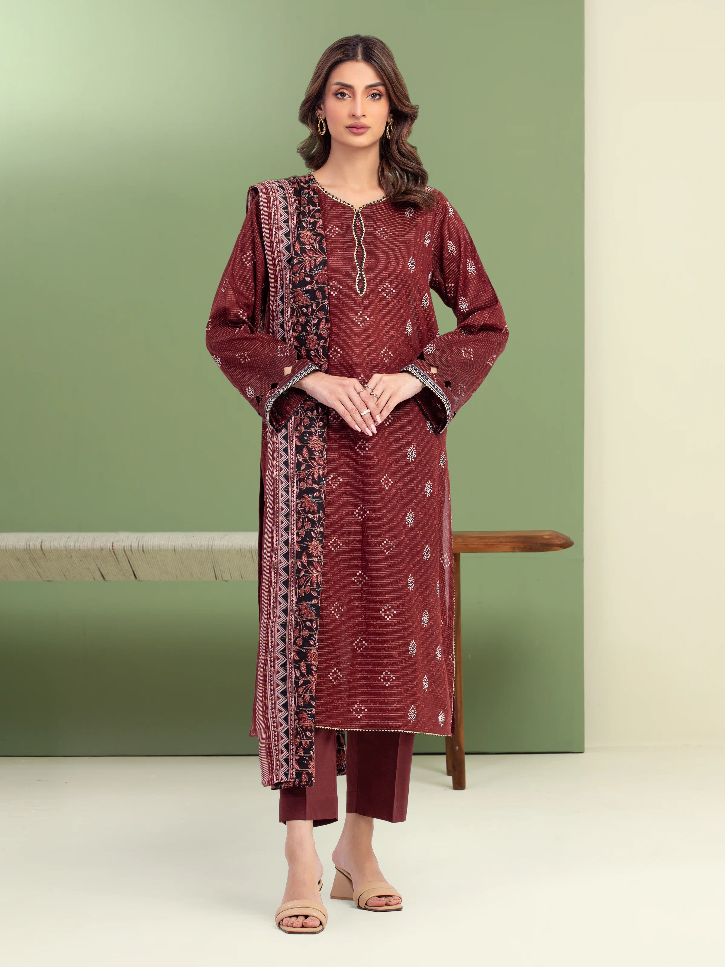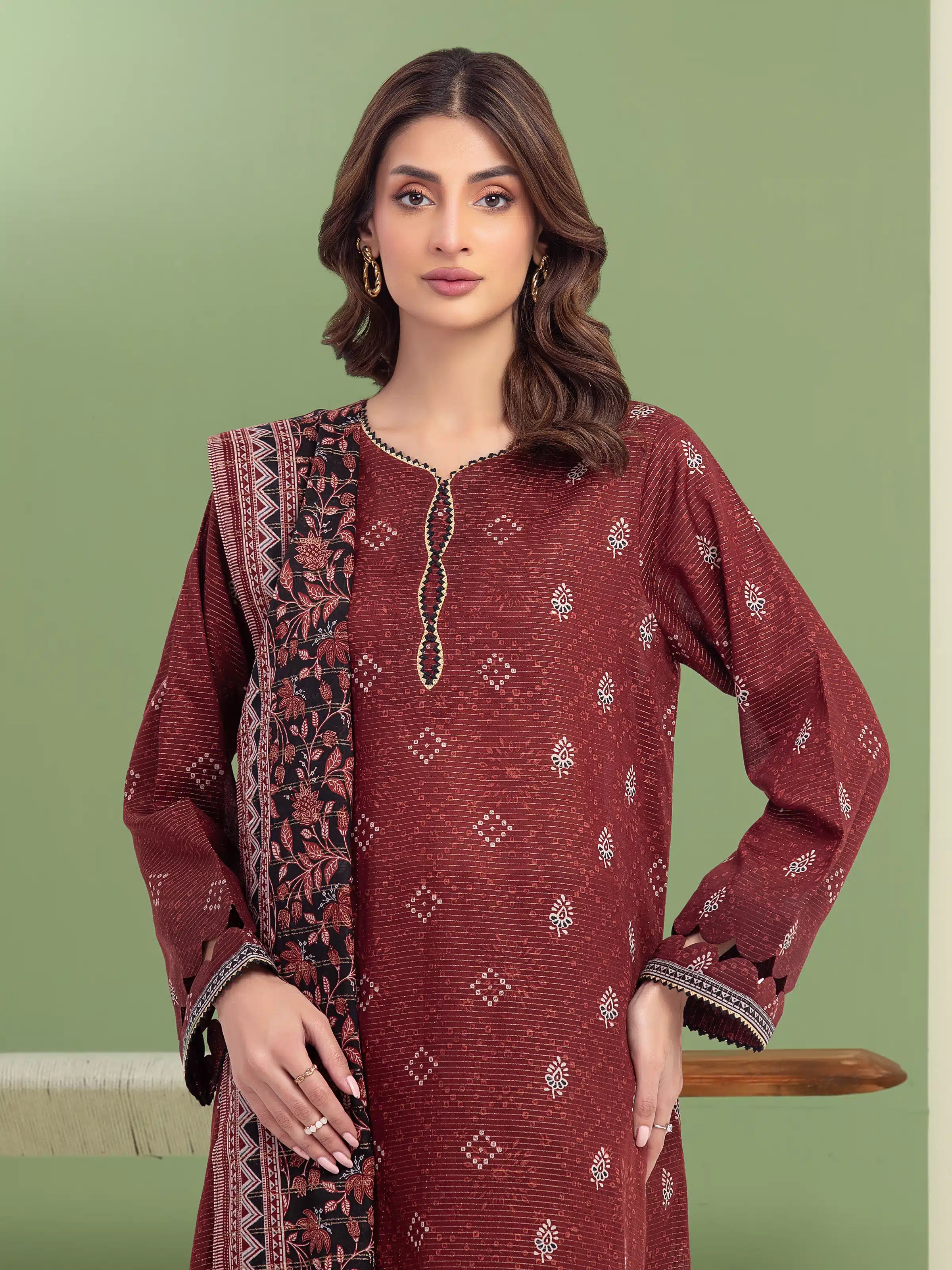 Unstitched Brown Printed Zari Lawn 3 Piece