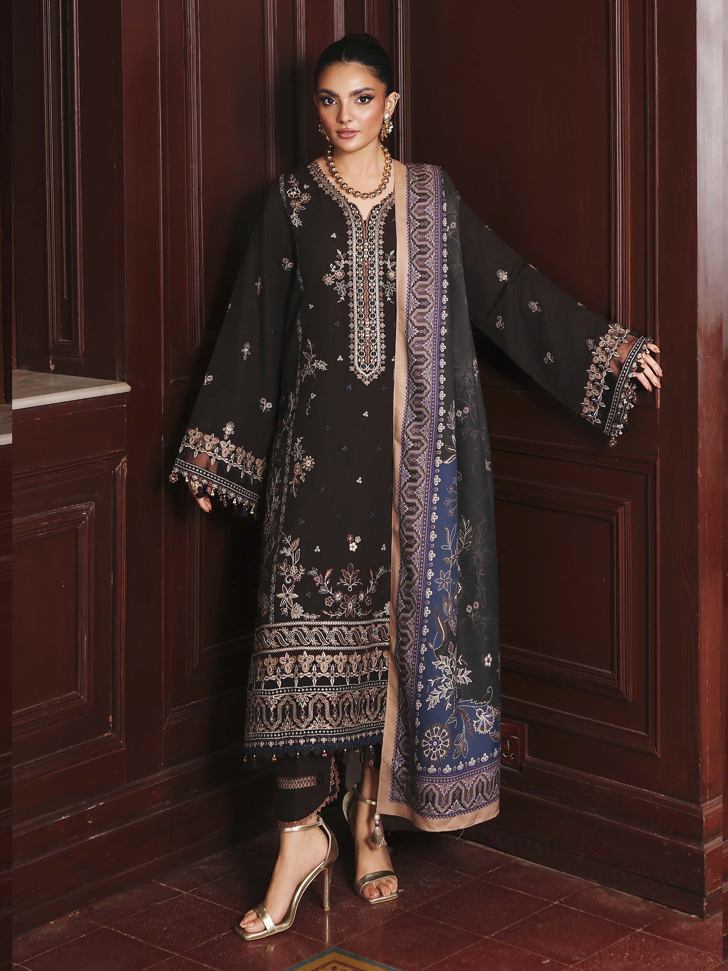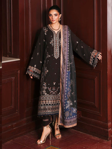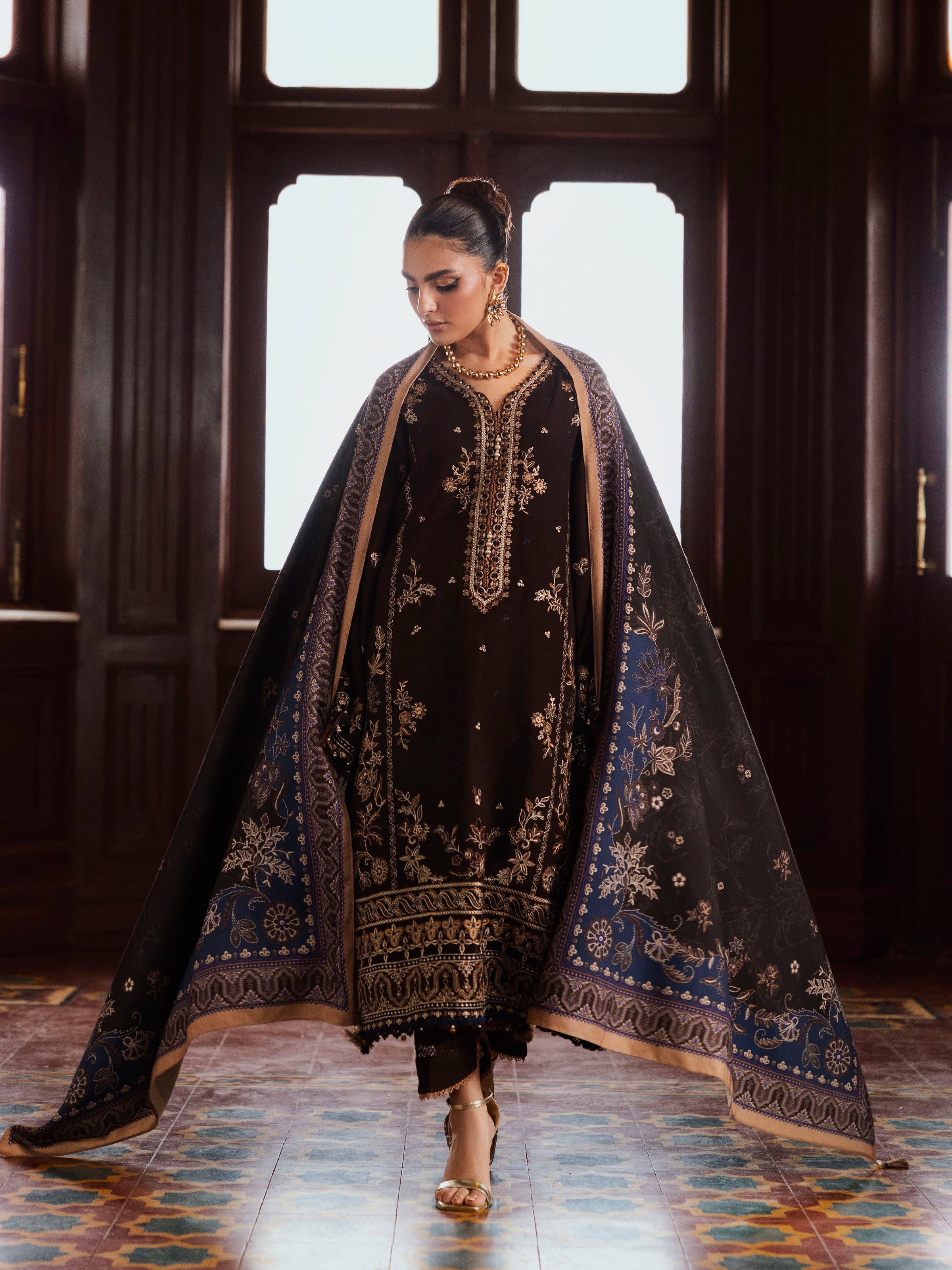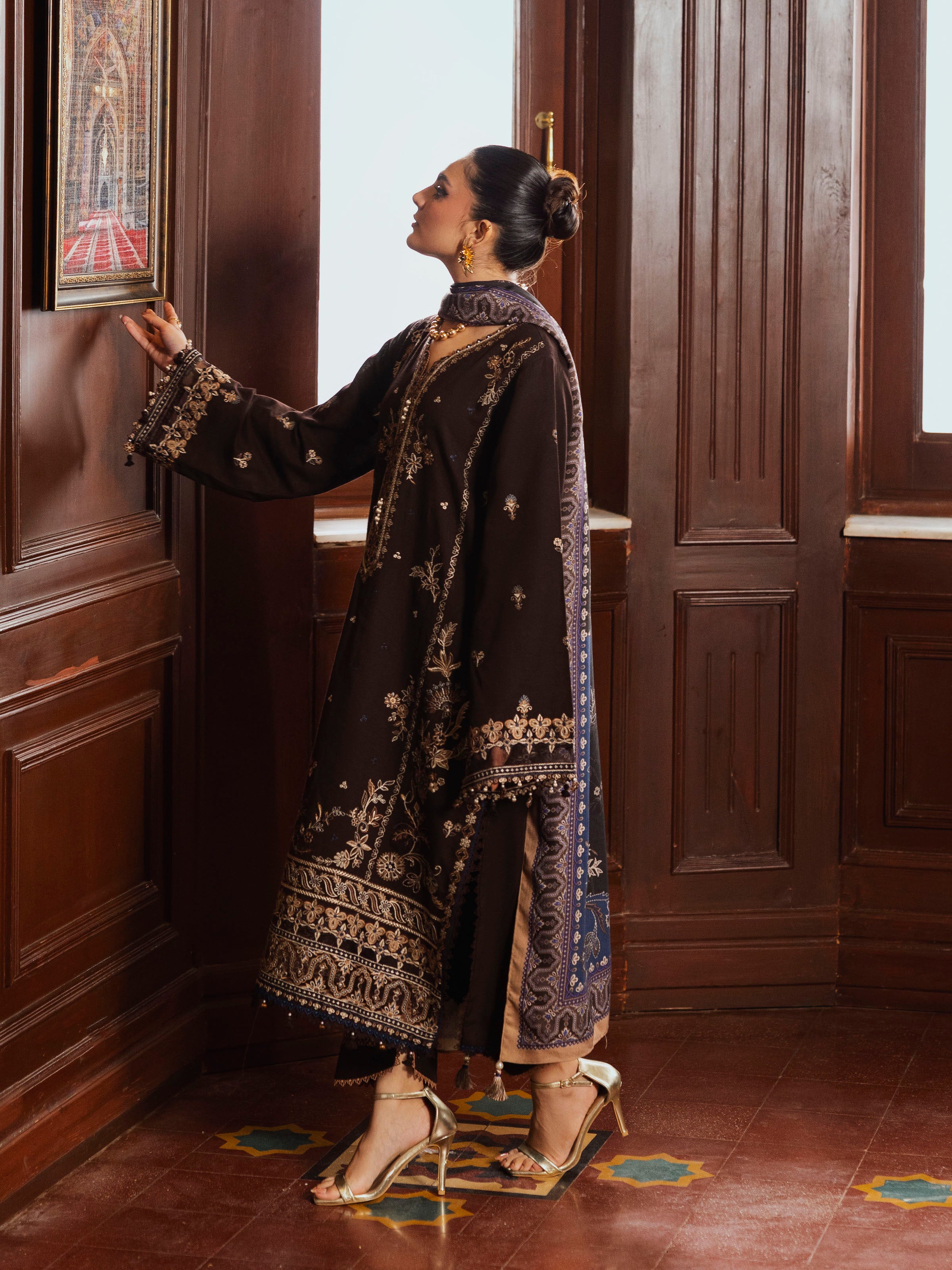 Unstitched Dark Brown Embroidered Khaddar 3 Piece