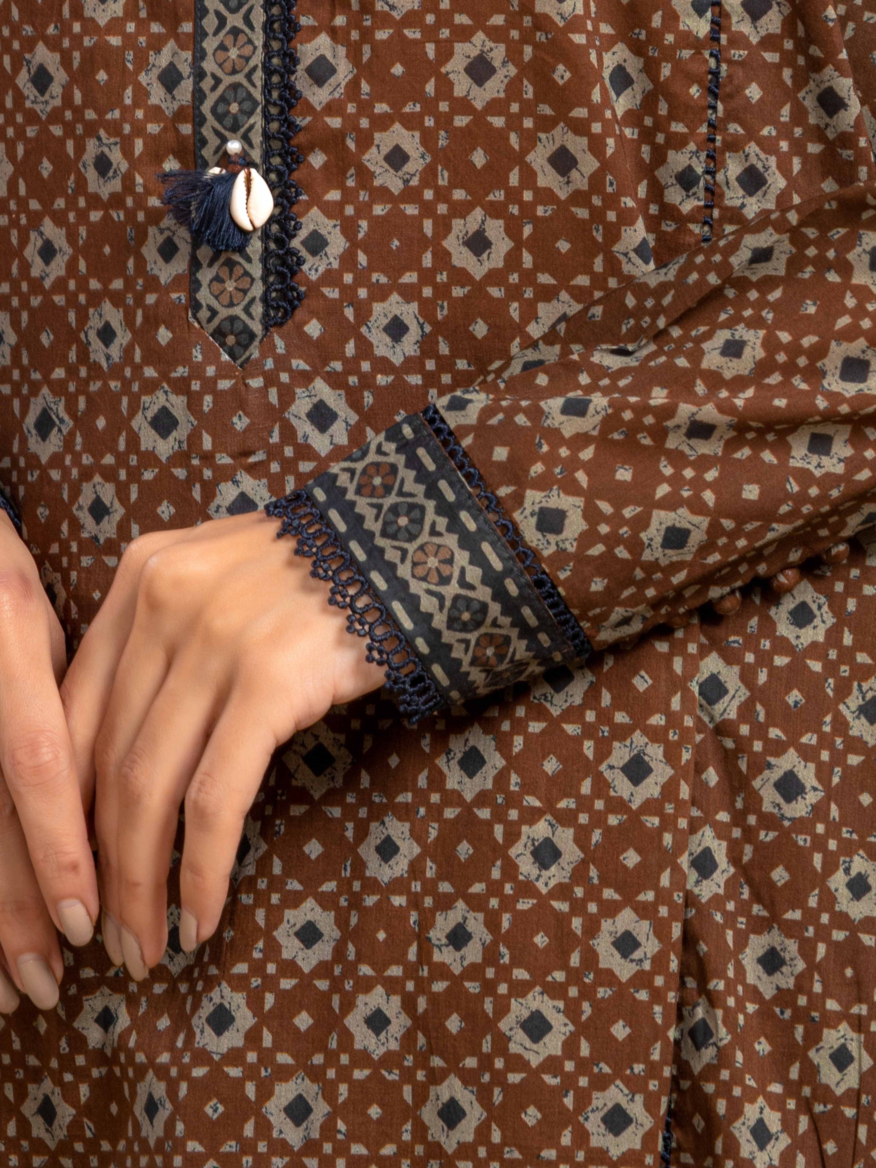 Unstitched Dark Brown Printed Khaddar 3 Piece