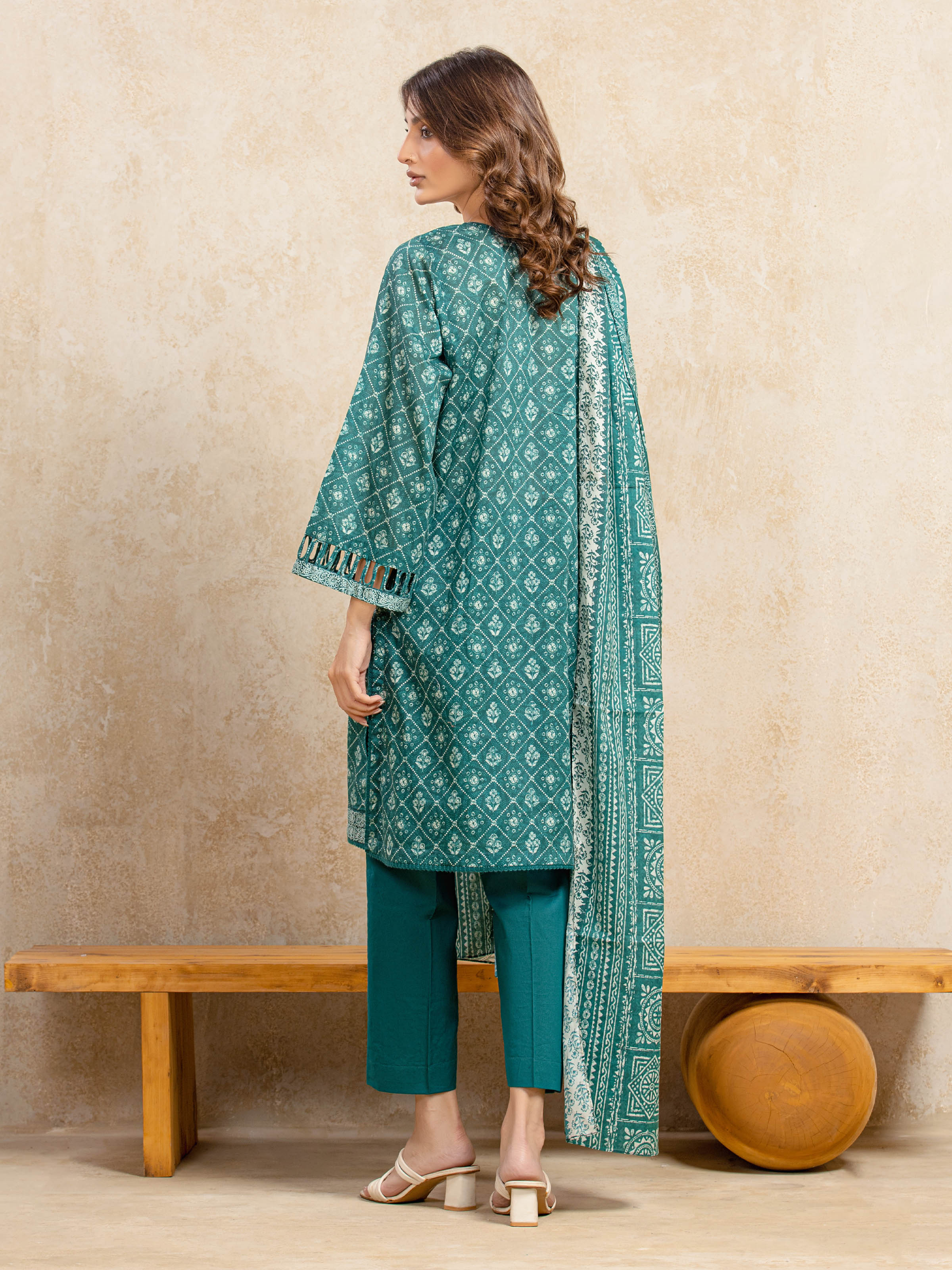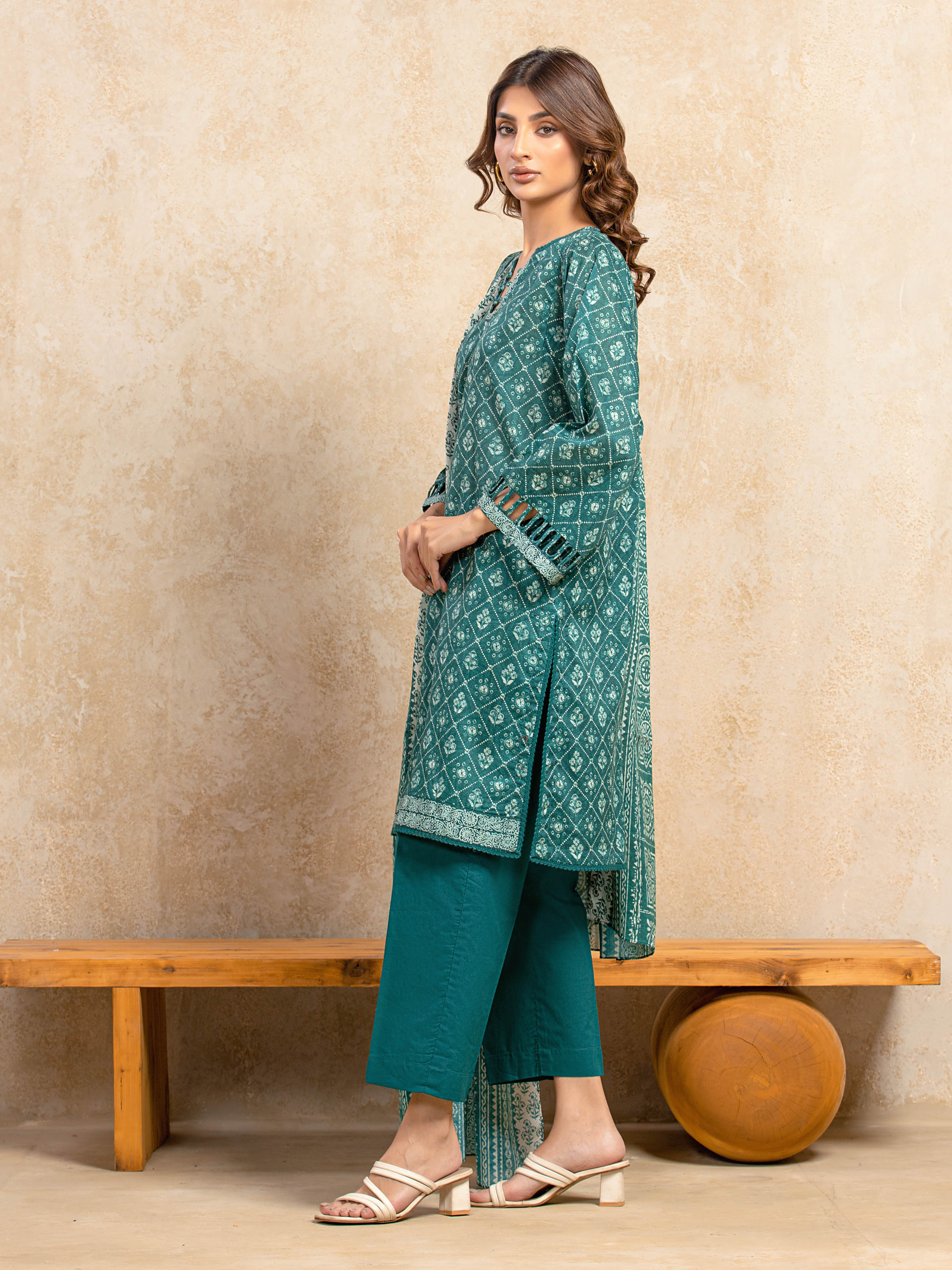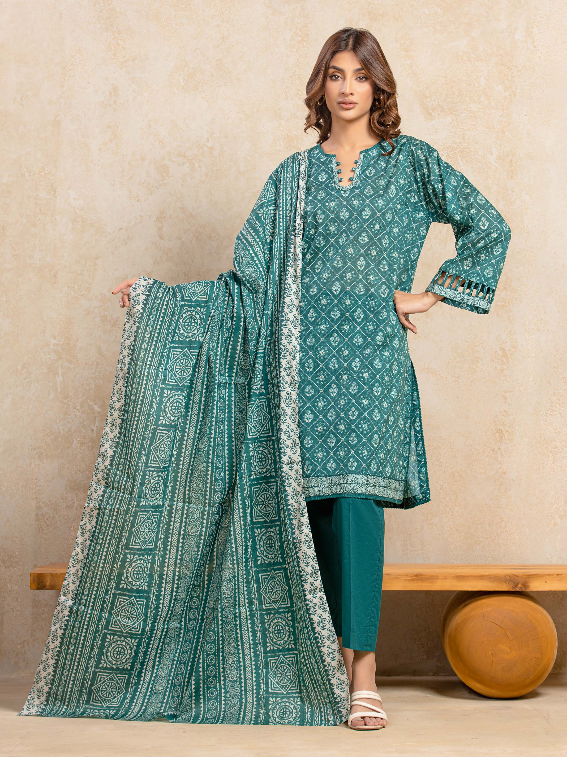 Unstitched Dark Green Printed Khaddar 3 Piece