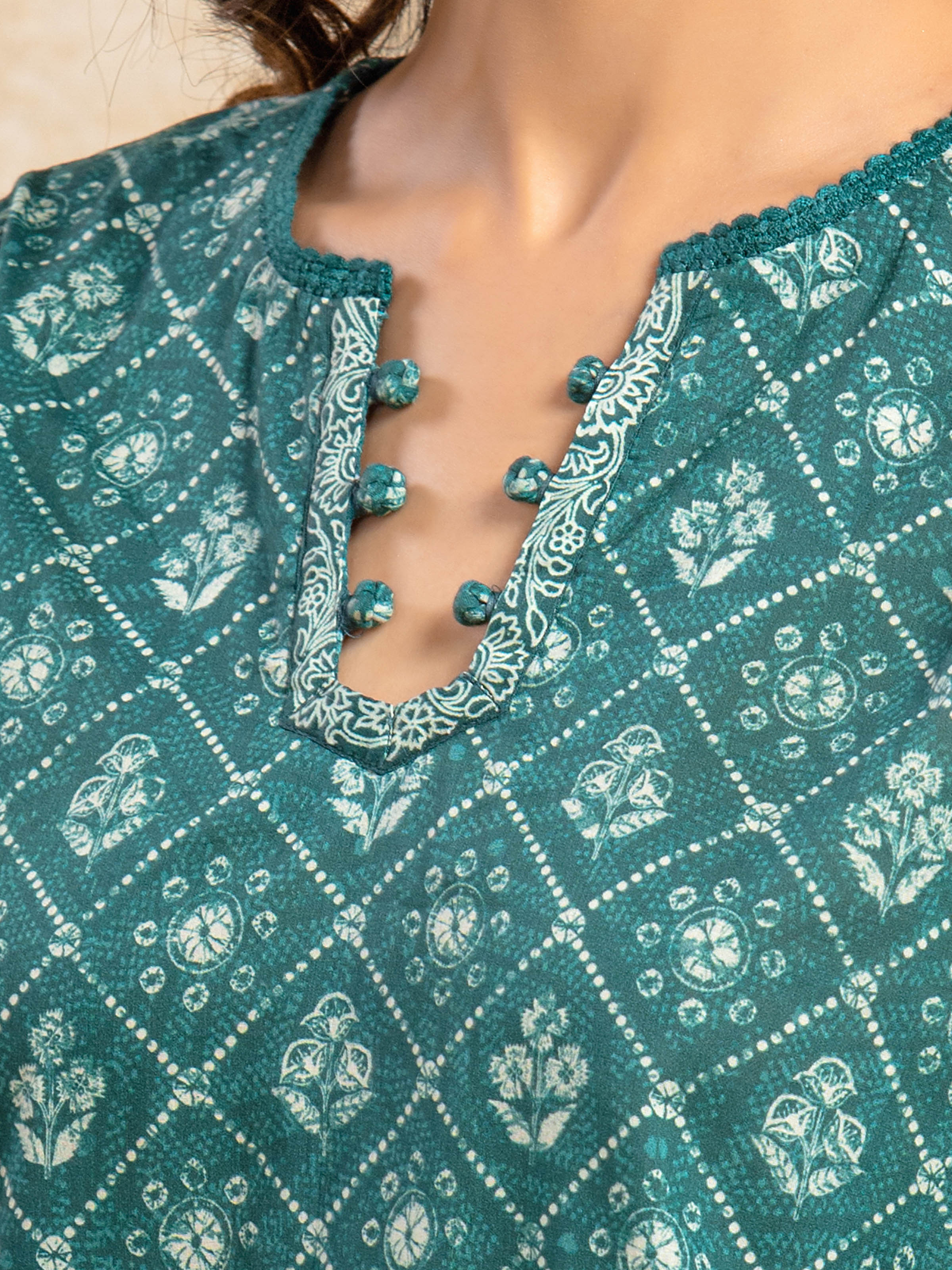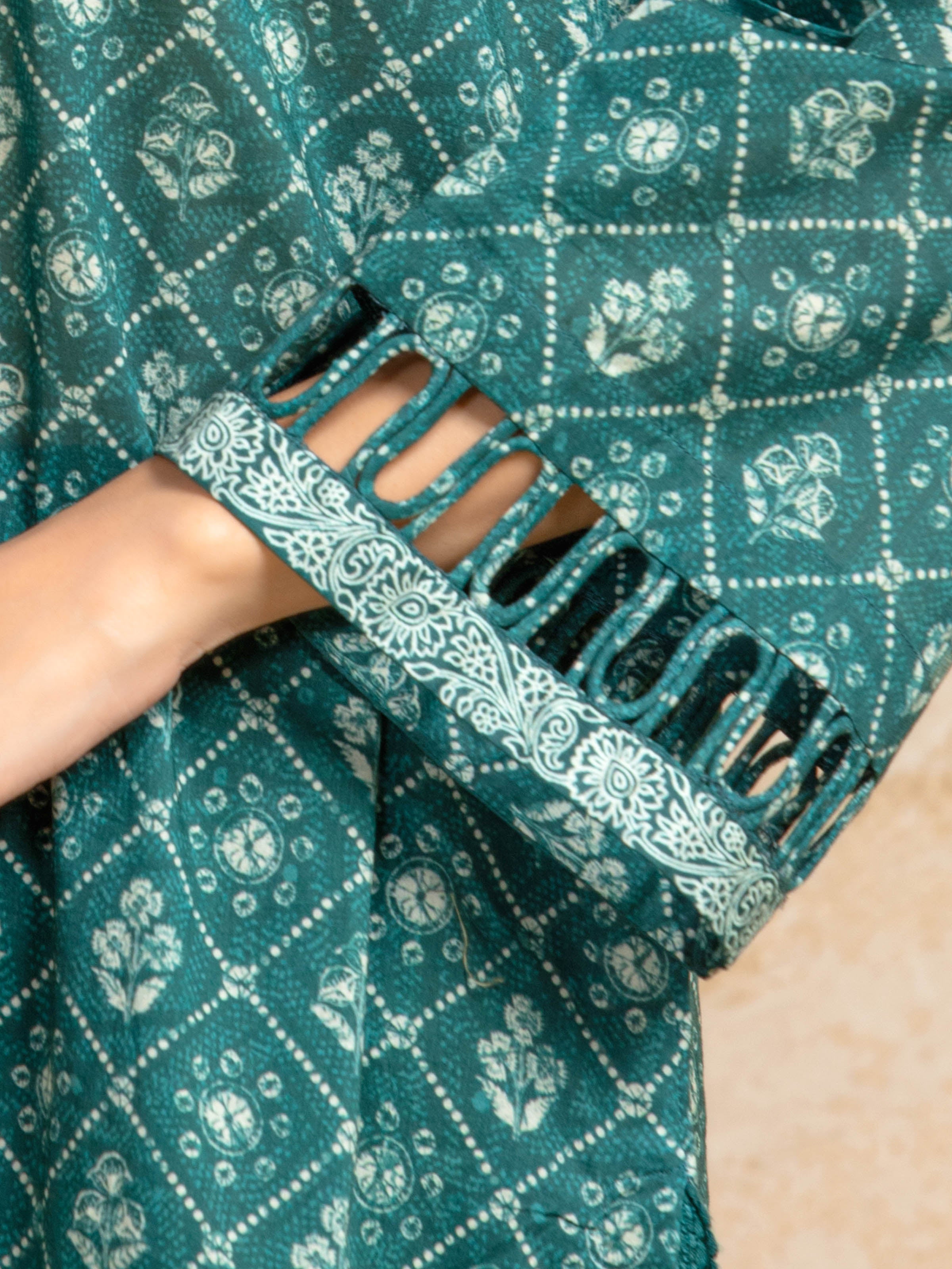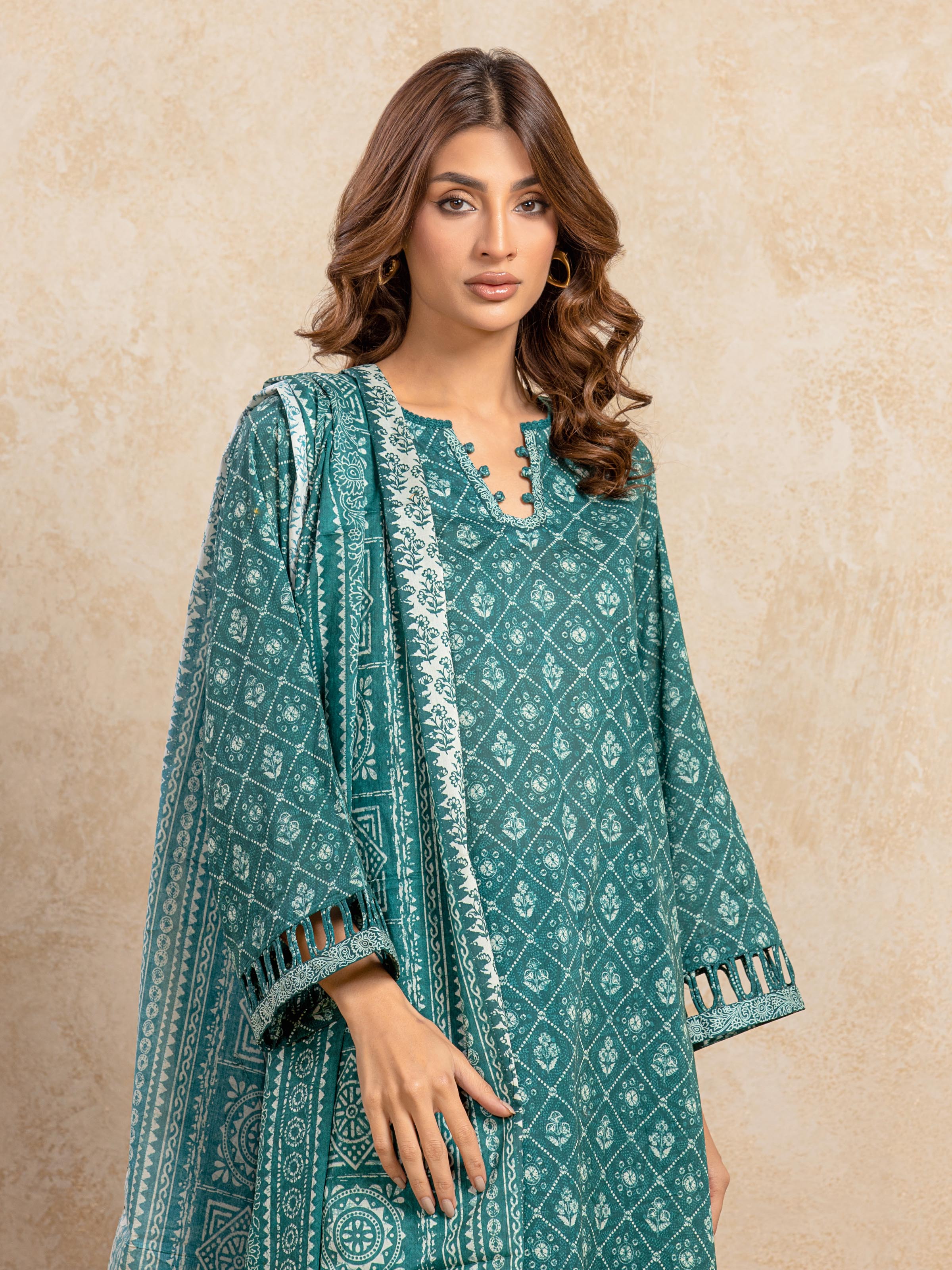Unstitched Dark Green Printed Khaddar 3 Piece