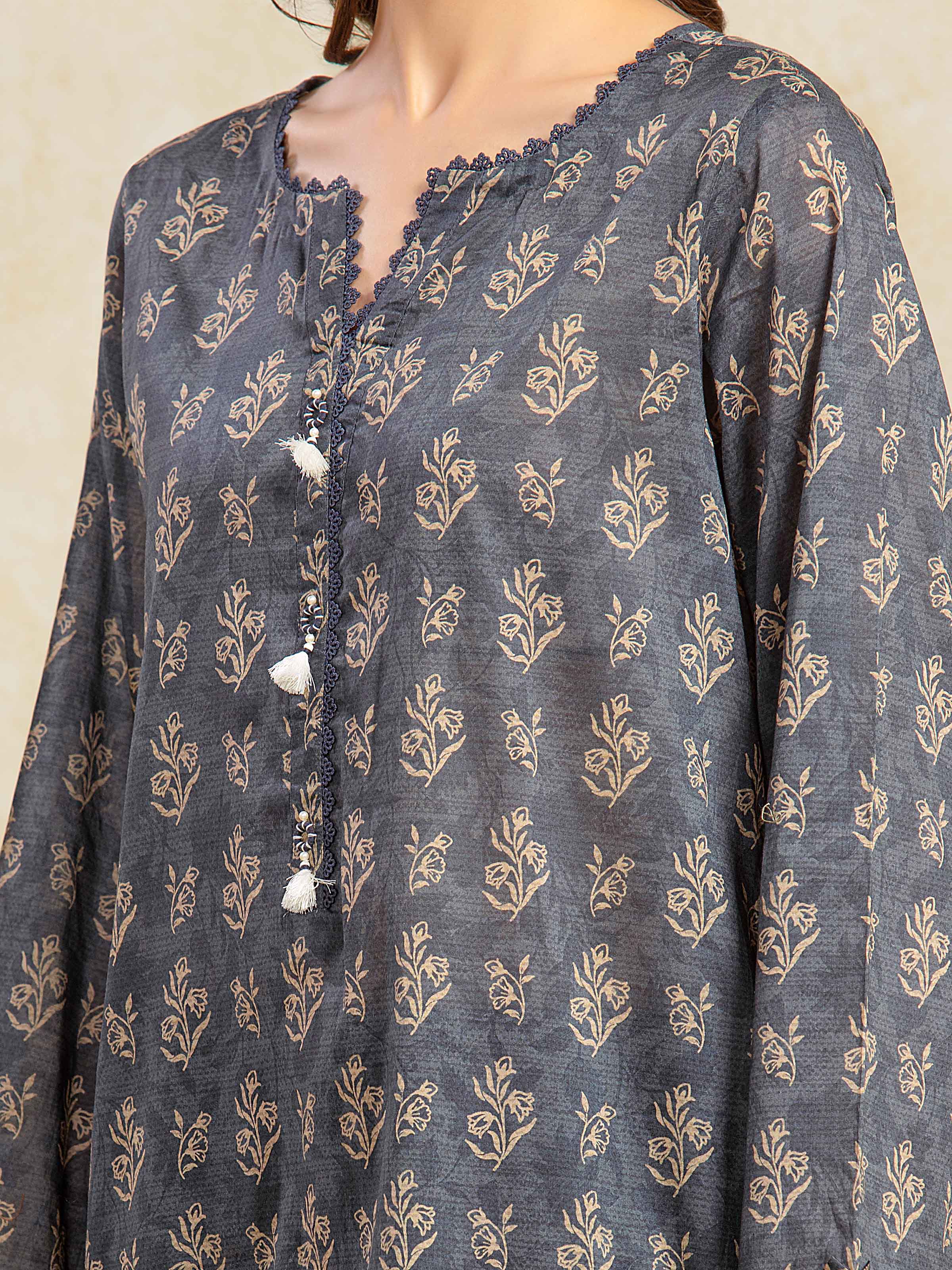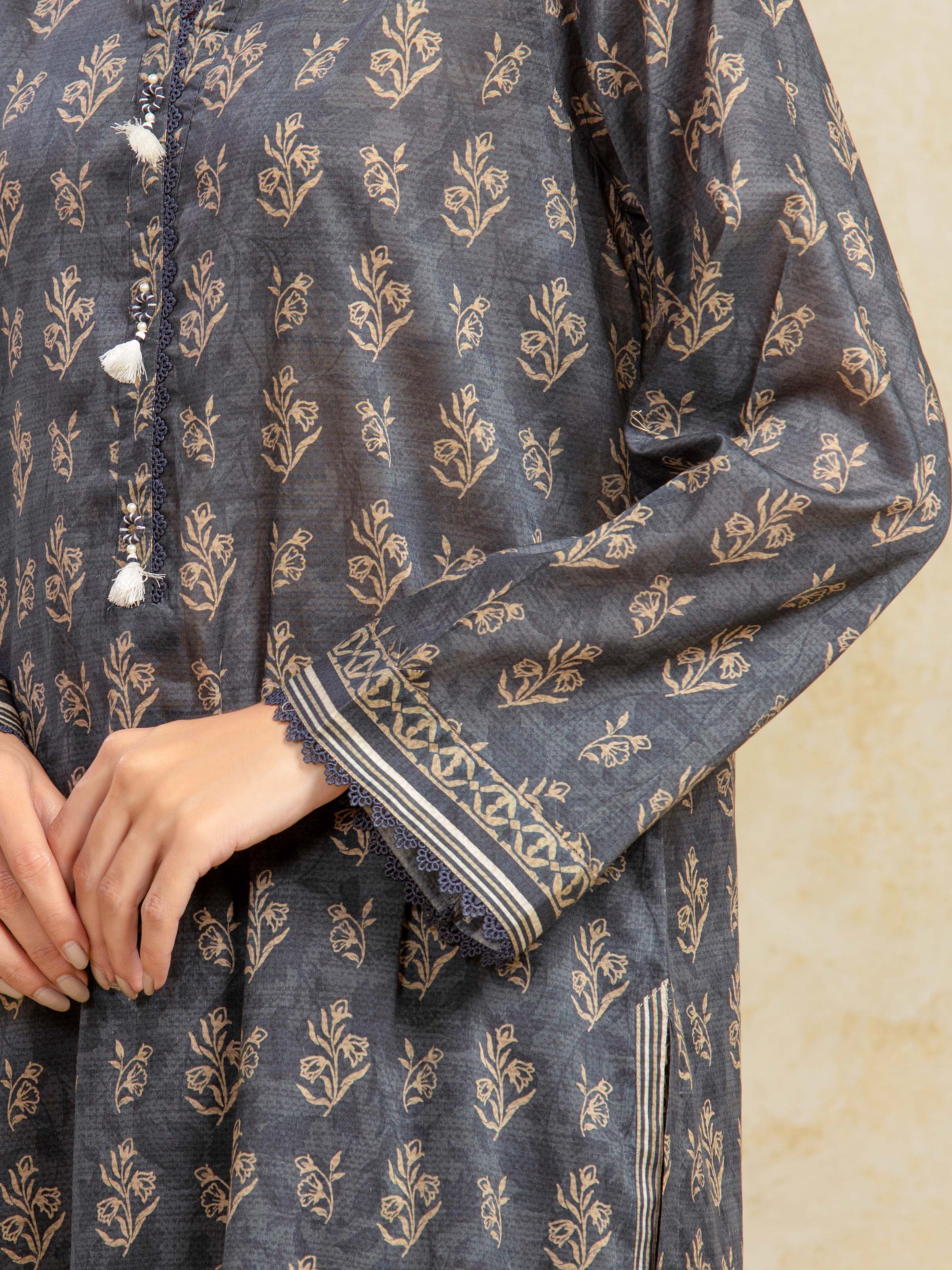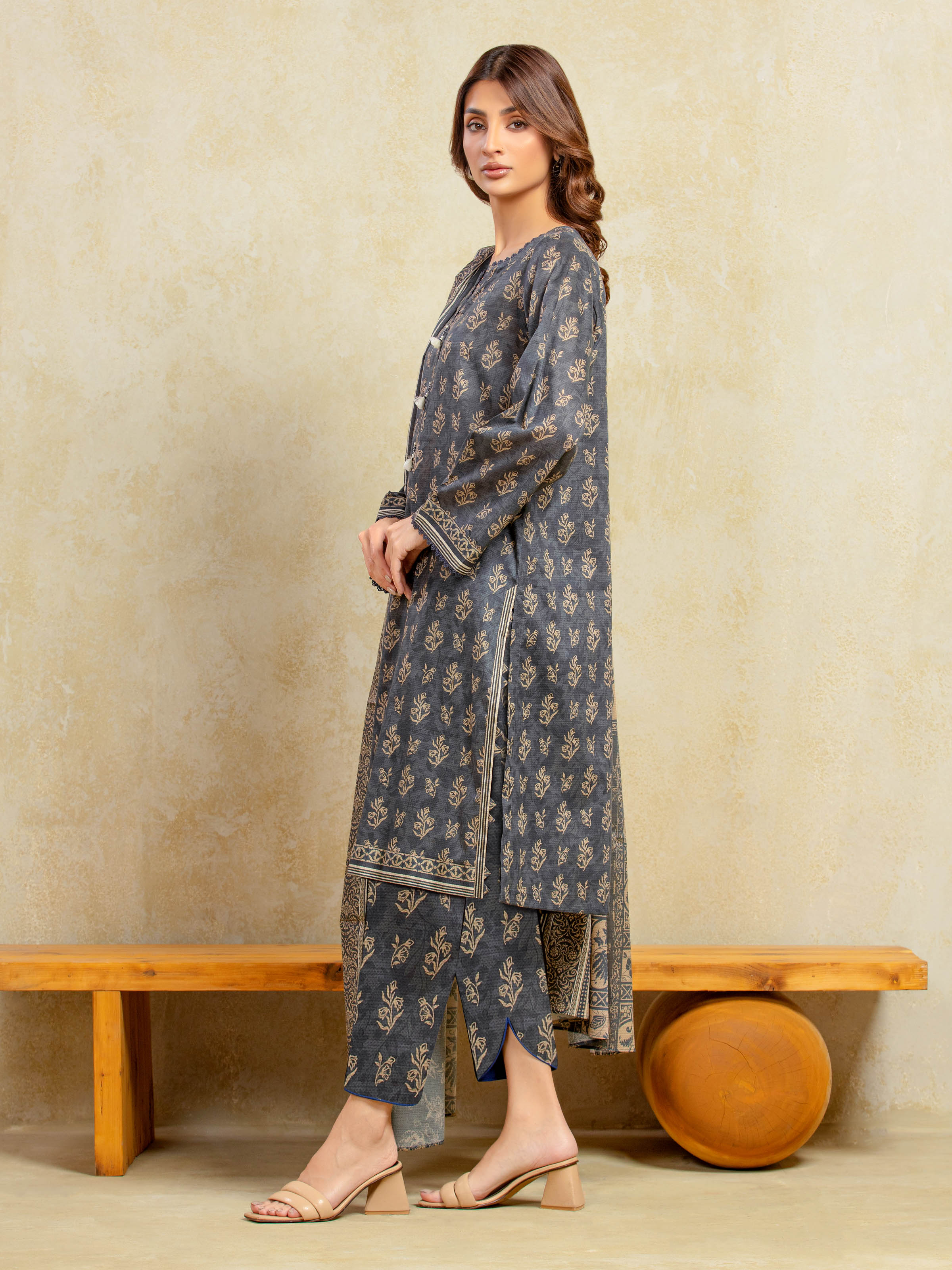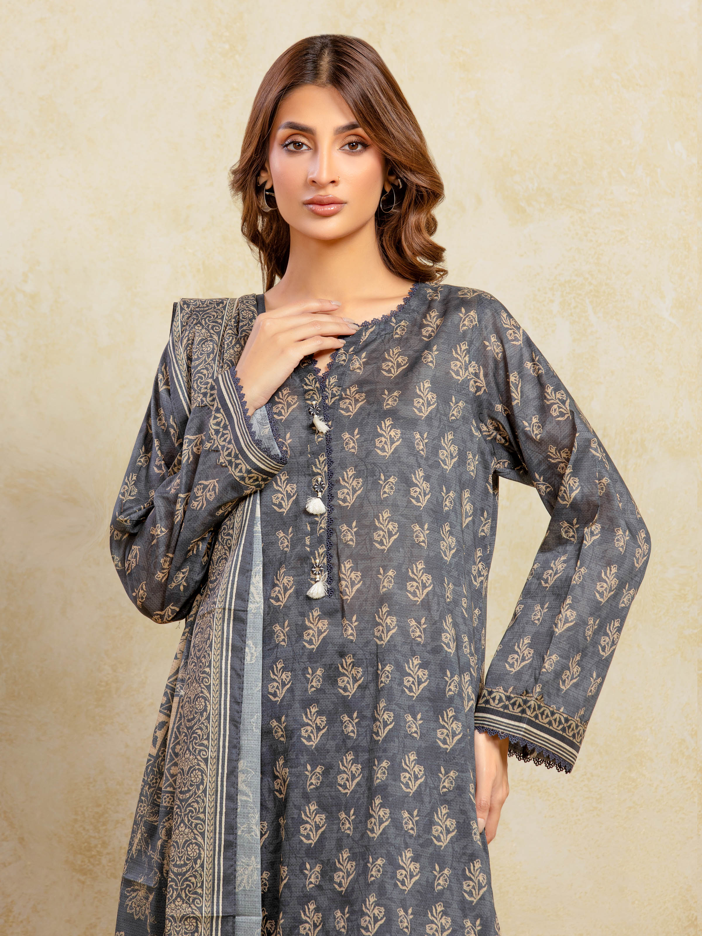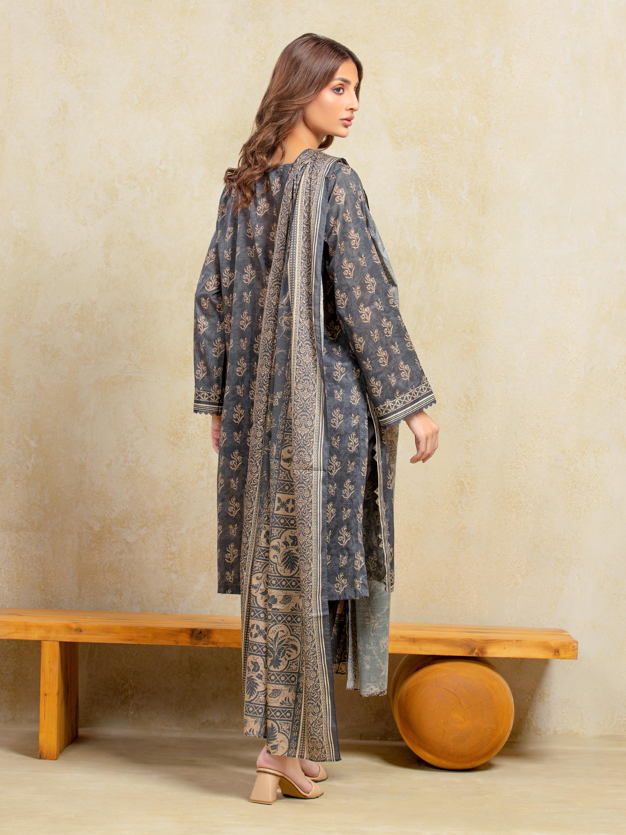 Unstitched Dark Grey Printed Khaddar 3 Piece