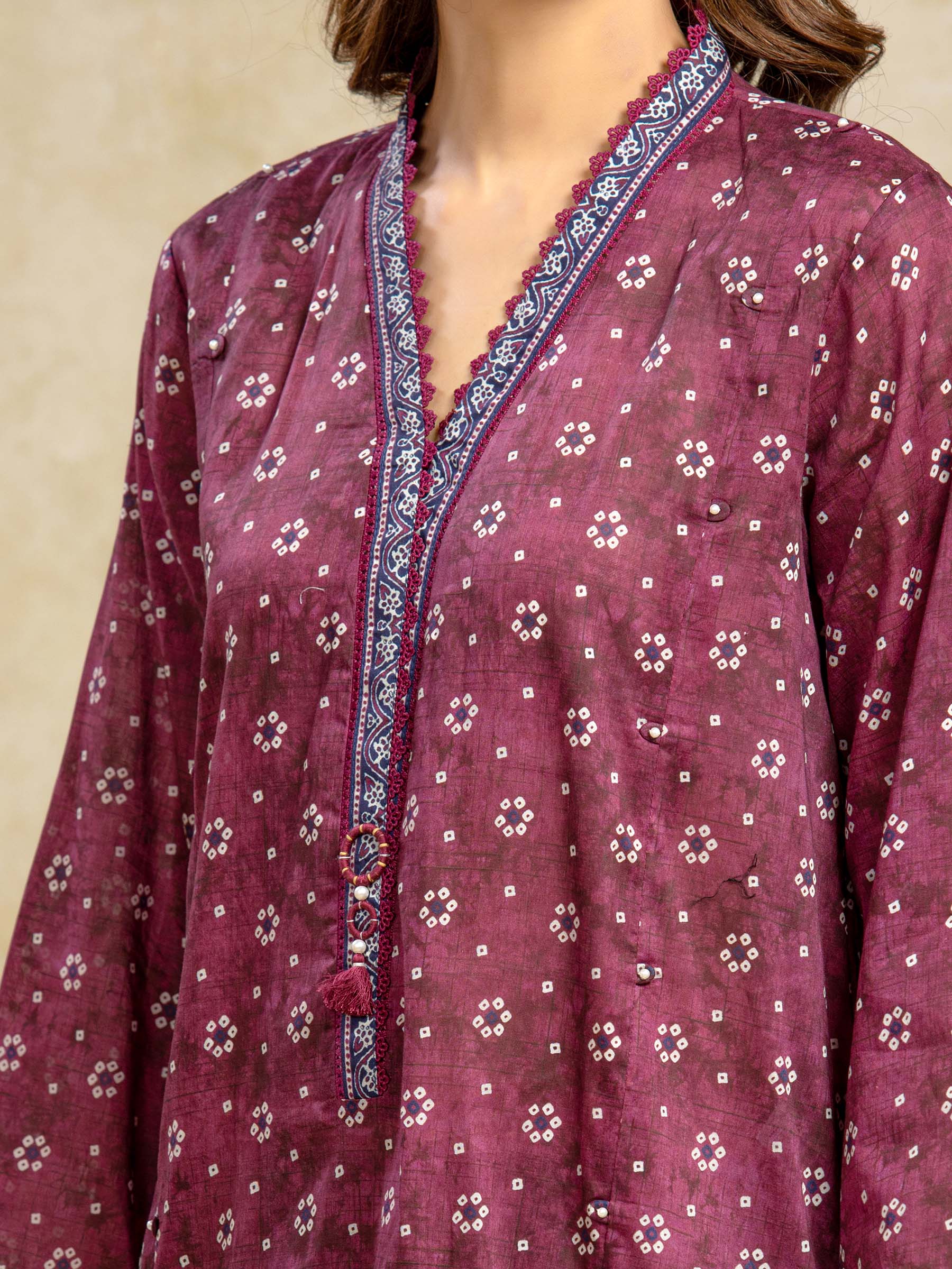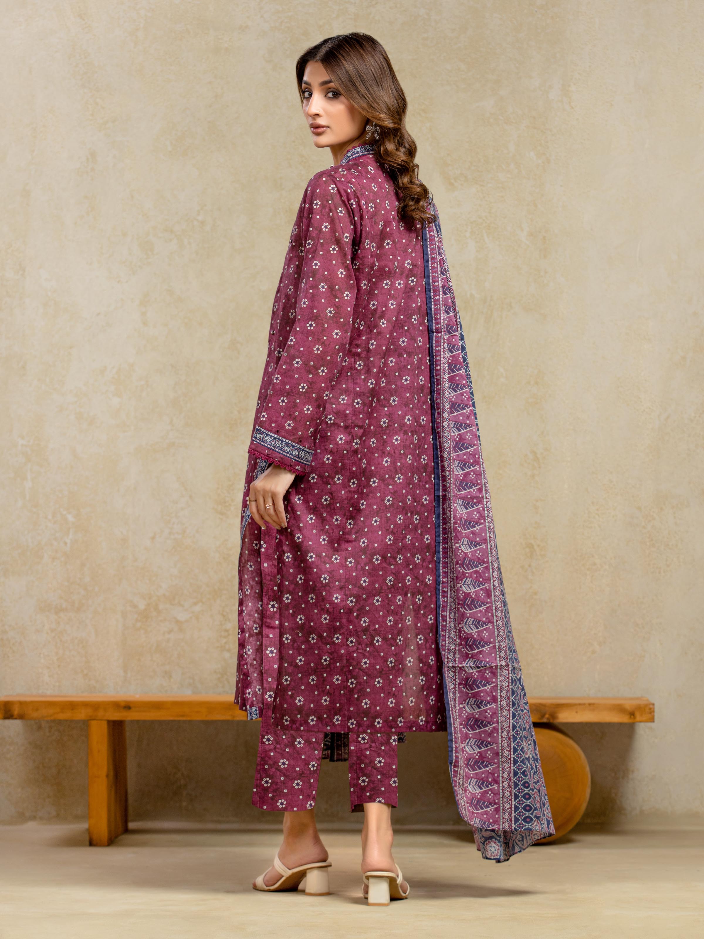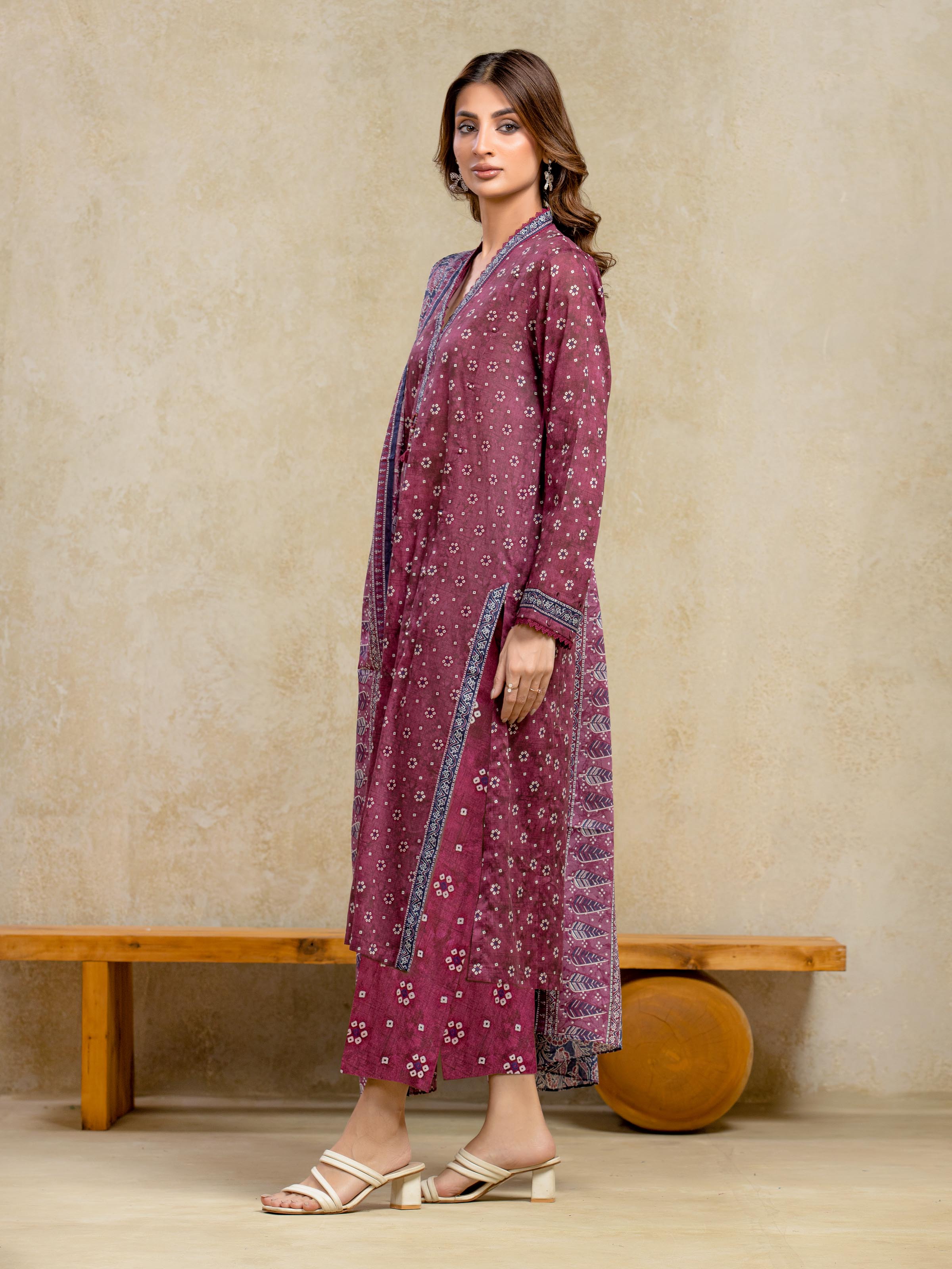 Unstitched Dark Magenta Printed Khaddar 3 Piece