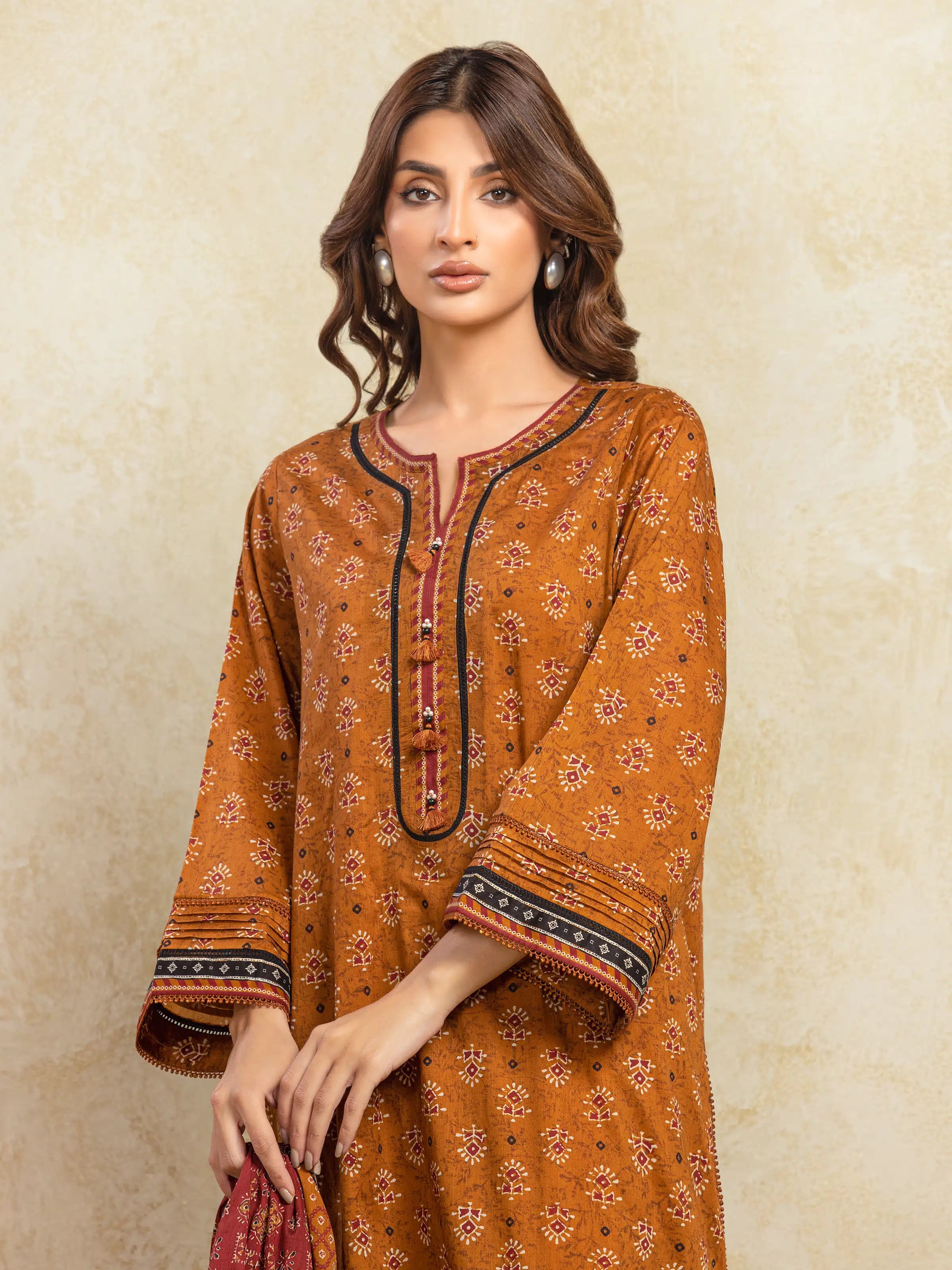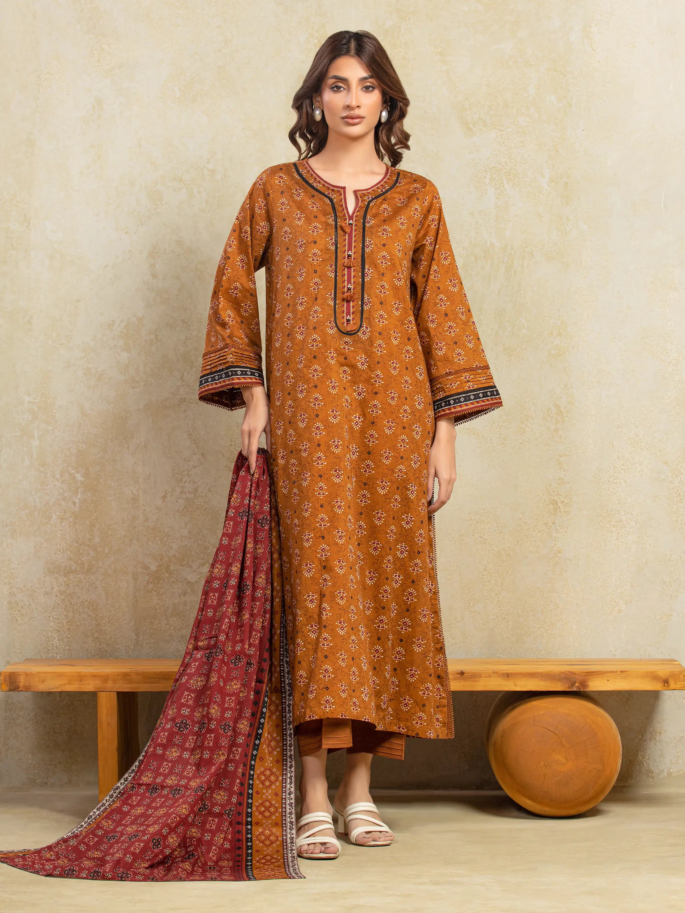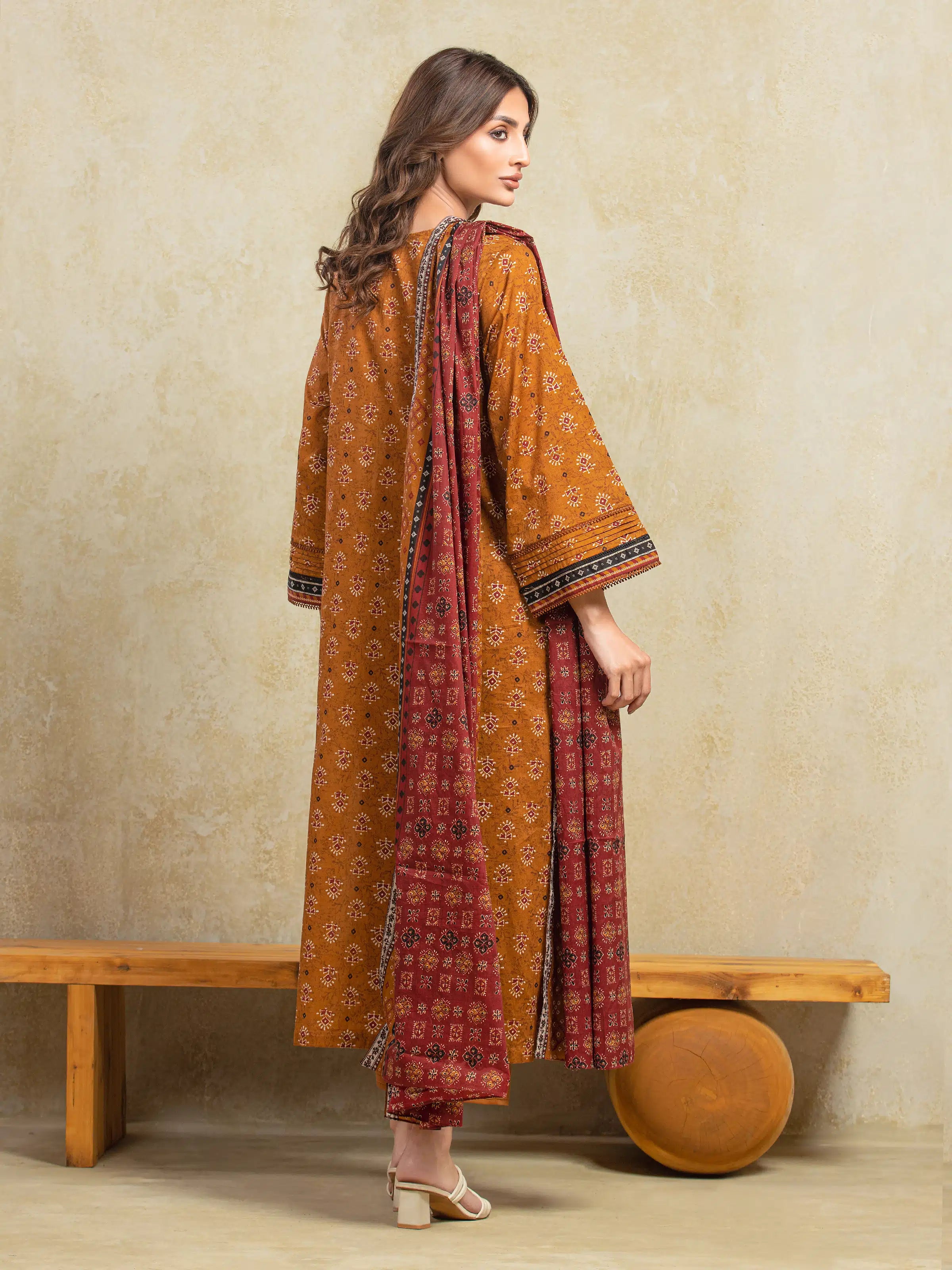 Unstitched Dark Mustard Printed Khaddar 3 Piece