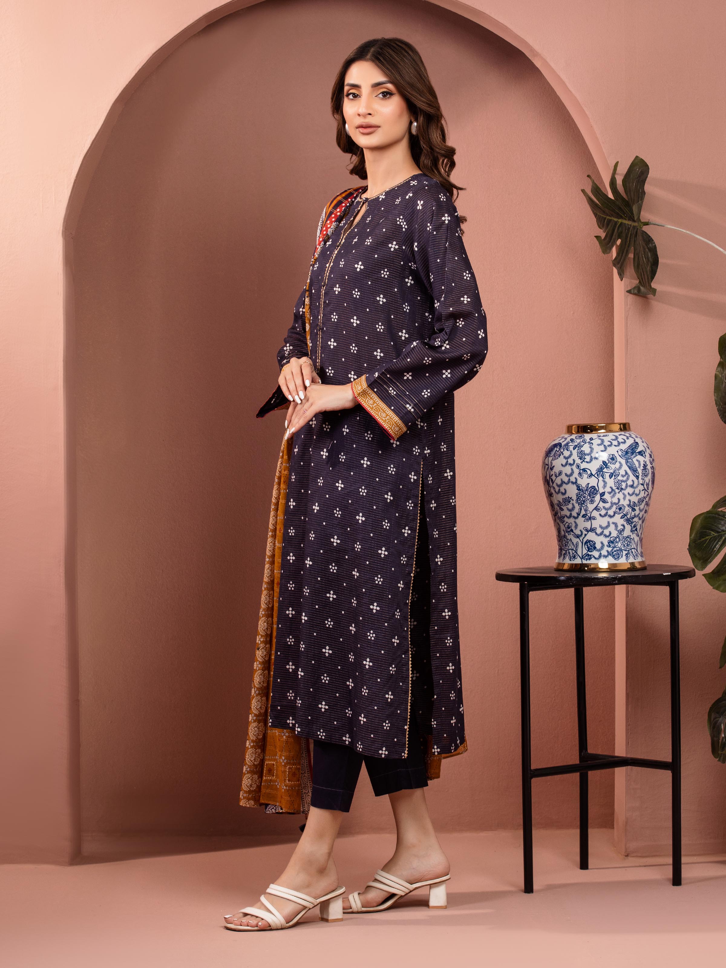 Unstitched Deep Purple Printed 3 Piece Lawn