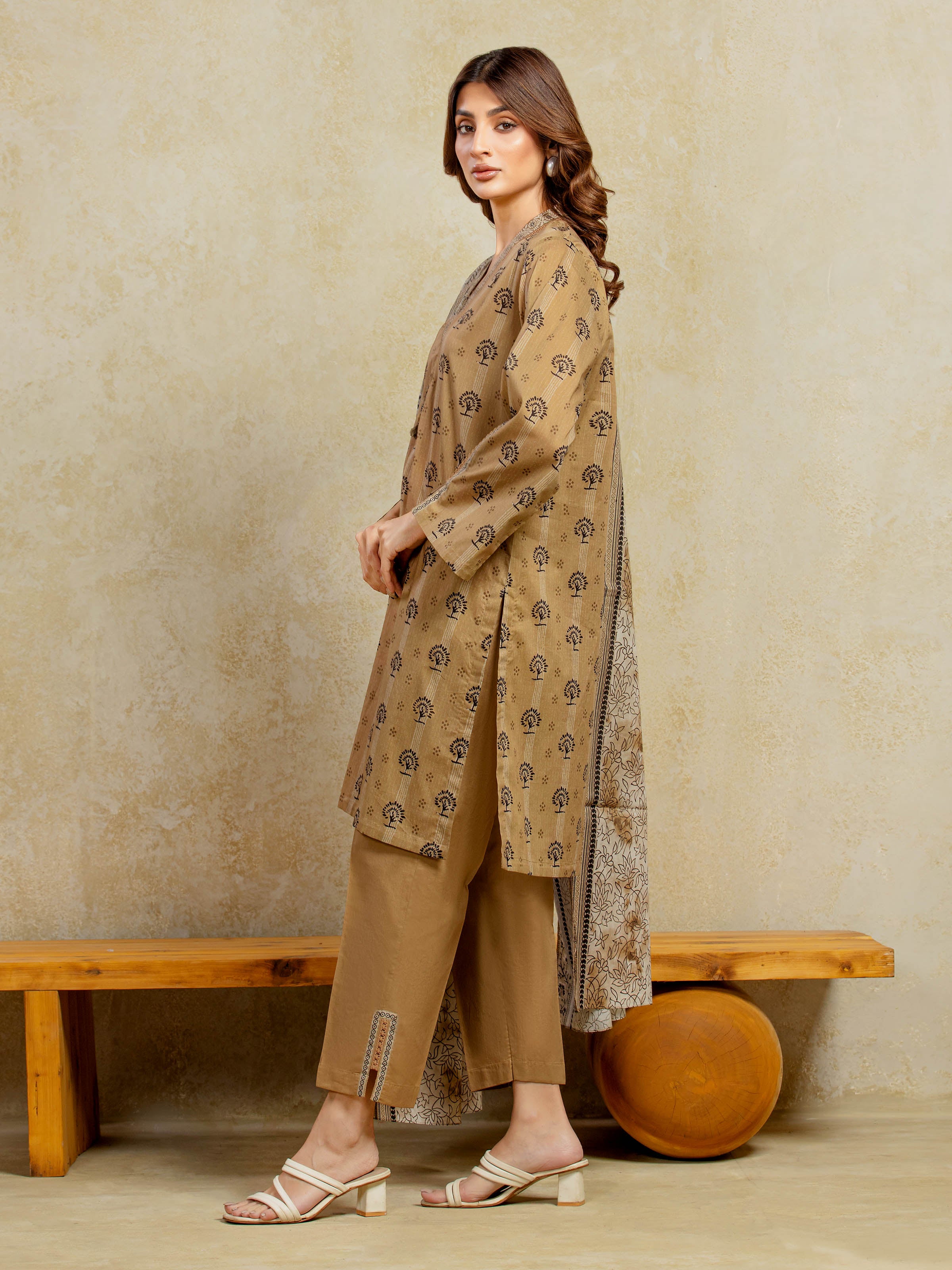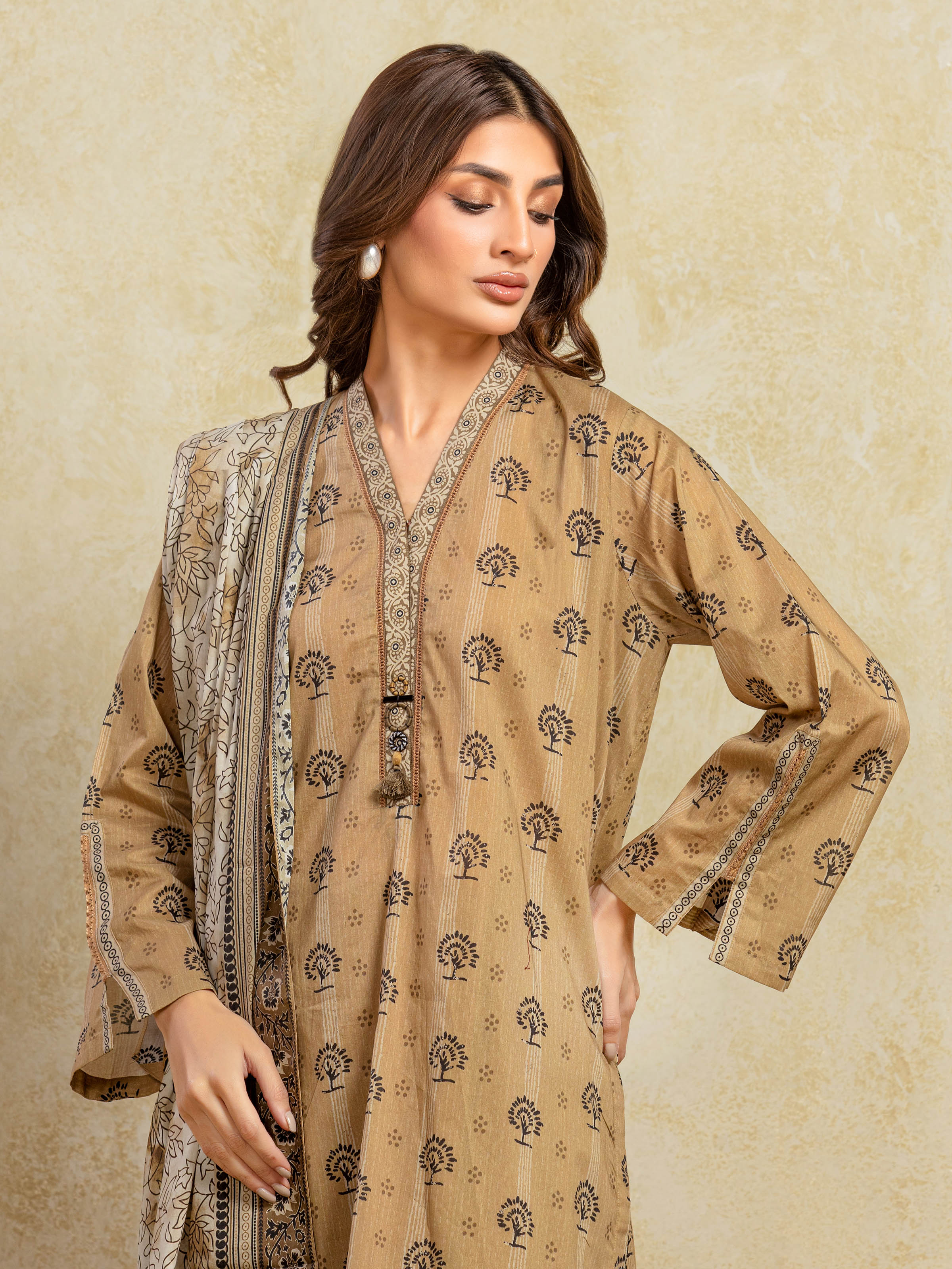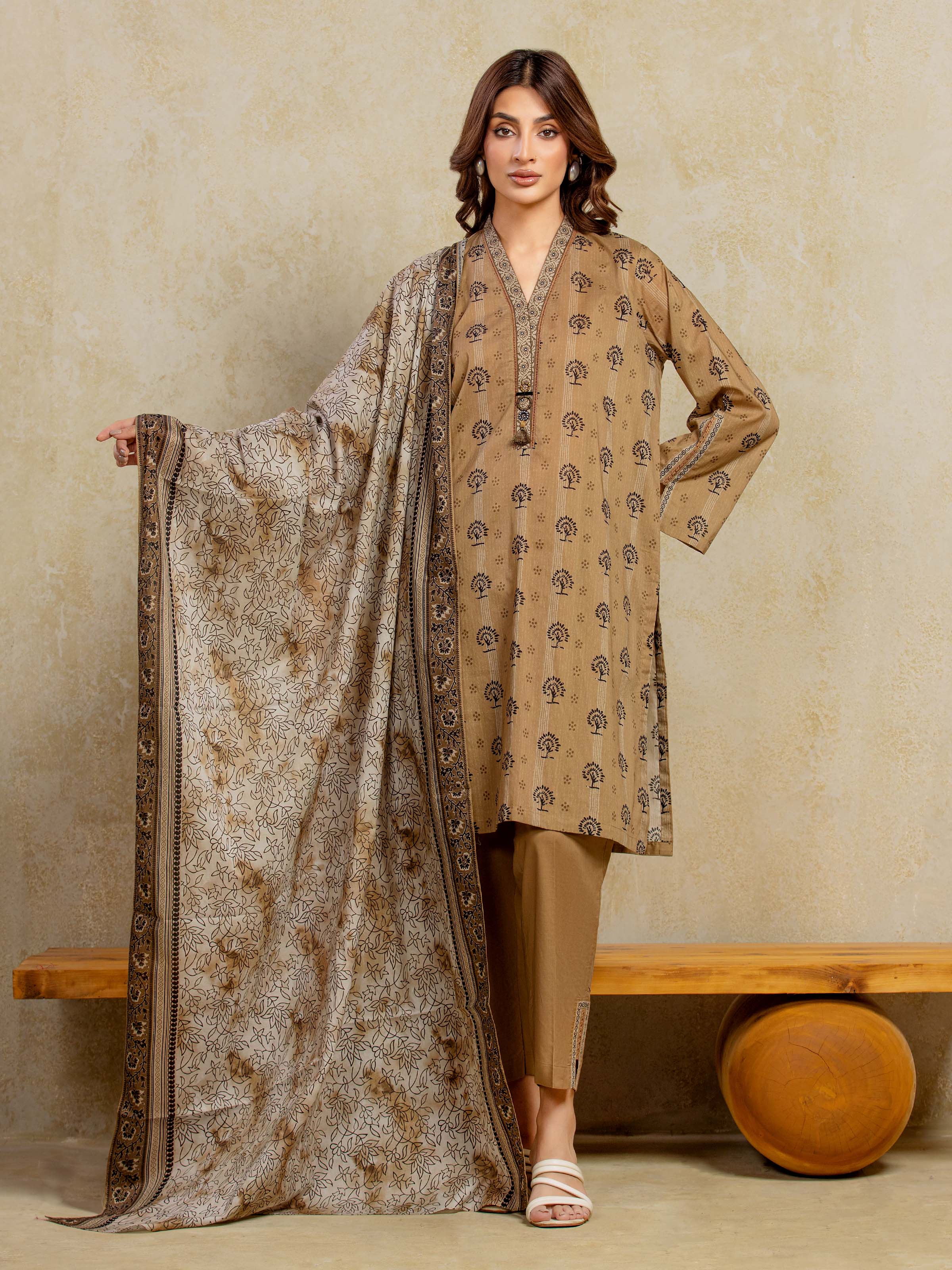 Unstitched Fawn Printed Khaddar 3 Piece