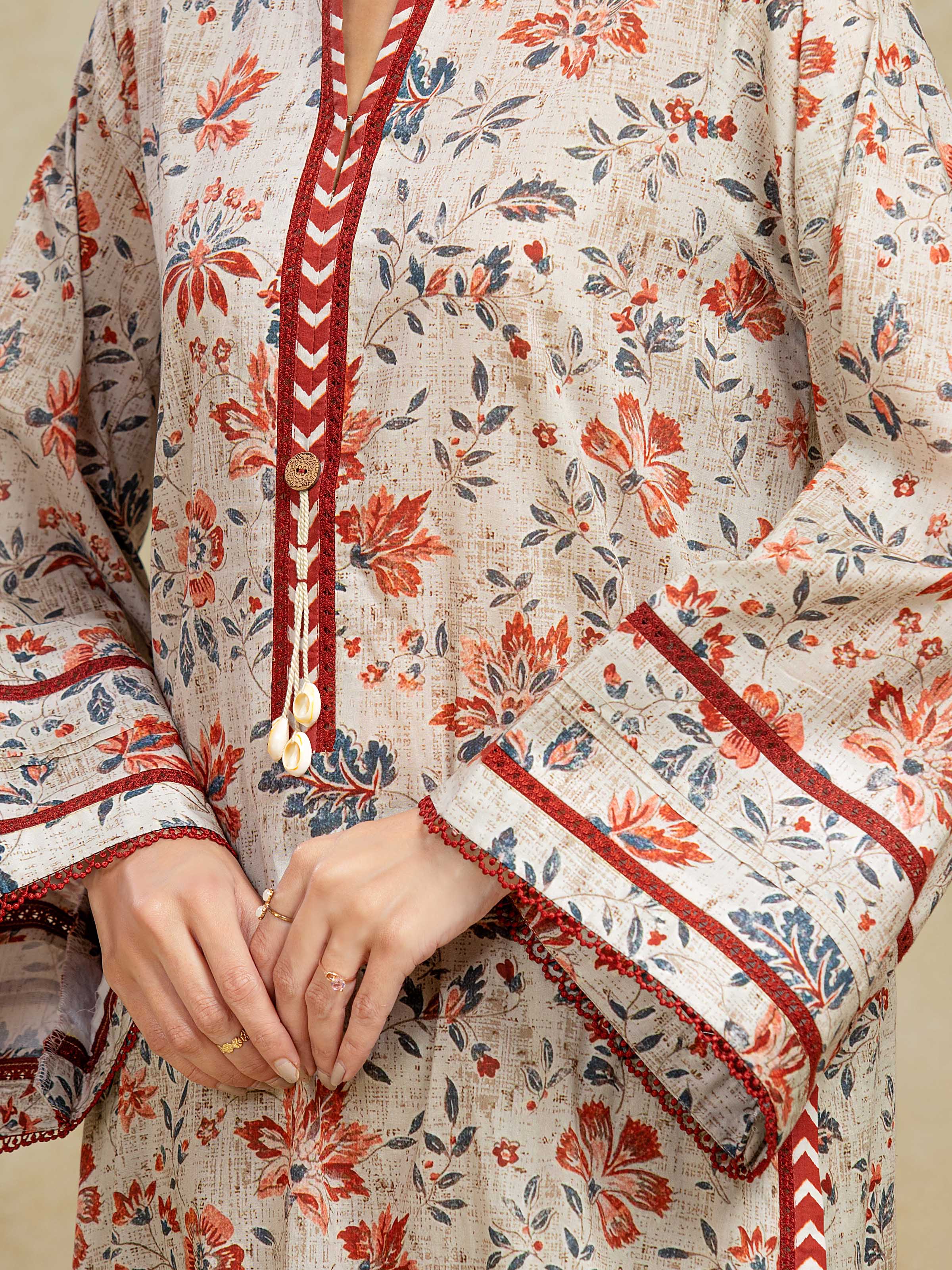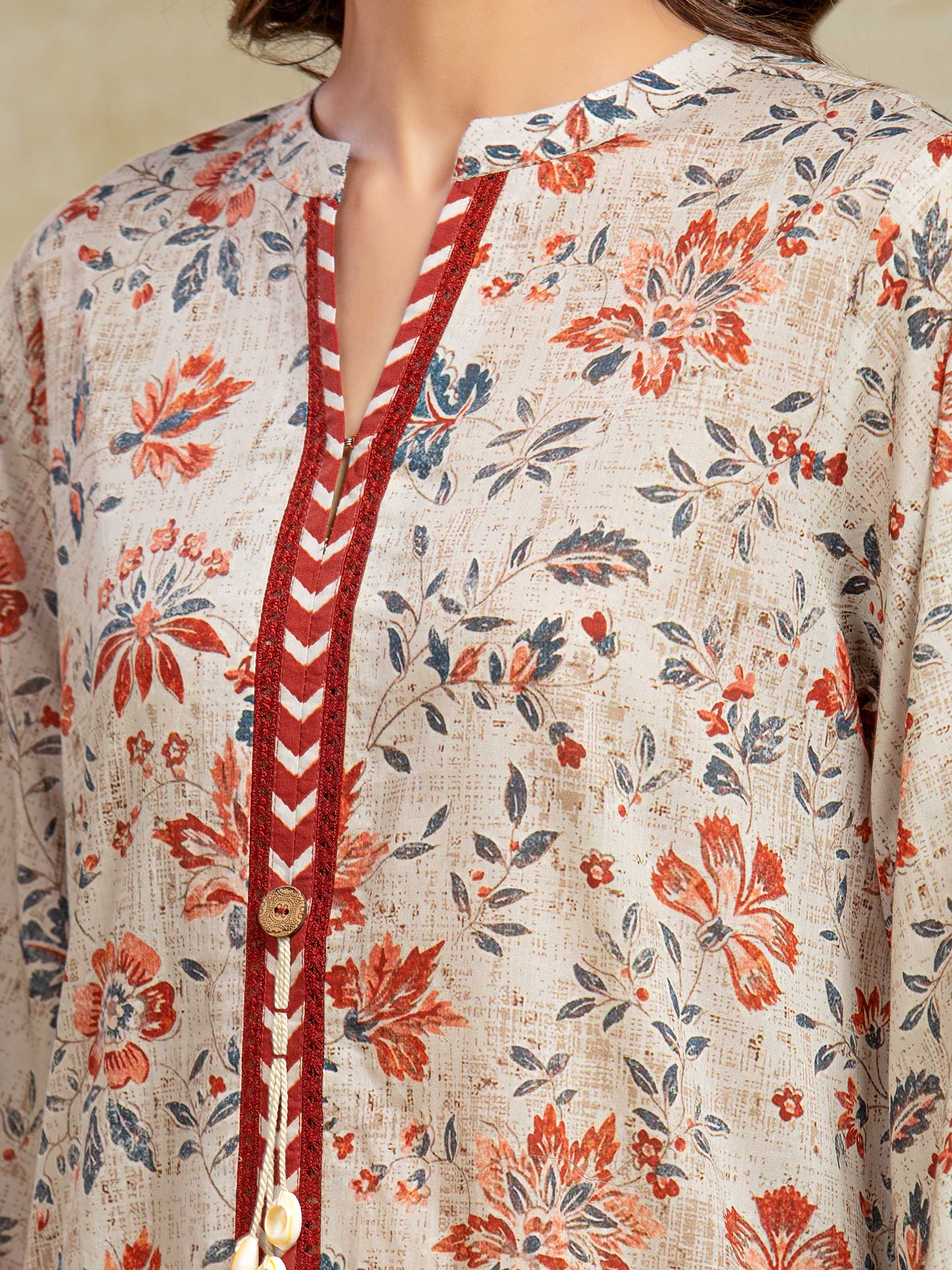 Unstitched Light Beige Printed Khaddar 3 Piece