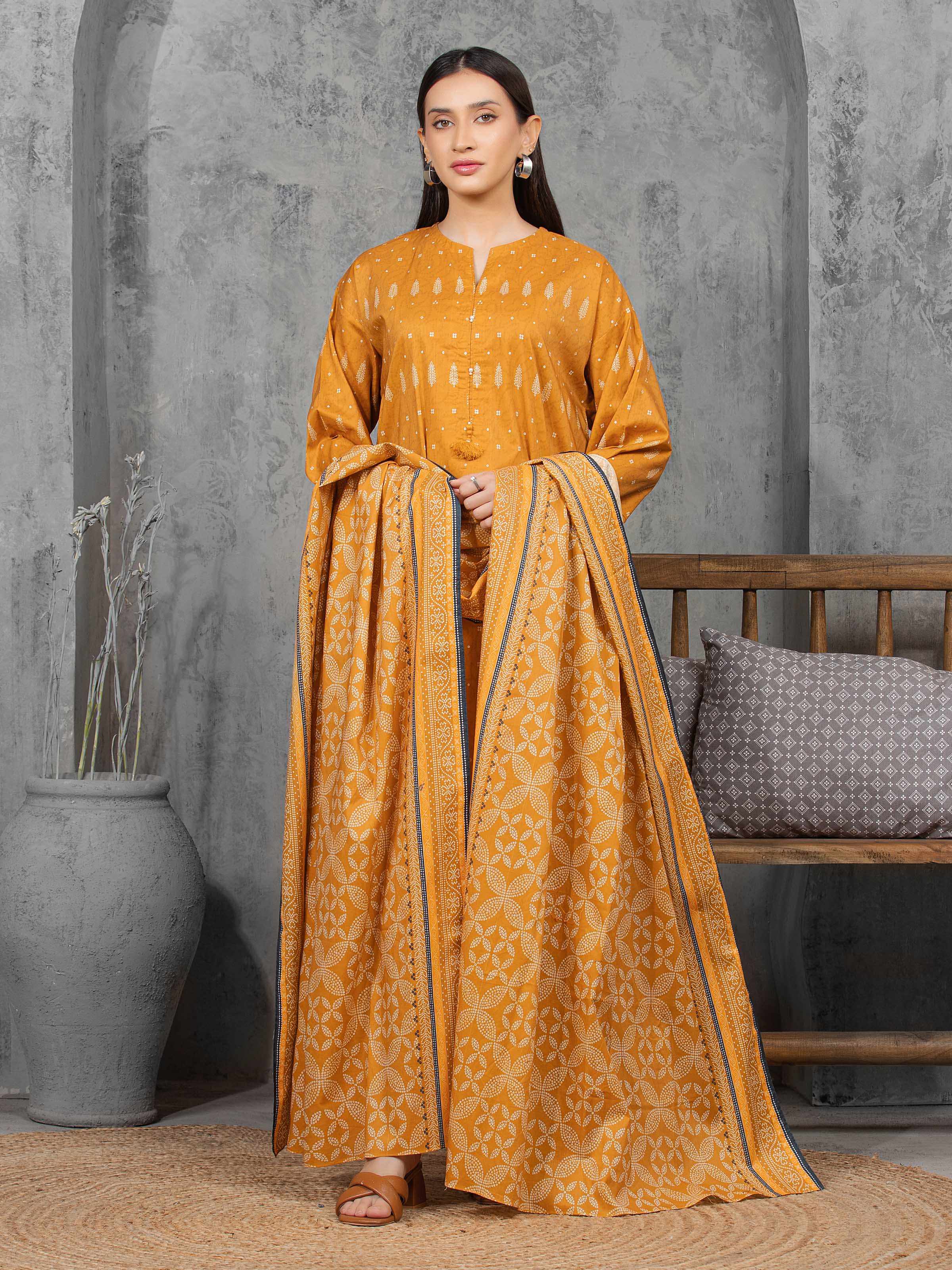 Unstitched Mustard Printed Cambric 3 Piece