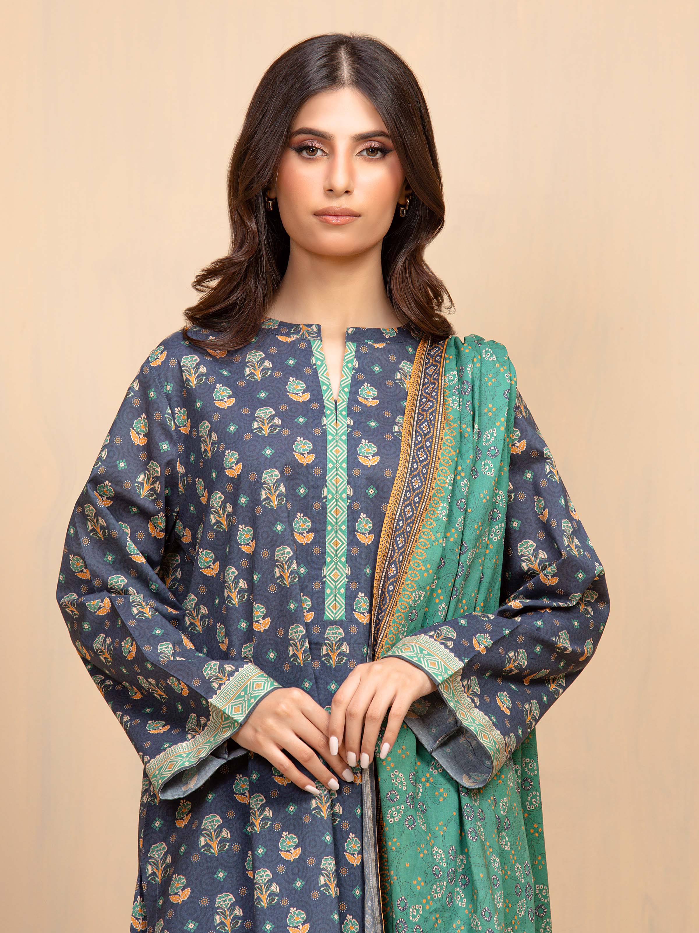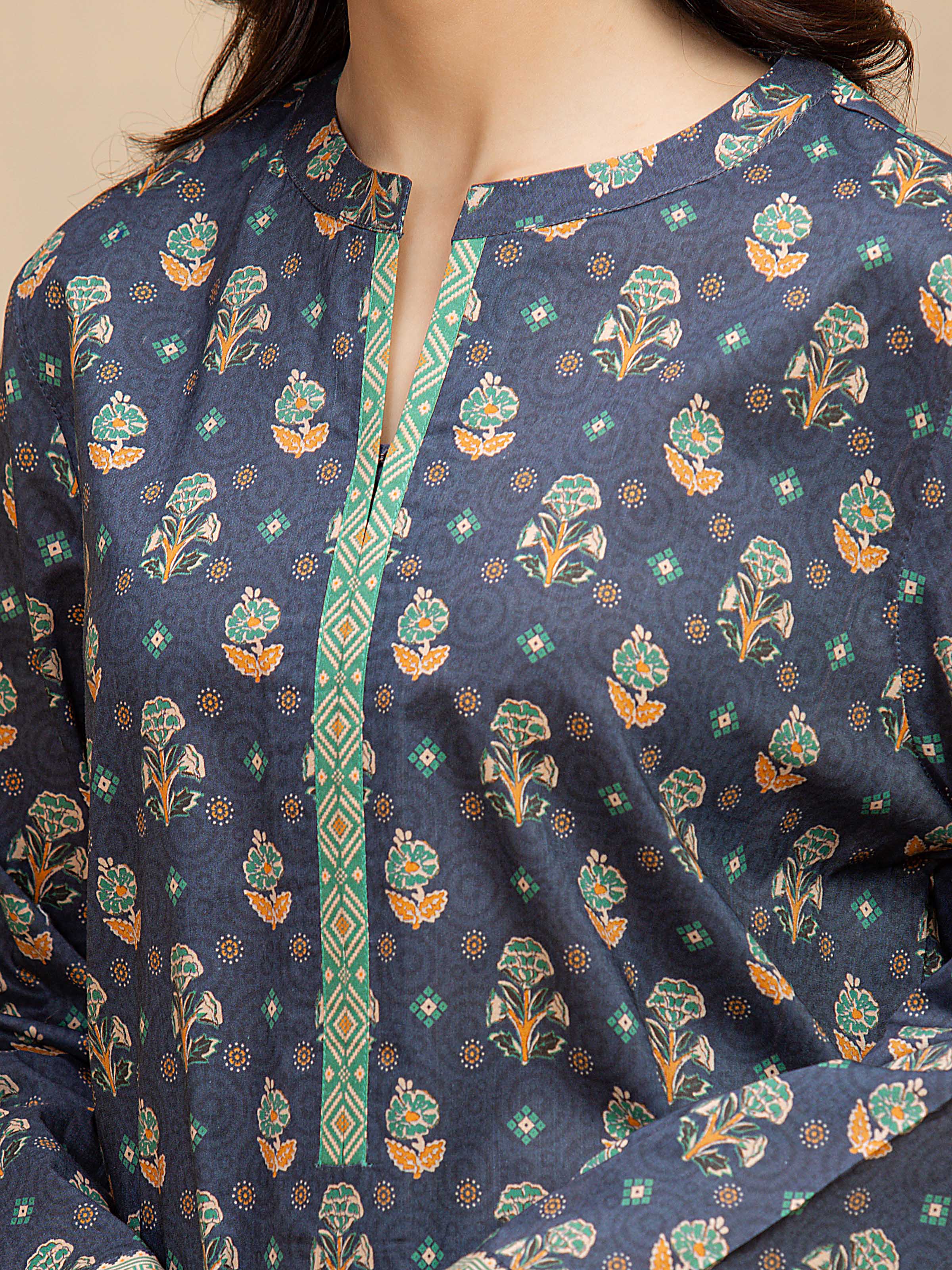 Unstitched Navy Blue Printed Khaddar 3 Piece