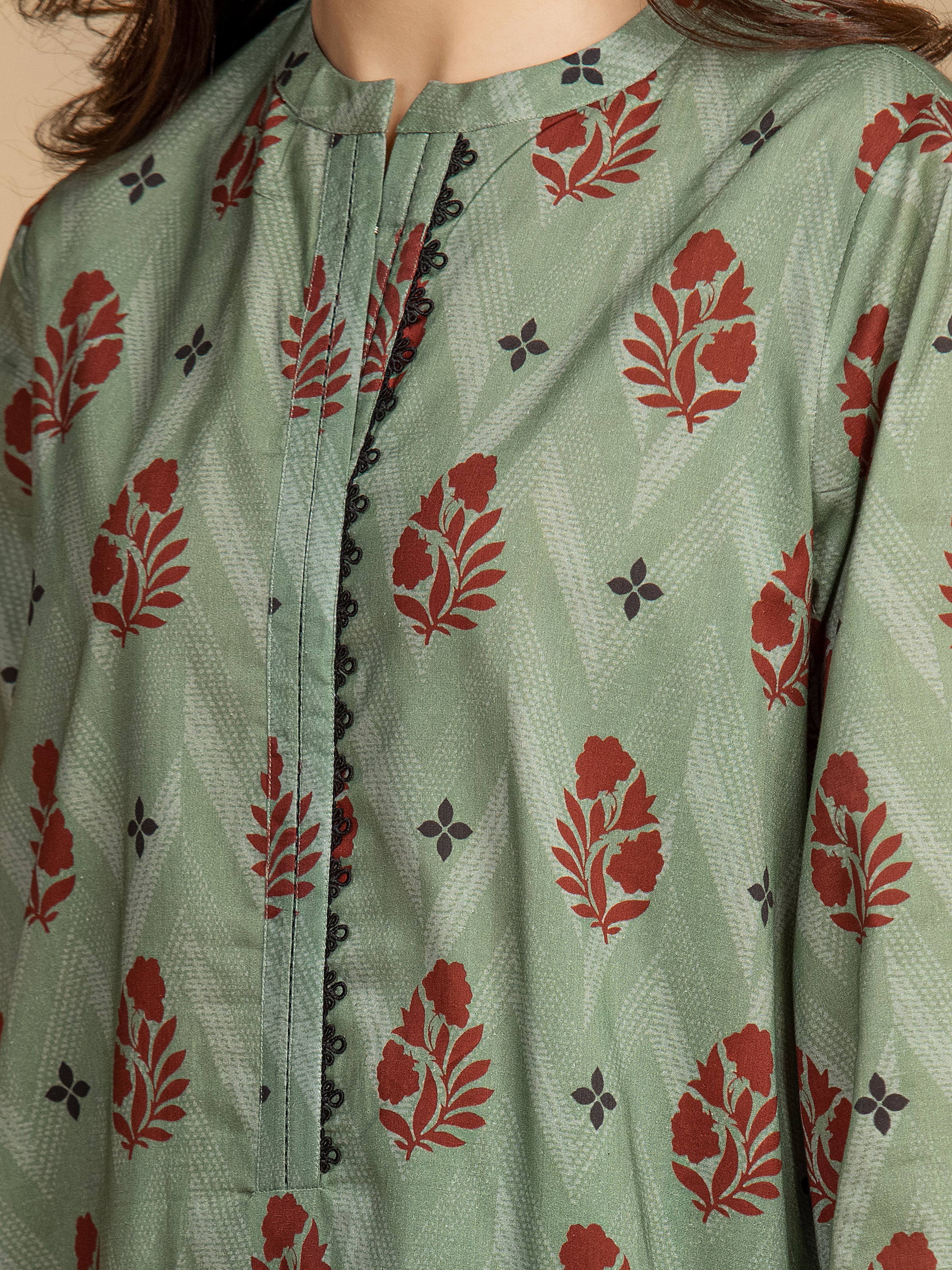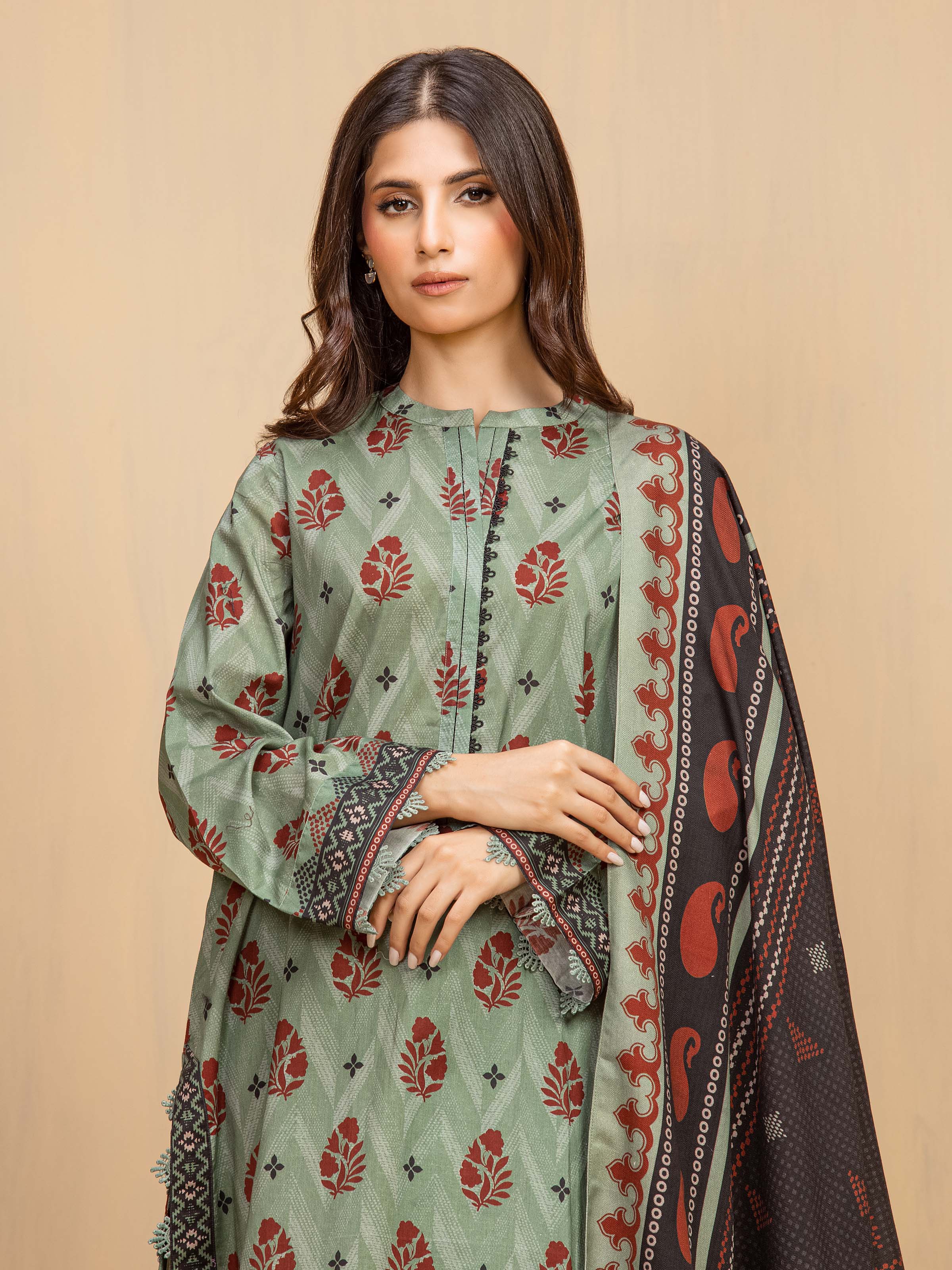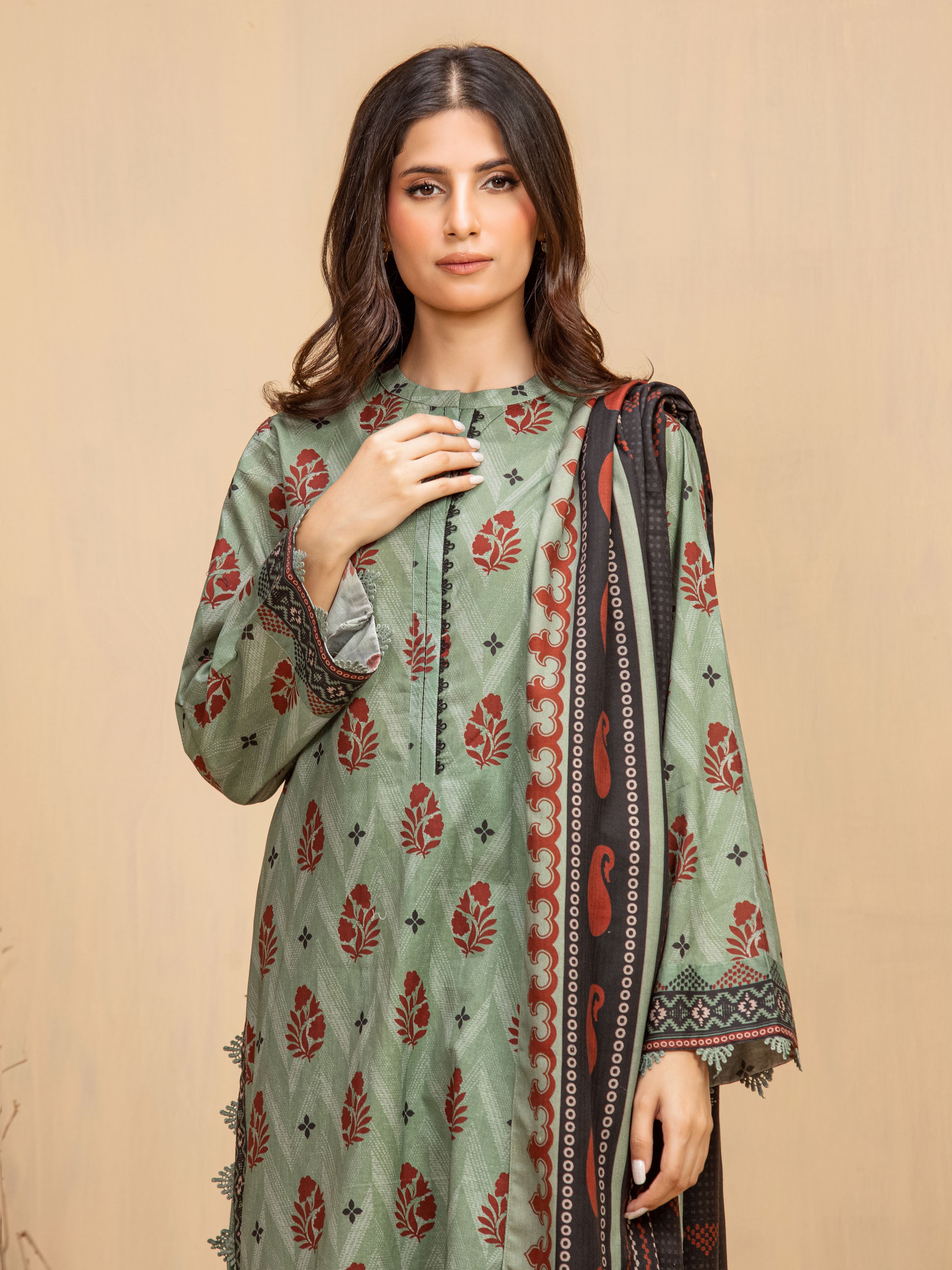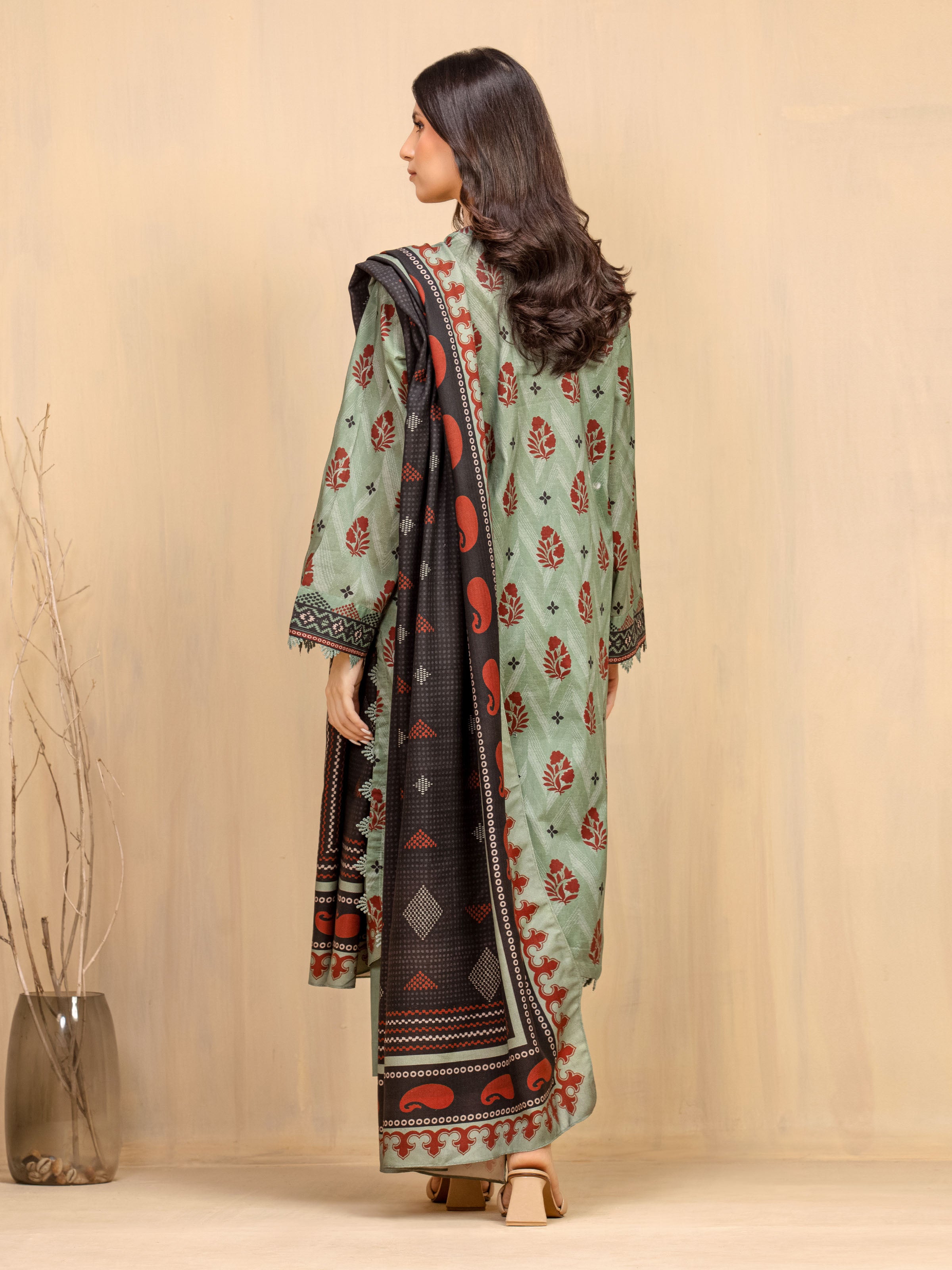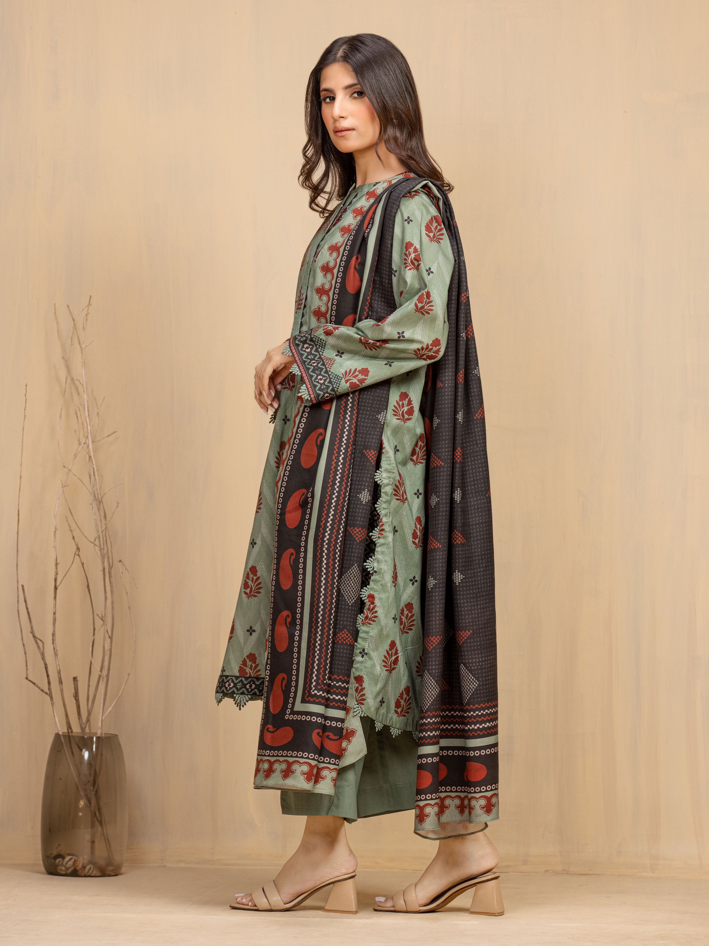 Unstitched Sage Green Printed Khaddar 3 Piece