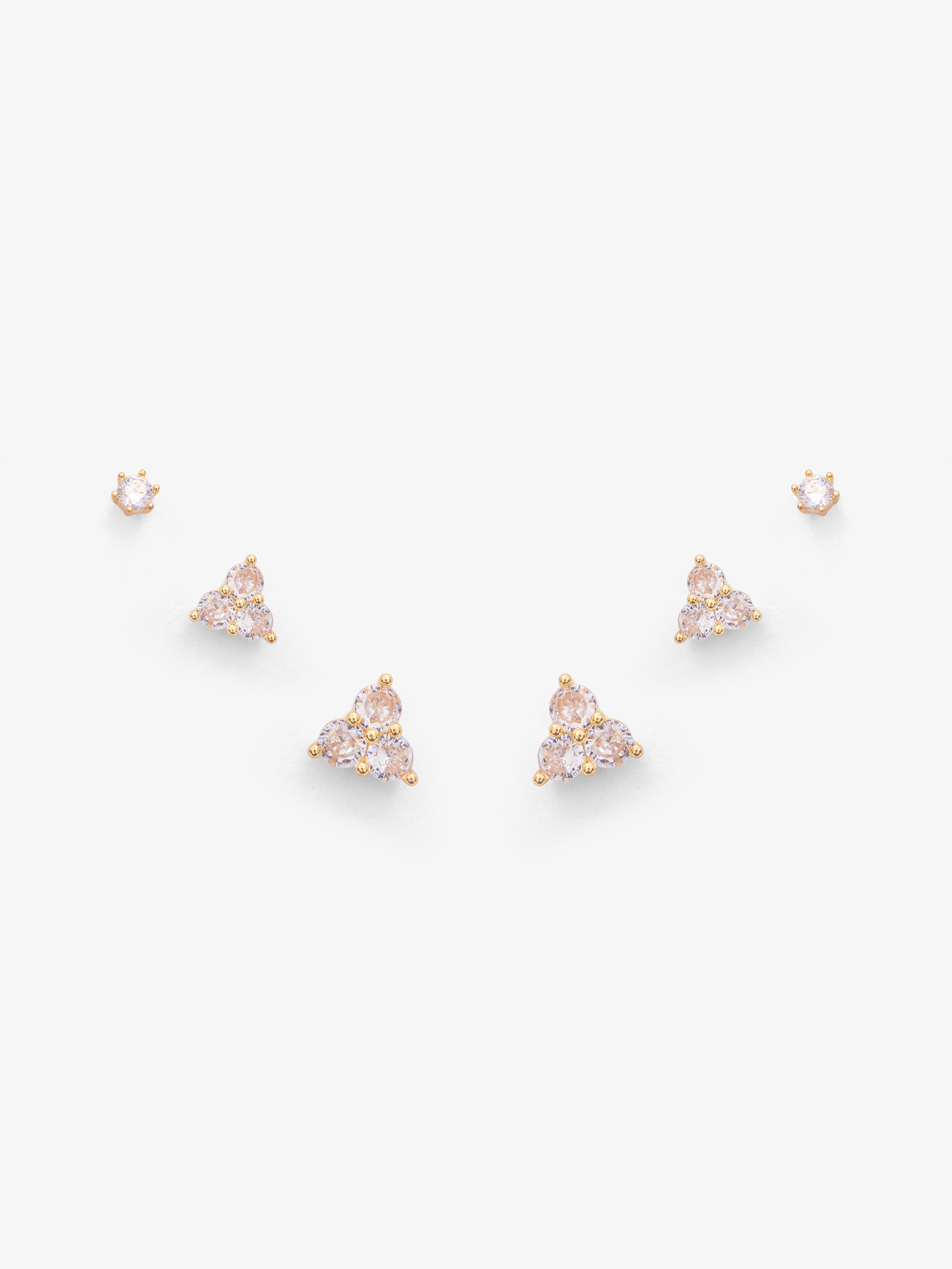 Delicate floral-top studs paired with dangling chains with a graceful mix that highlights your style and adds movement near your face.